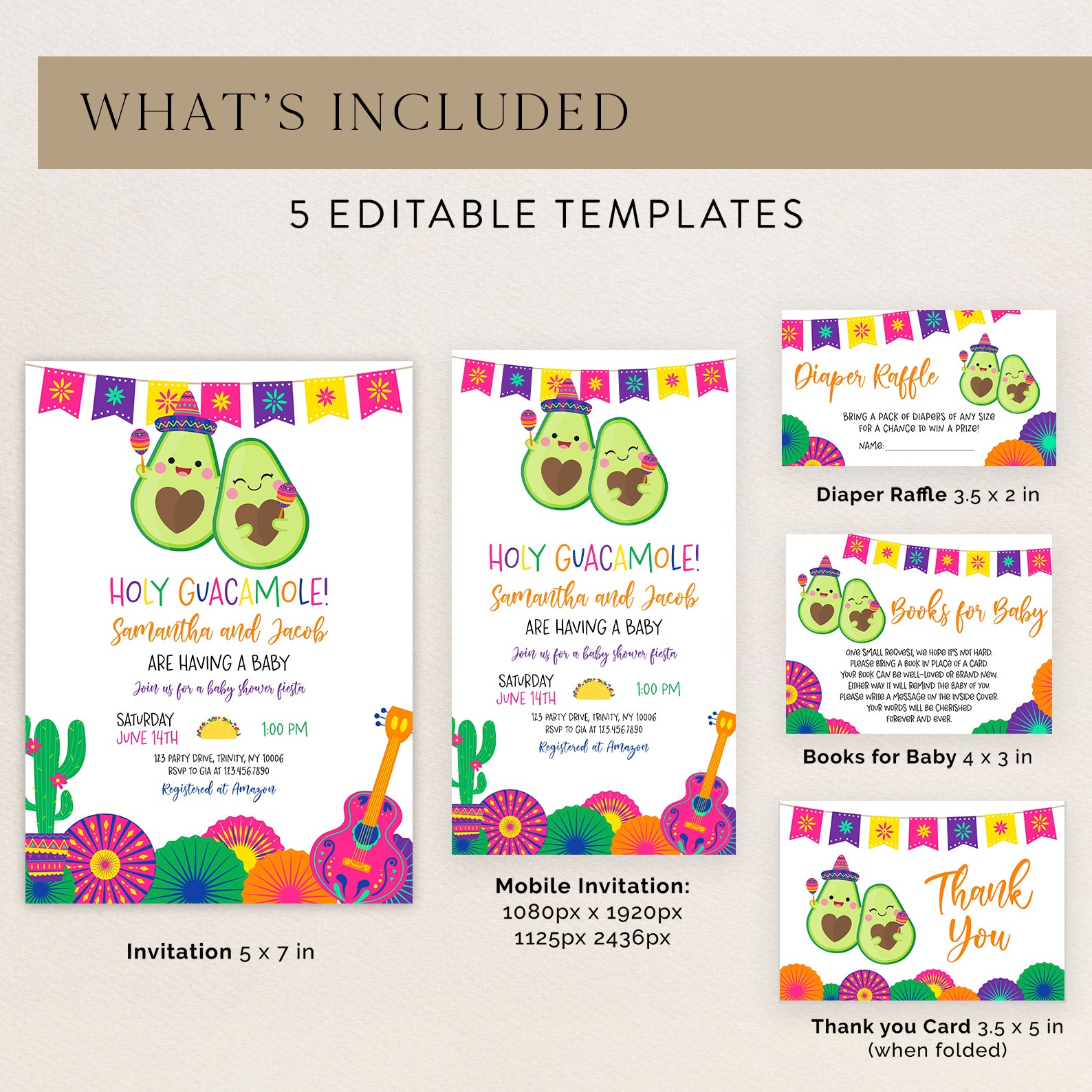 - Purchase this Holy Guacamole Summer Baby Shower Invite Bundle: Fiesta & Avocados template