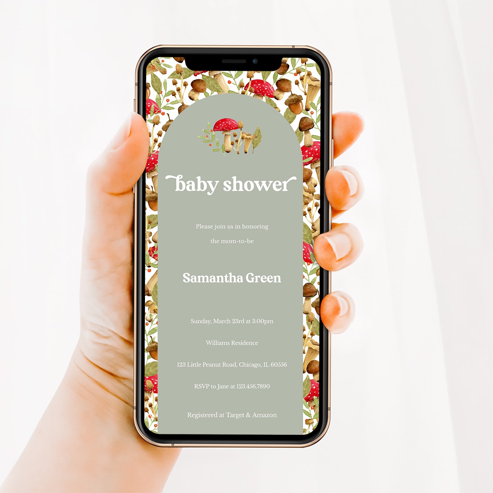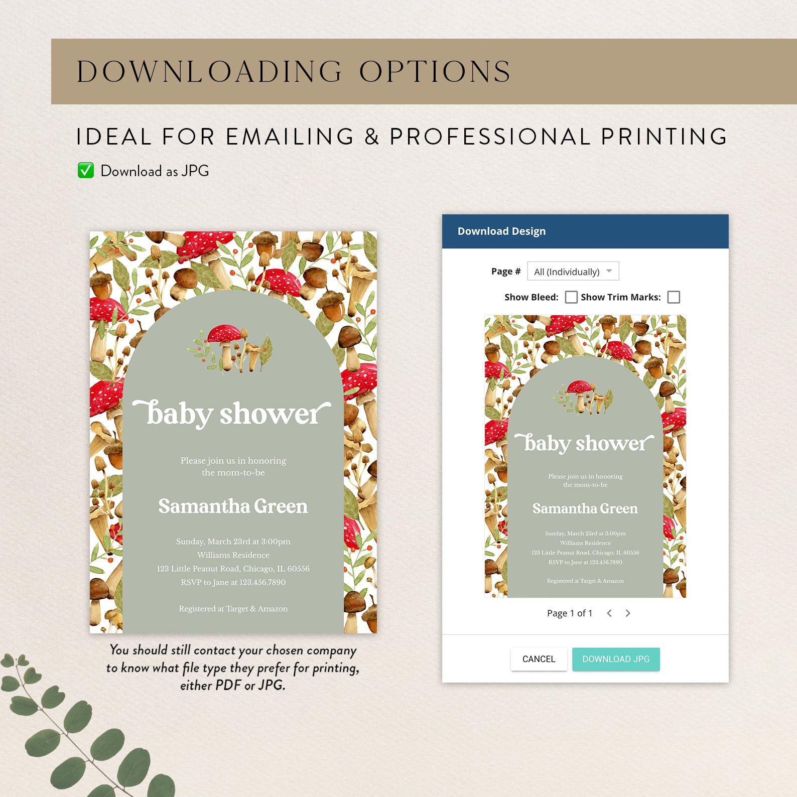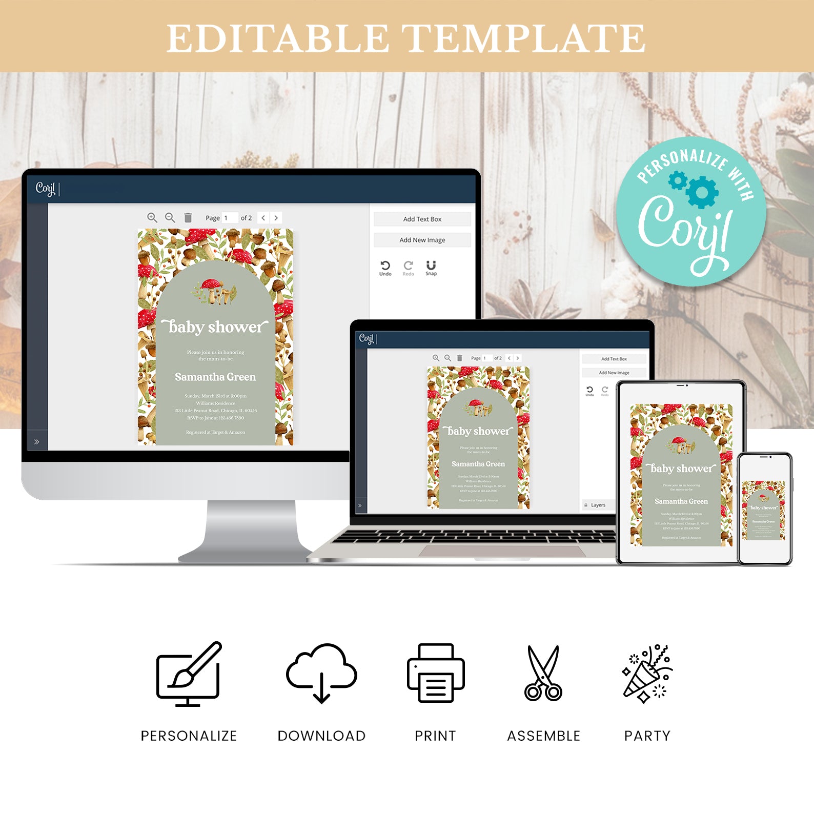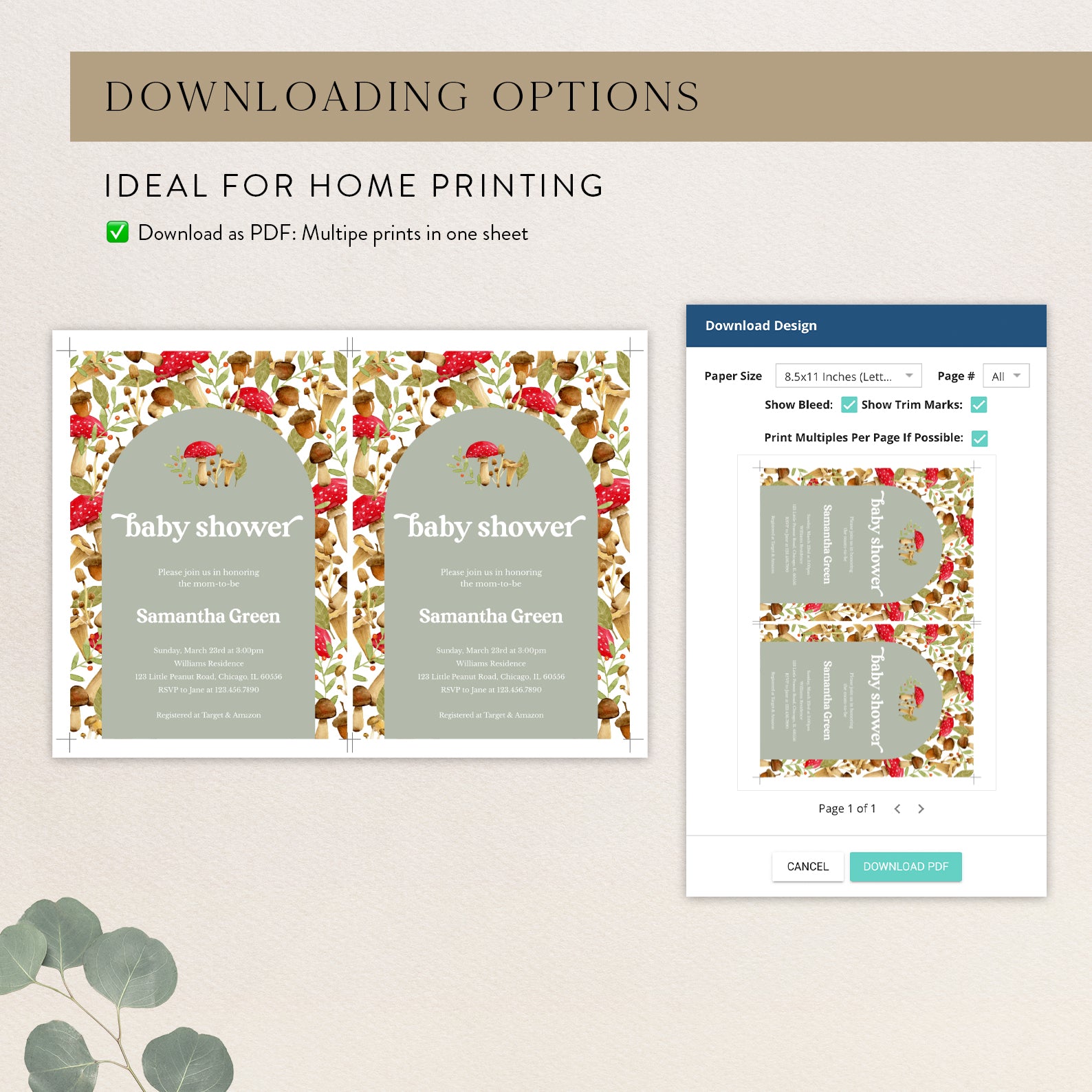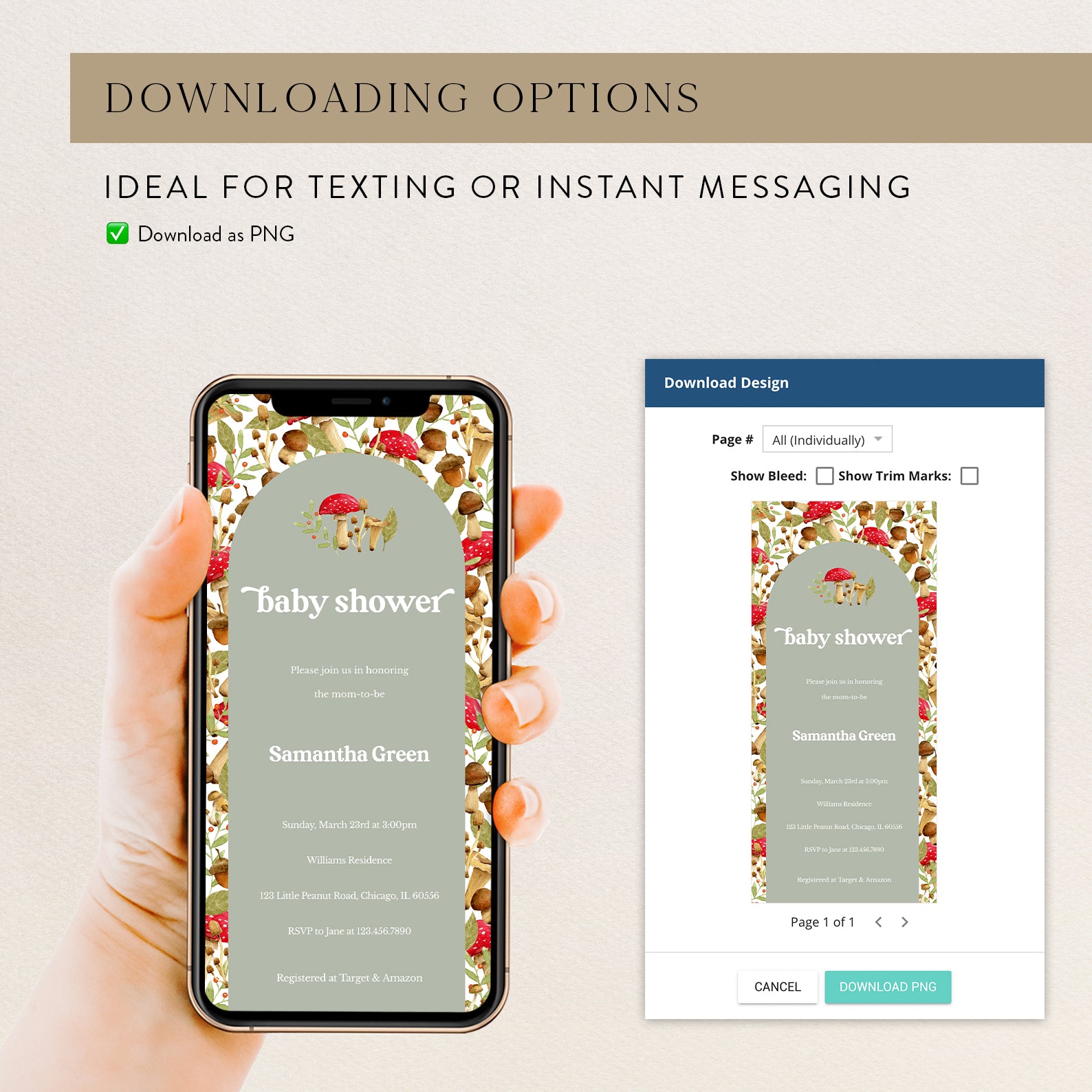 - Purchase this Mushrooms & Acorns Fall Baby Shower Digital Invite Bundle template
