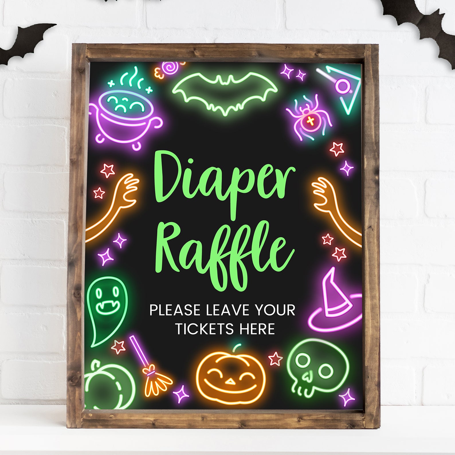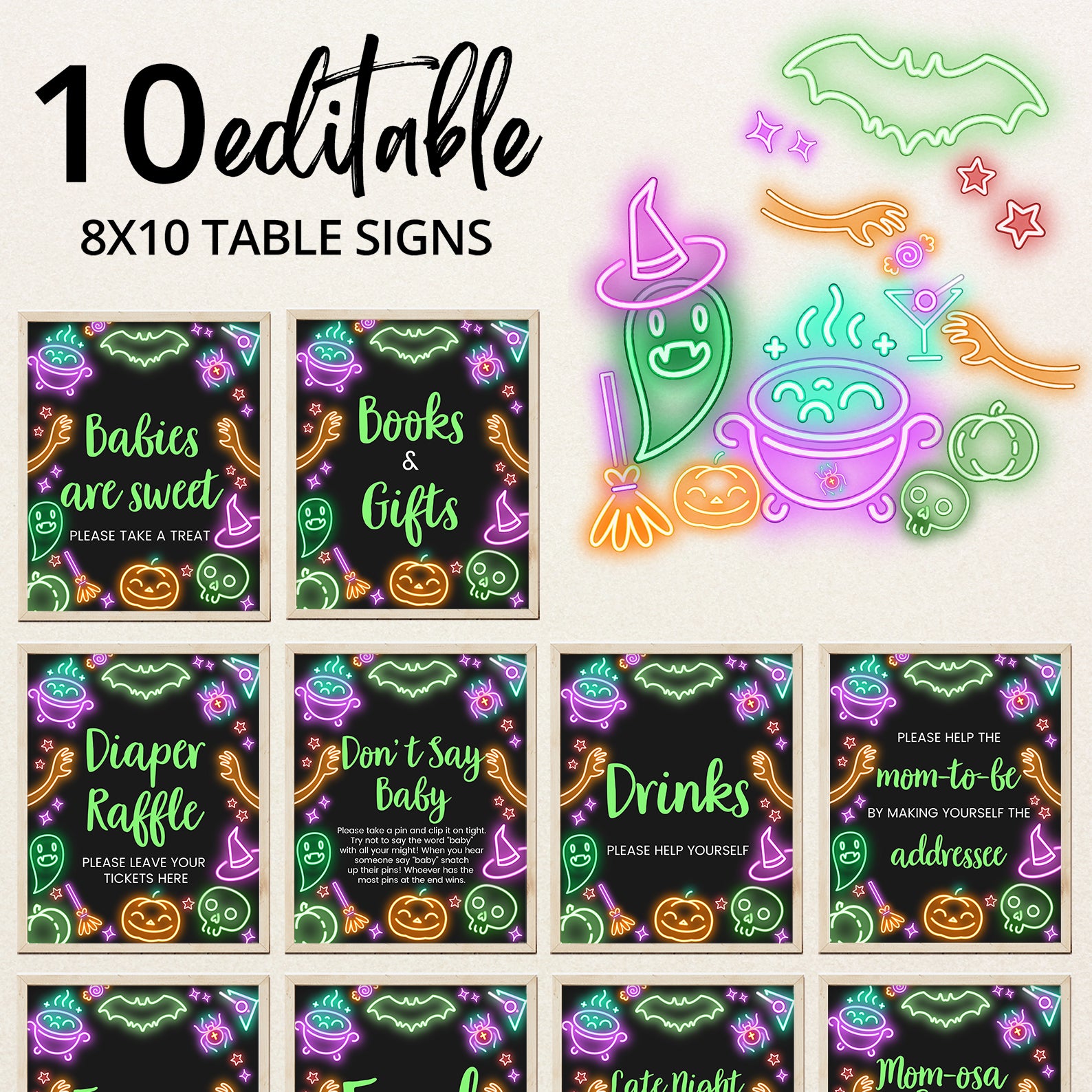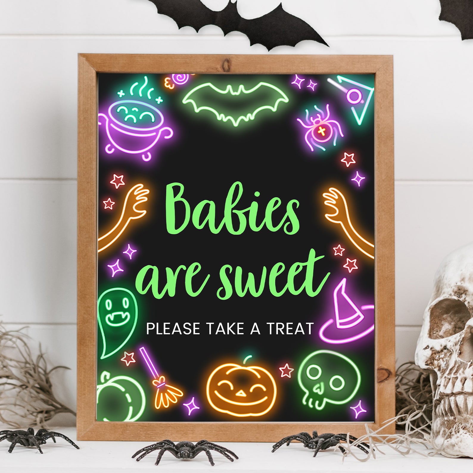 1. Purchase this Glow-in-the-Dark Baby Shower Table Sign: Neon Halloween Design template