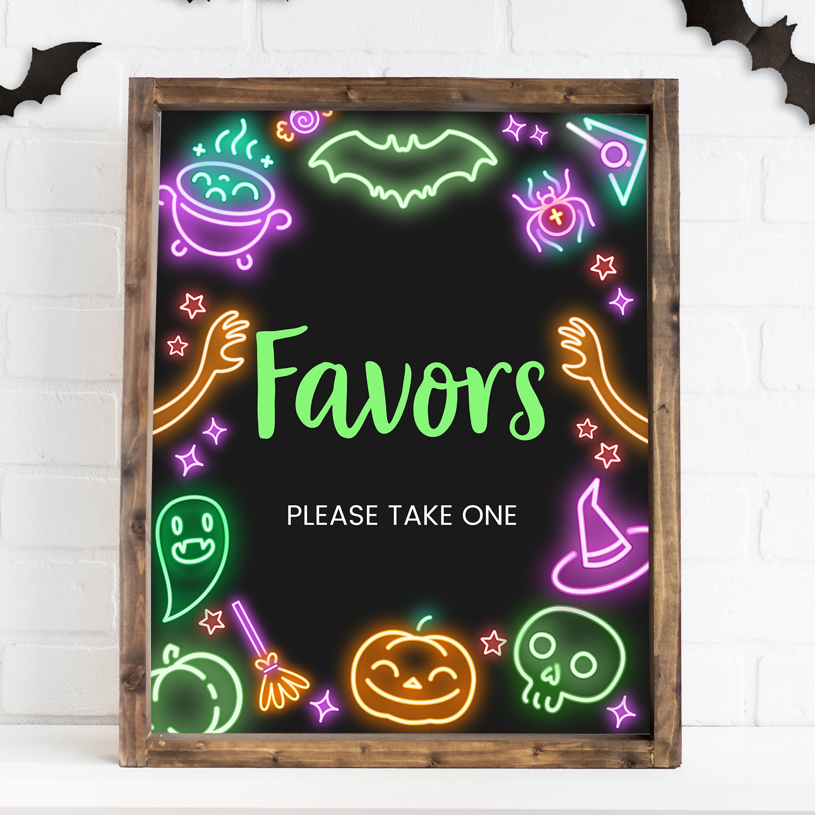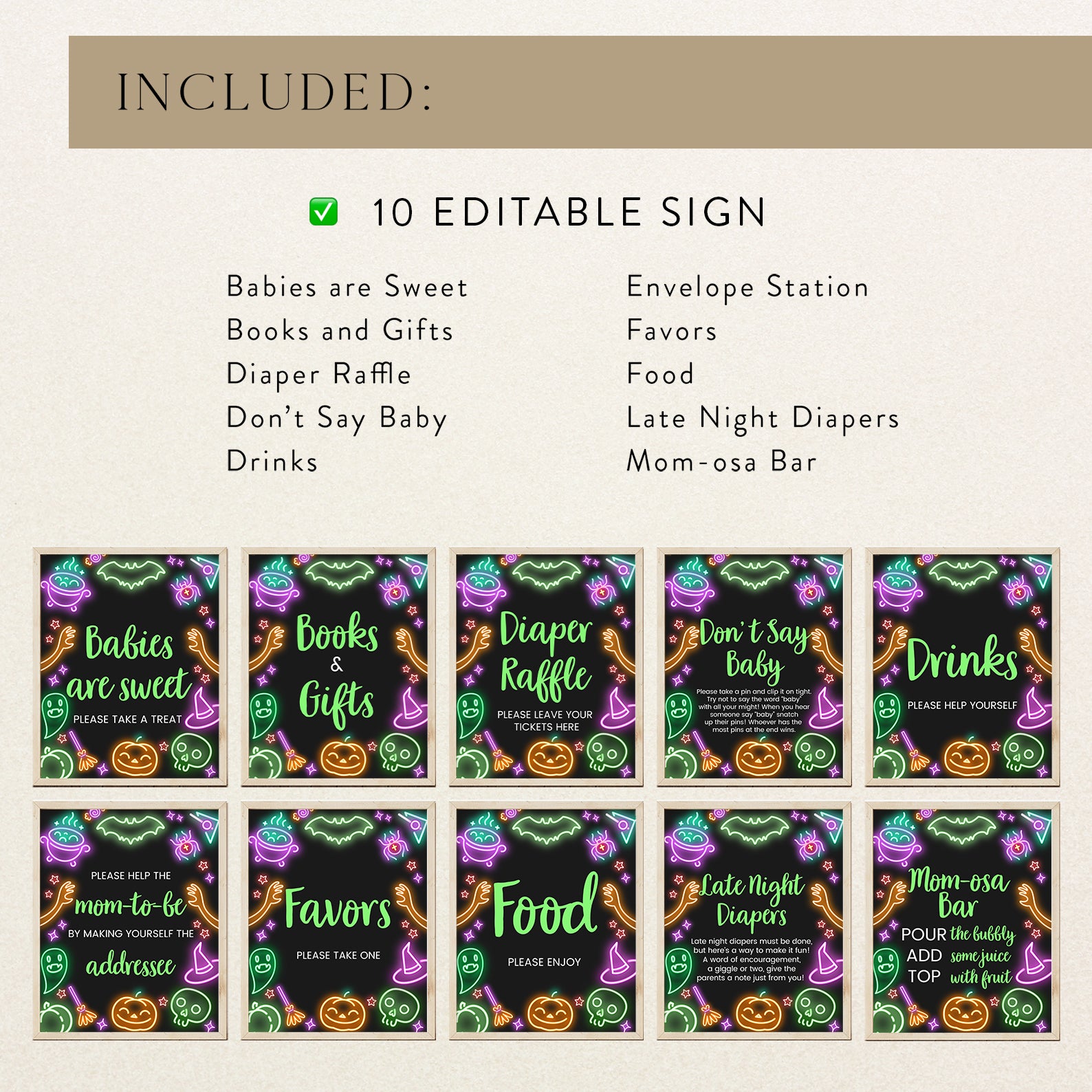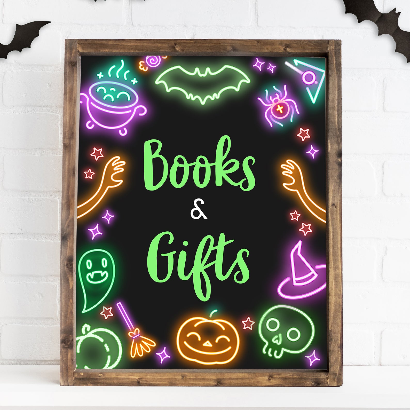 1. Purchase this Glow-in-the-Dark Baby Shower Table Sign: Neon Halloween Design template