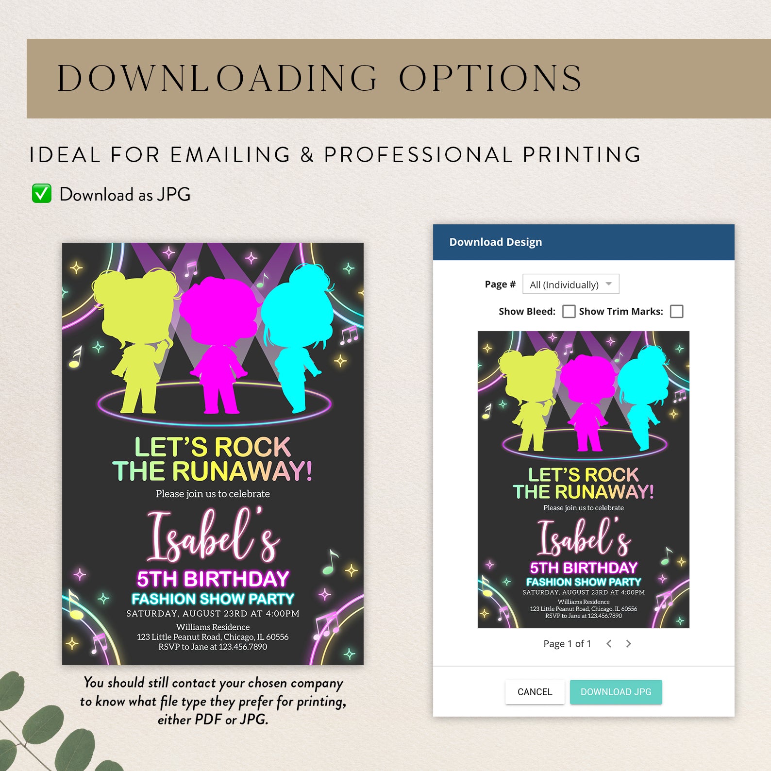 - Purchase this Fashion Show Birthday Invite: Let’s Rock the Runway template