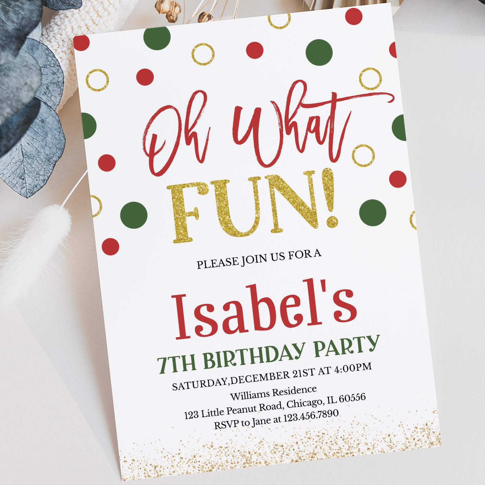 Oh What Fun 7th Birthday Invite: Festive Winter Theme