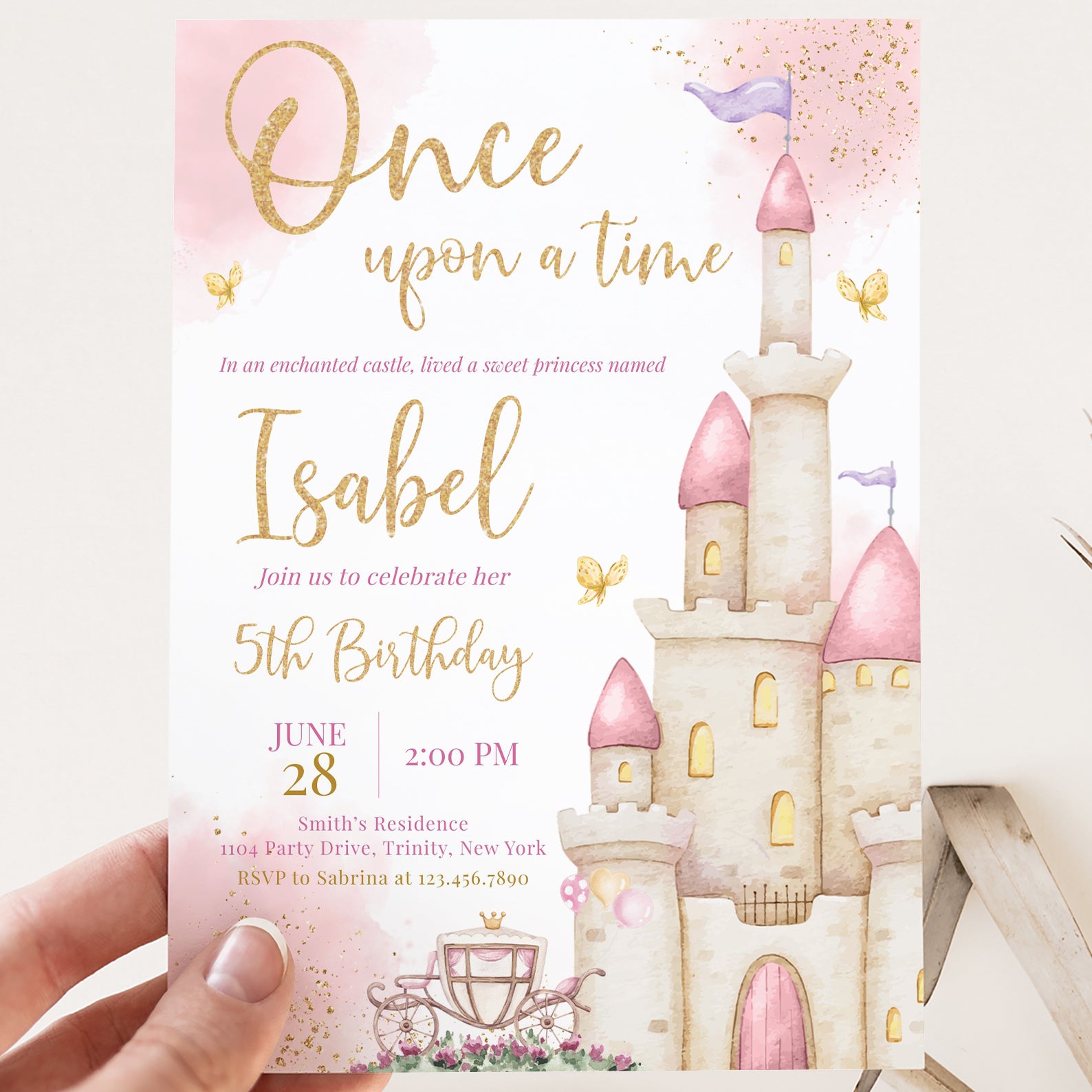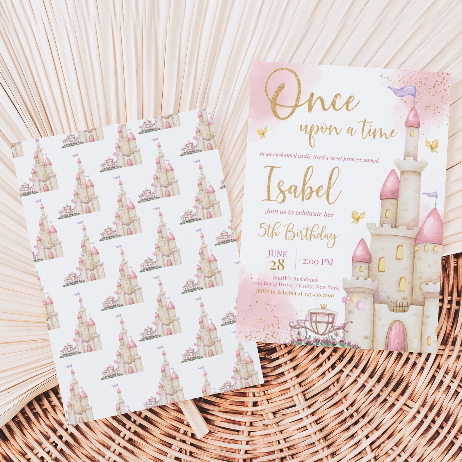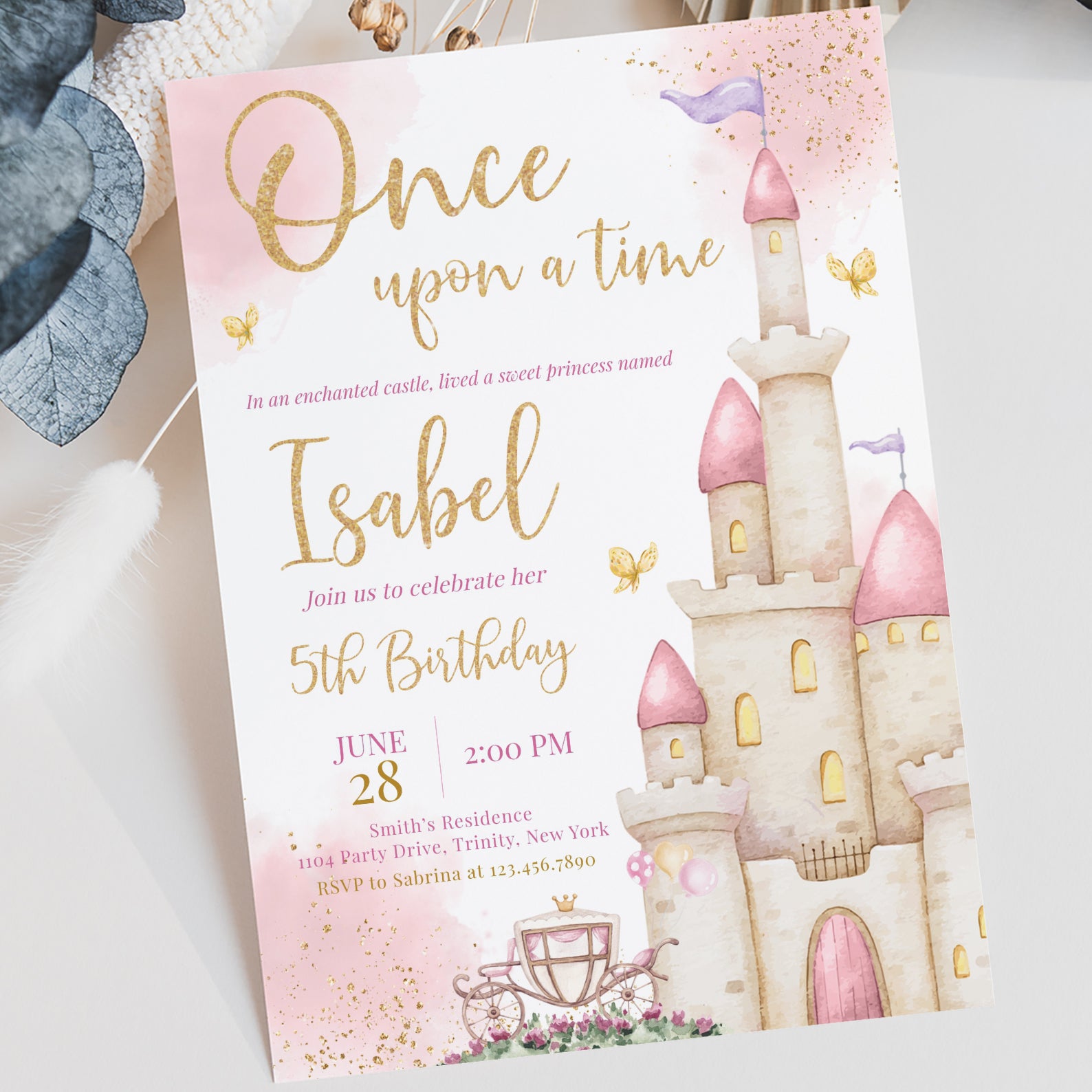 - Purchase this 5th Birthday Invitation Pink Gold Castle & Butterflies Theme template