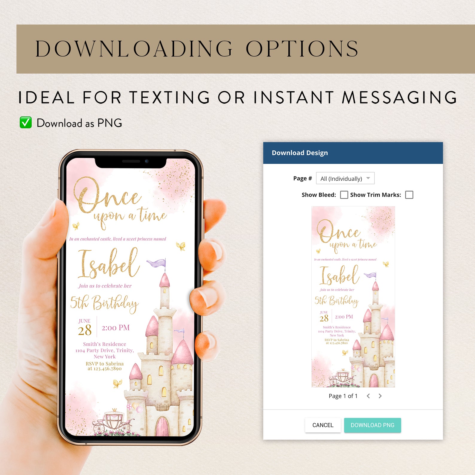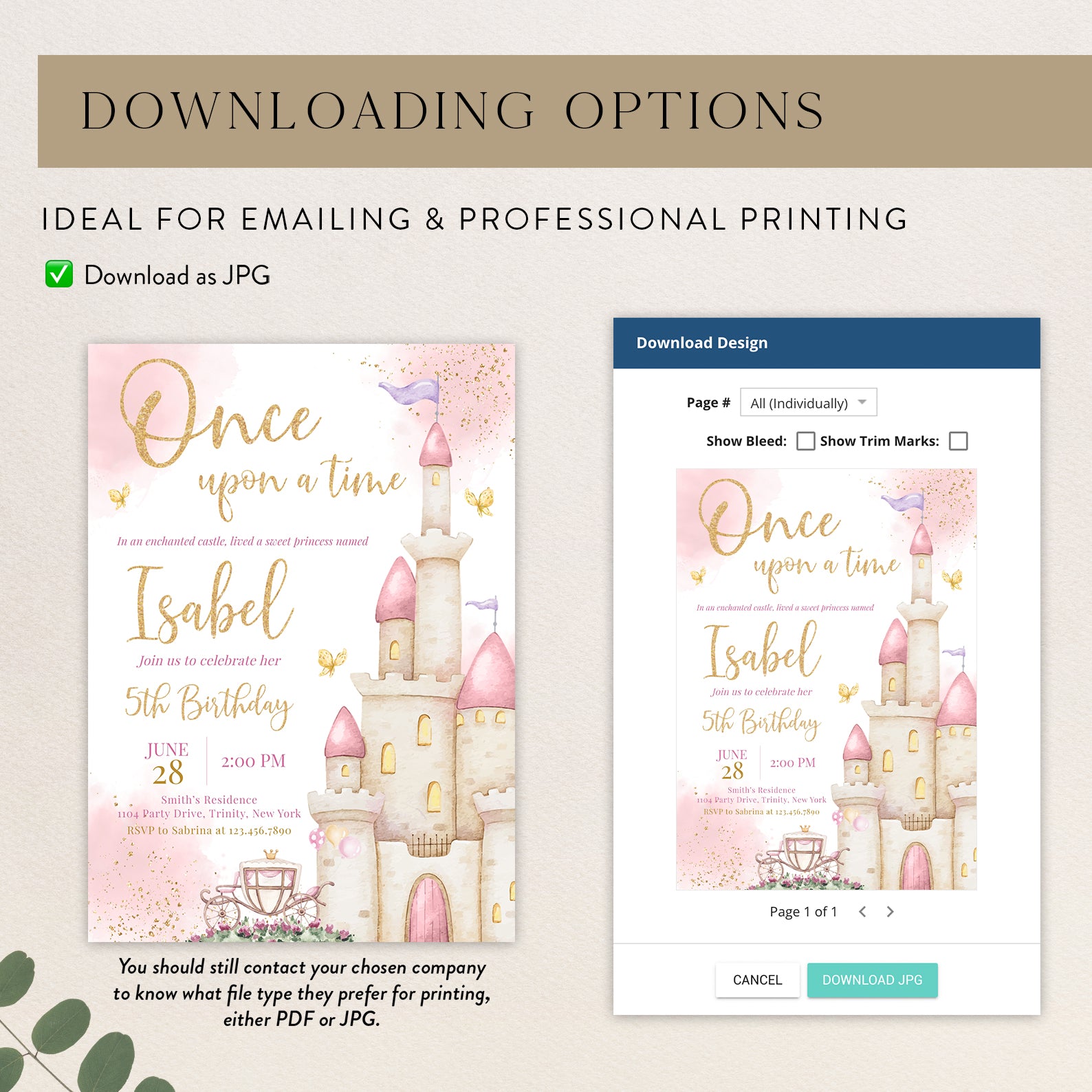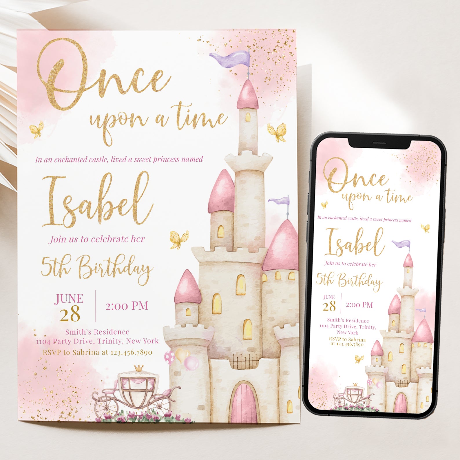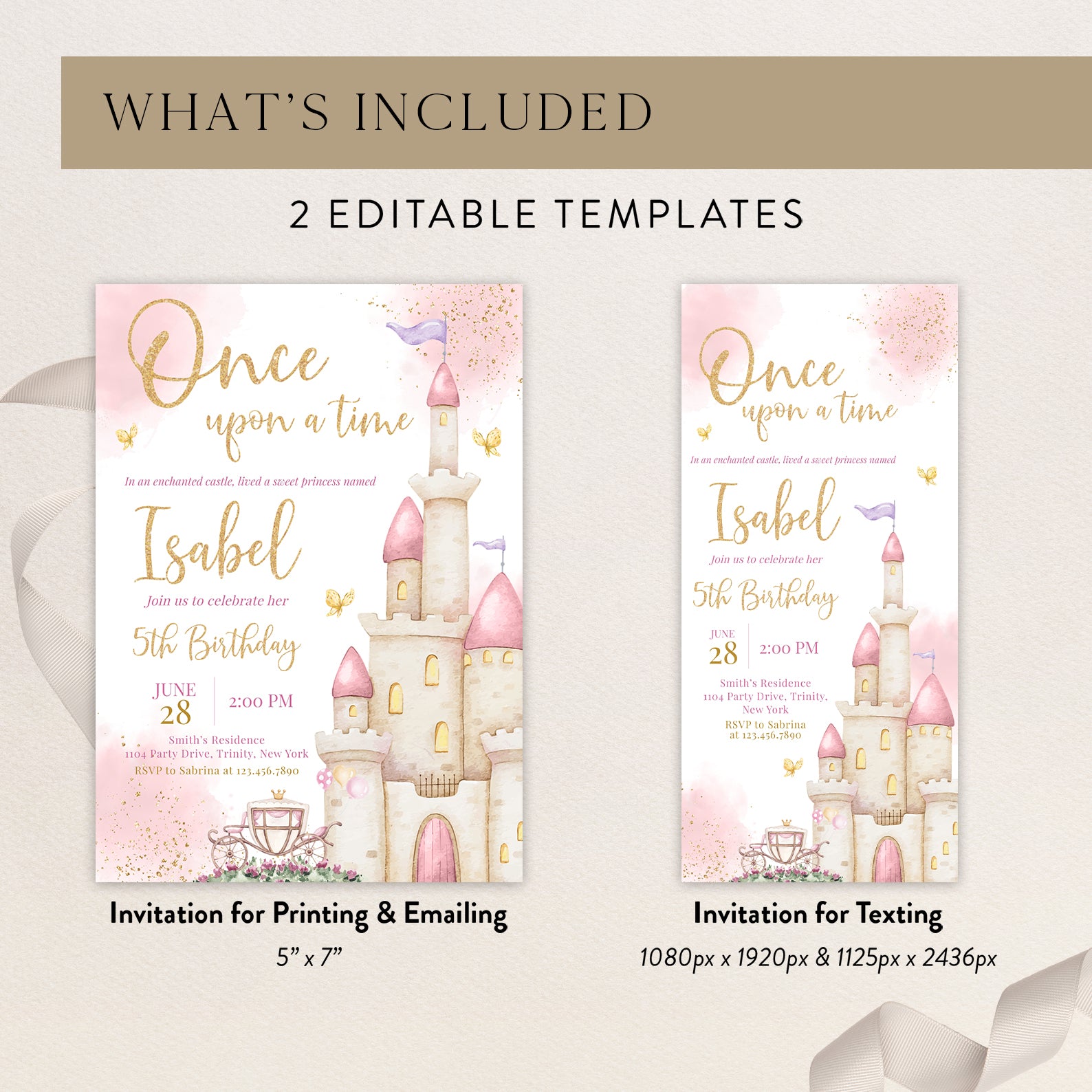 - Purchase this 5th Birthday Invitation Pink Gold Castle & Butterflies Theme template