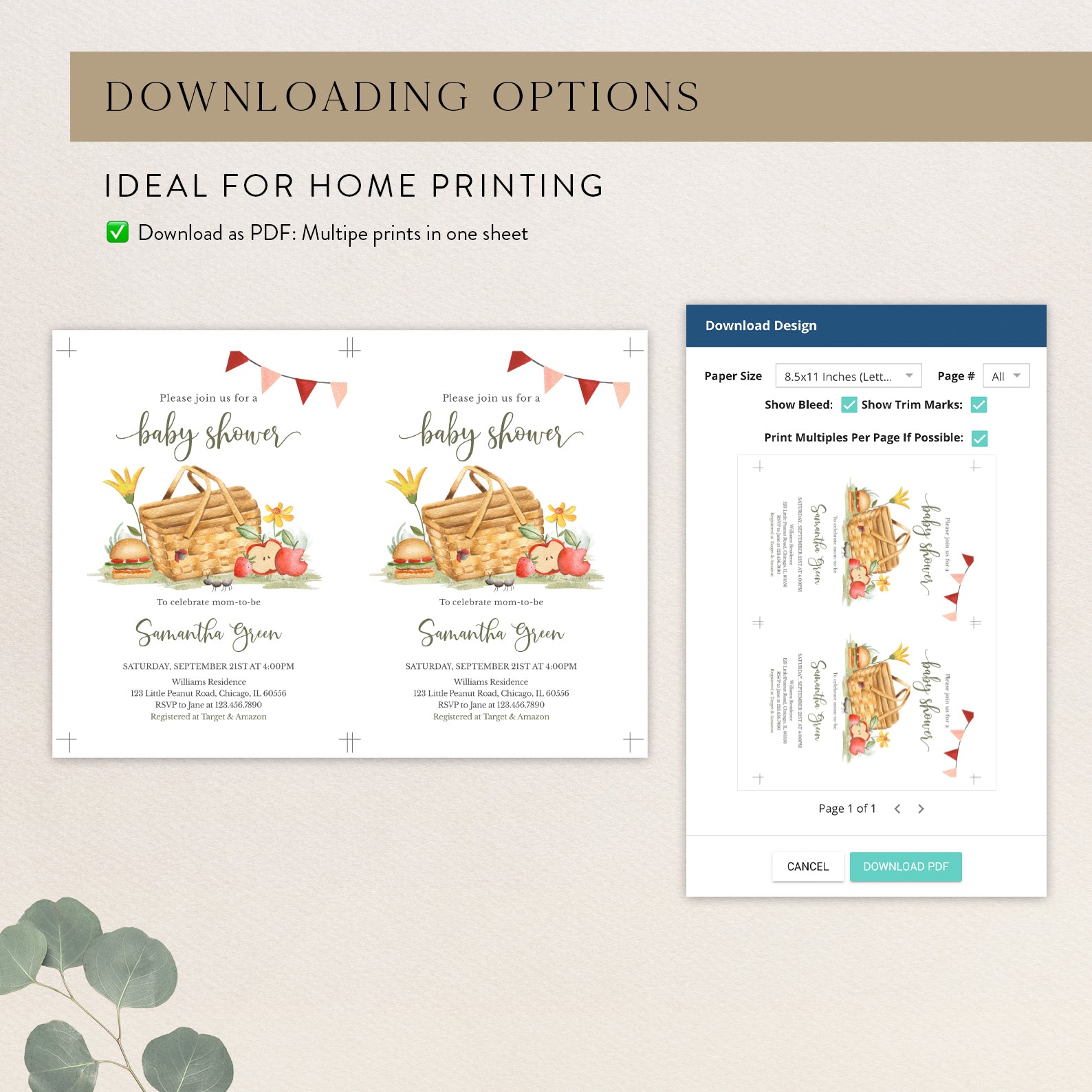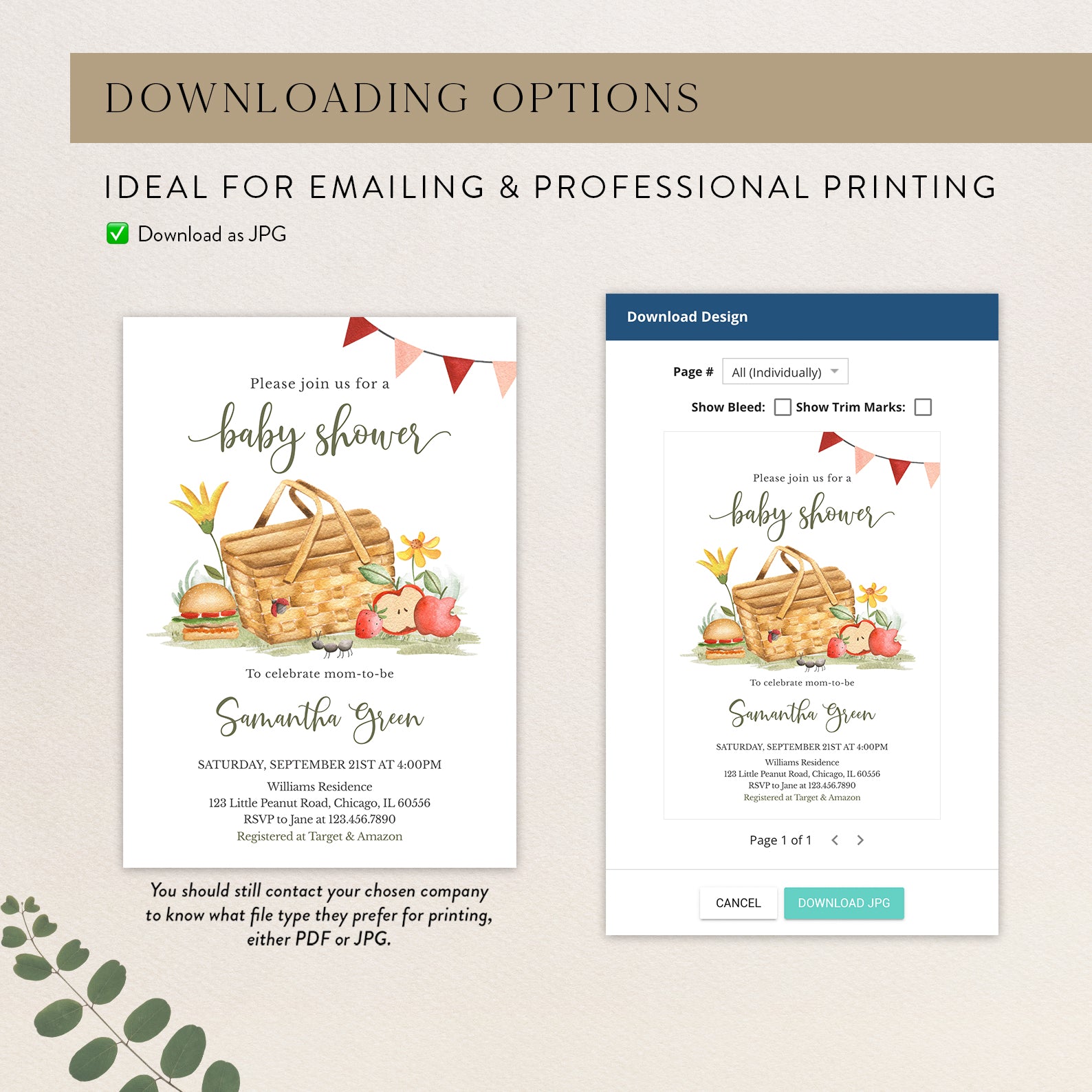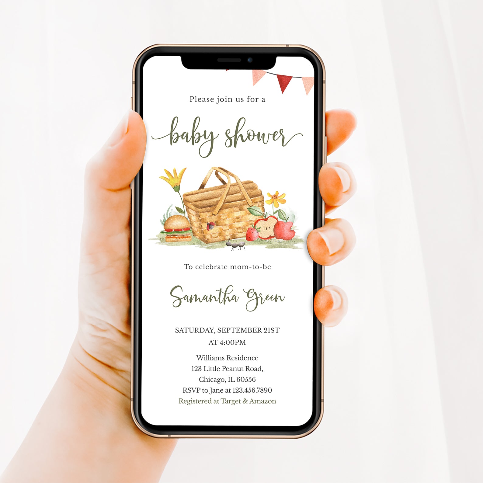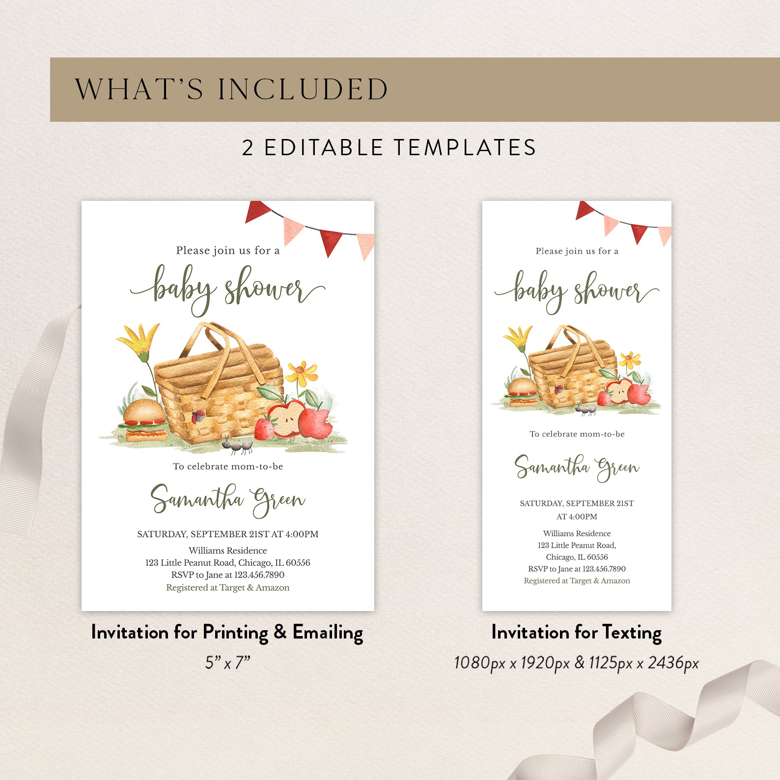 - Purchase this Picnic Fall Baby Shower Invite with Basket, Flowers & Banner template
