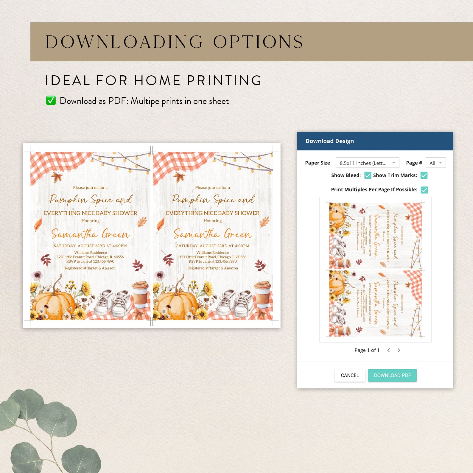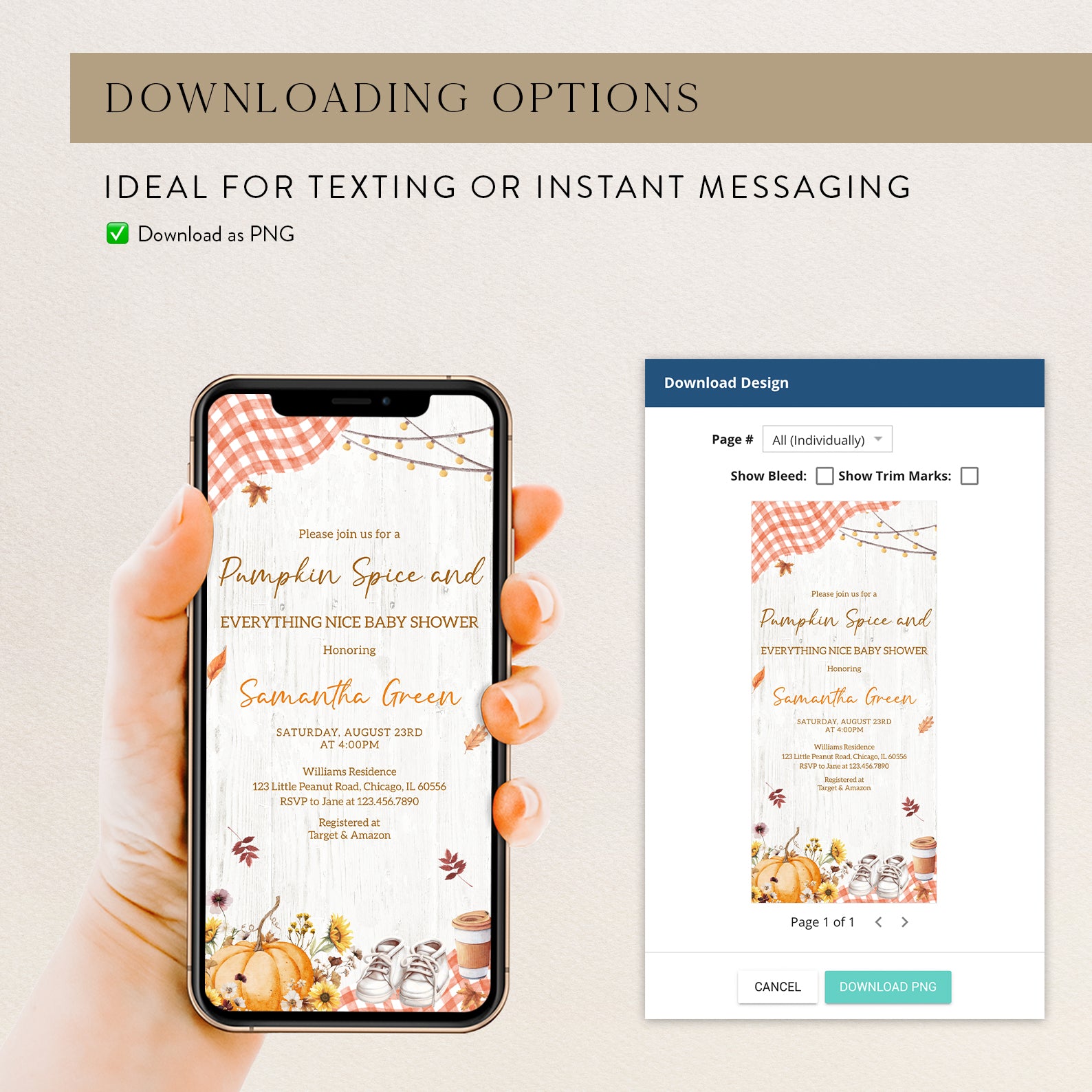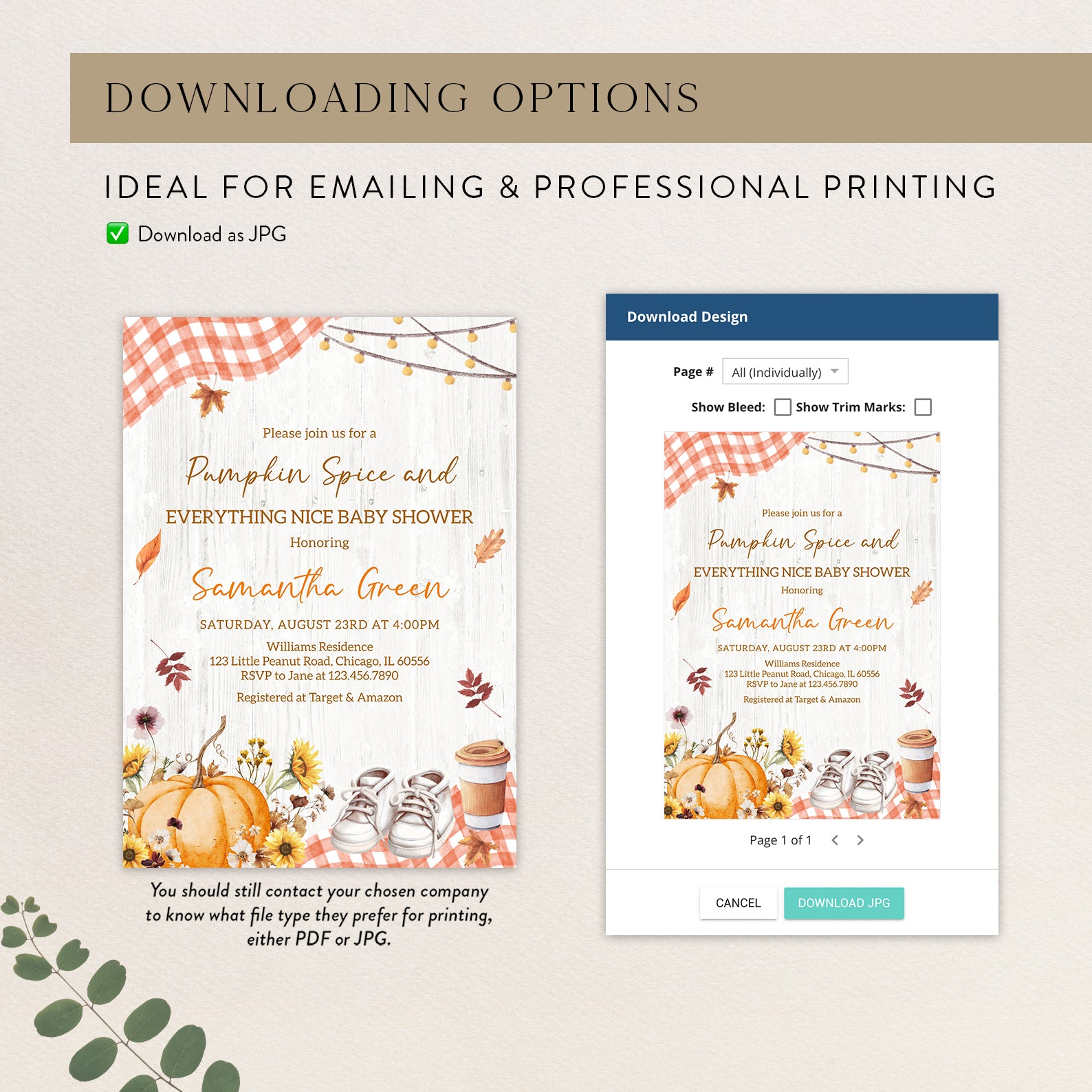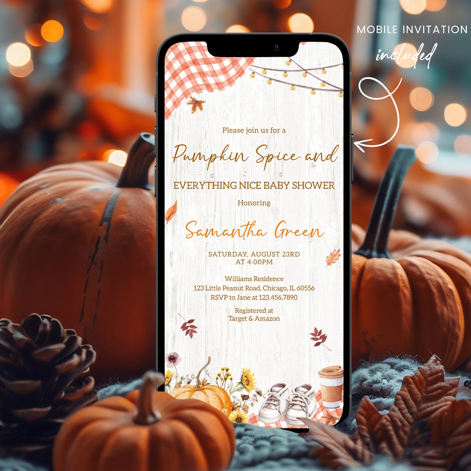 - Purchase this Pumpkin Spice Baby Shower Invite with Plaid & Pumpkins template