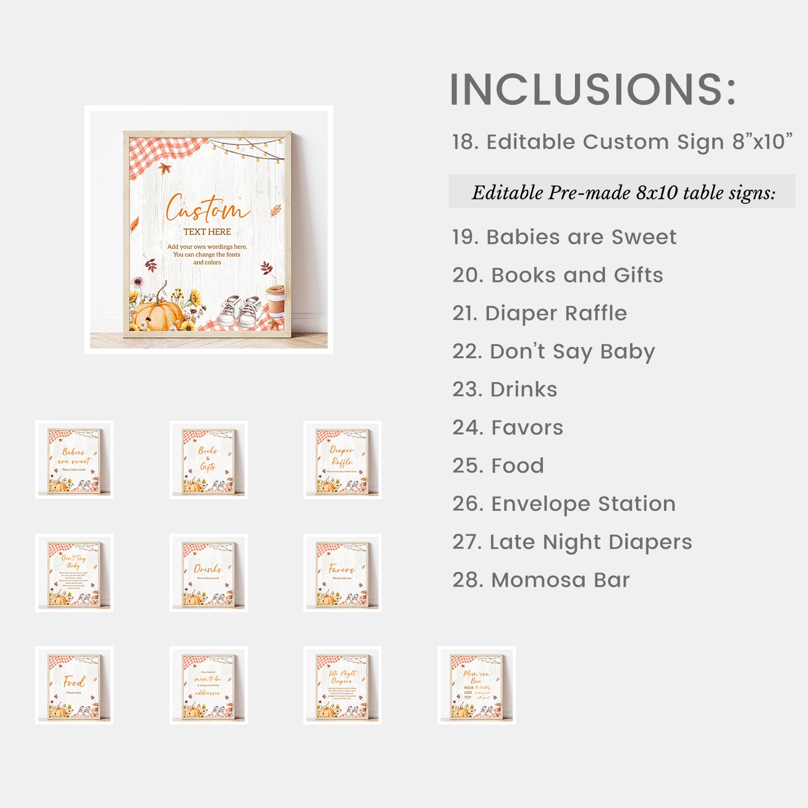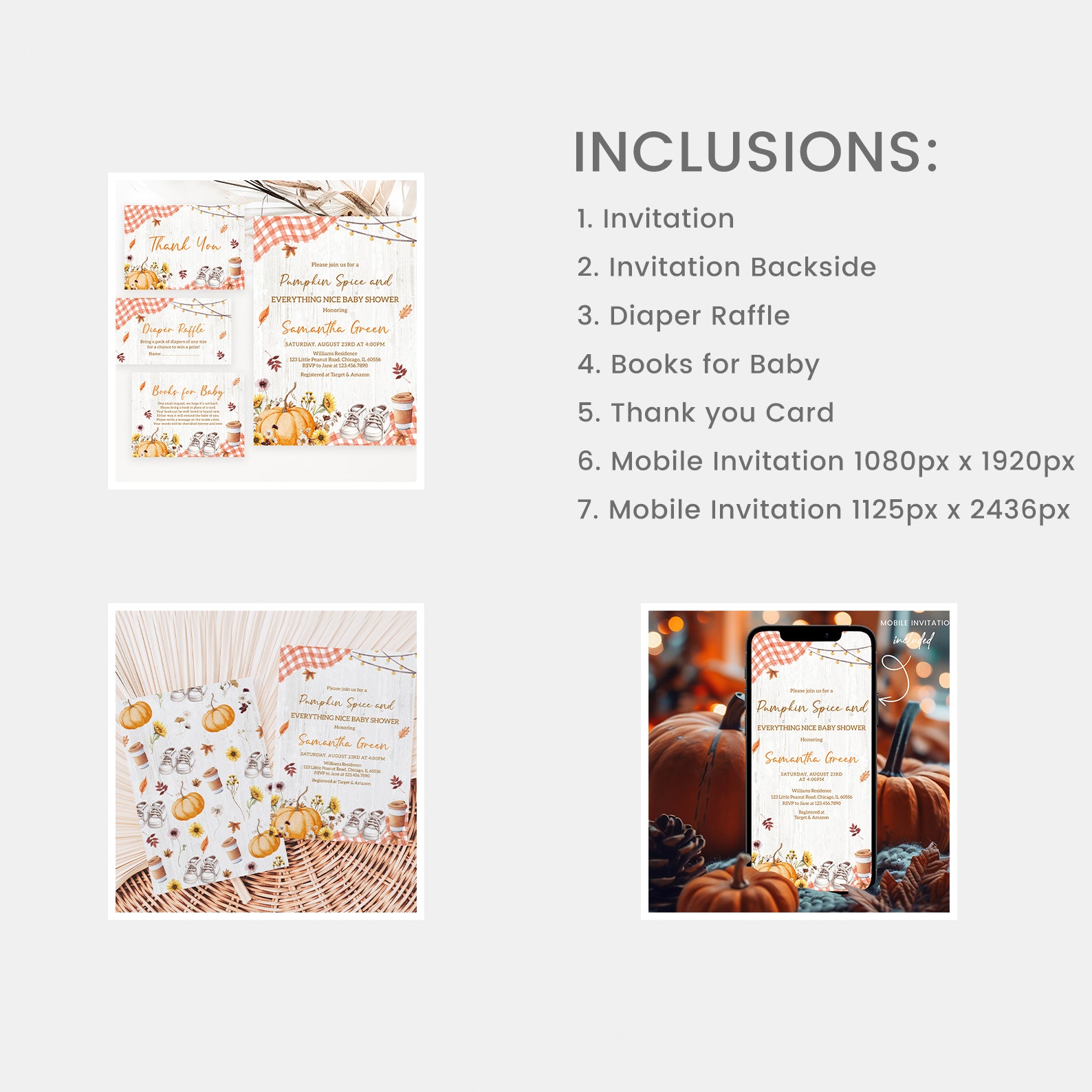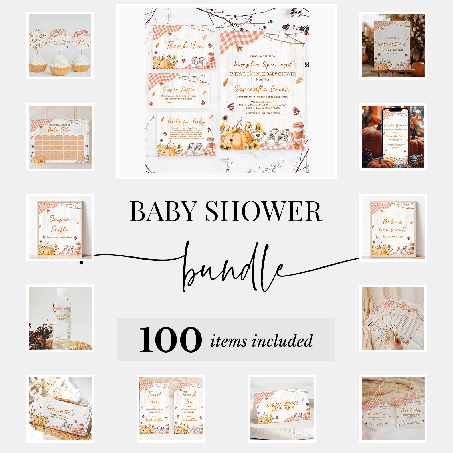 - Purchase this Pumpkin Spice Baby Shower Mega Bundle with Plaid & Pumpkins template