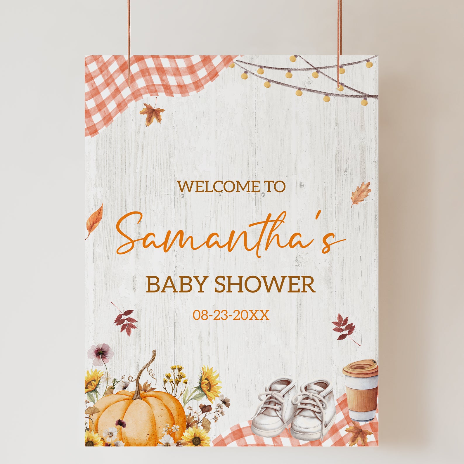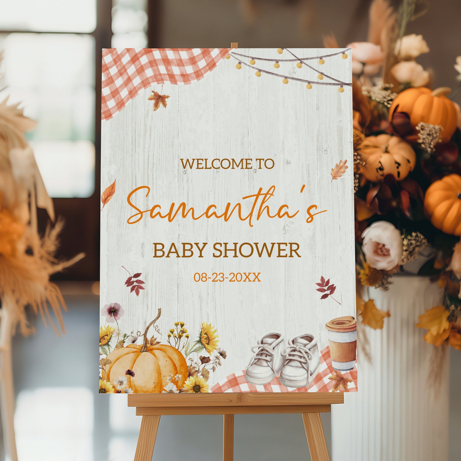 - Purchase this Pumpkin Spice Baby Shower Welcome Sign with Plaid & Pumpkins template