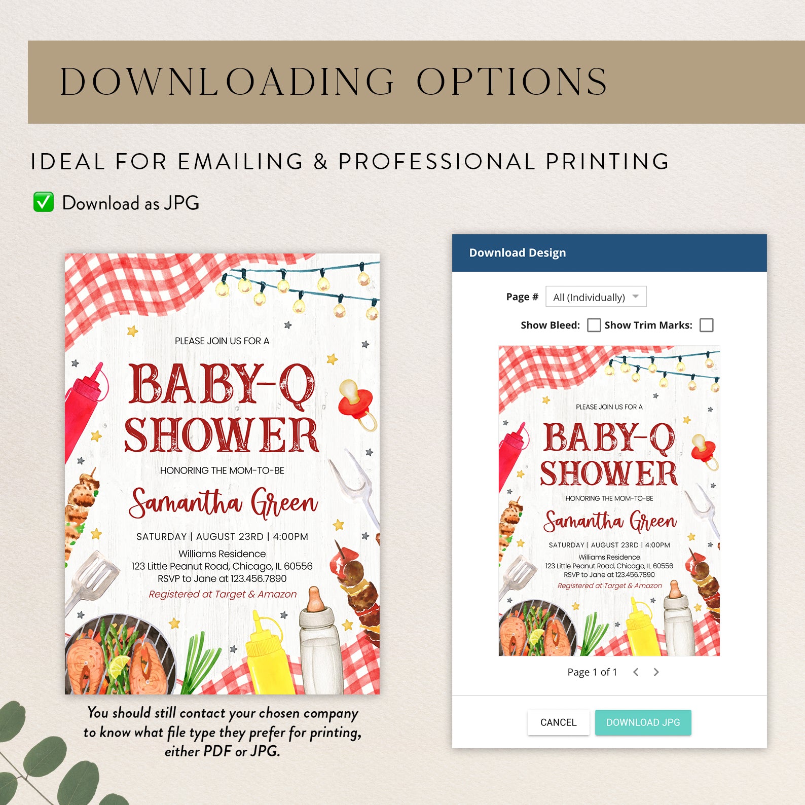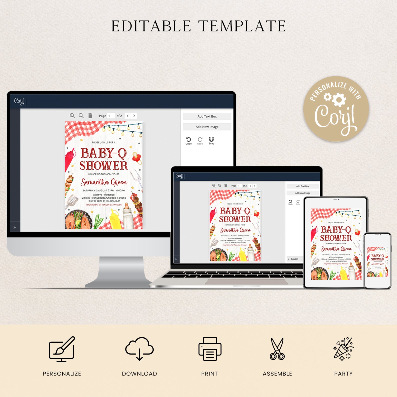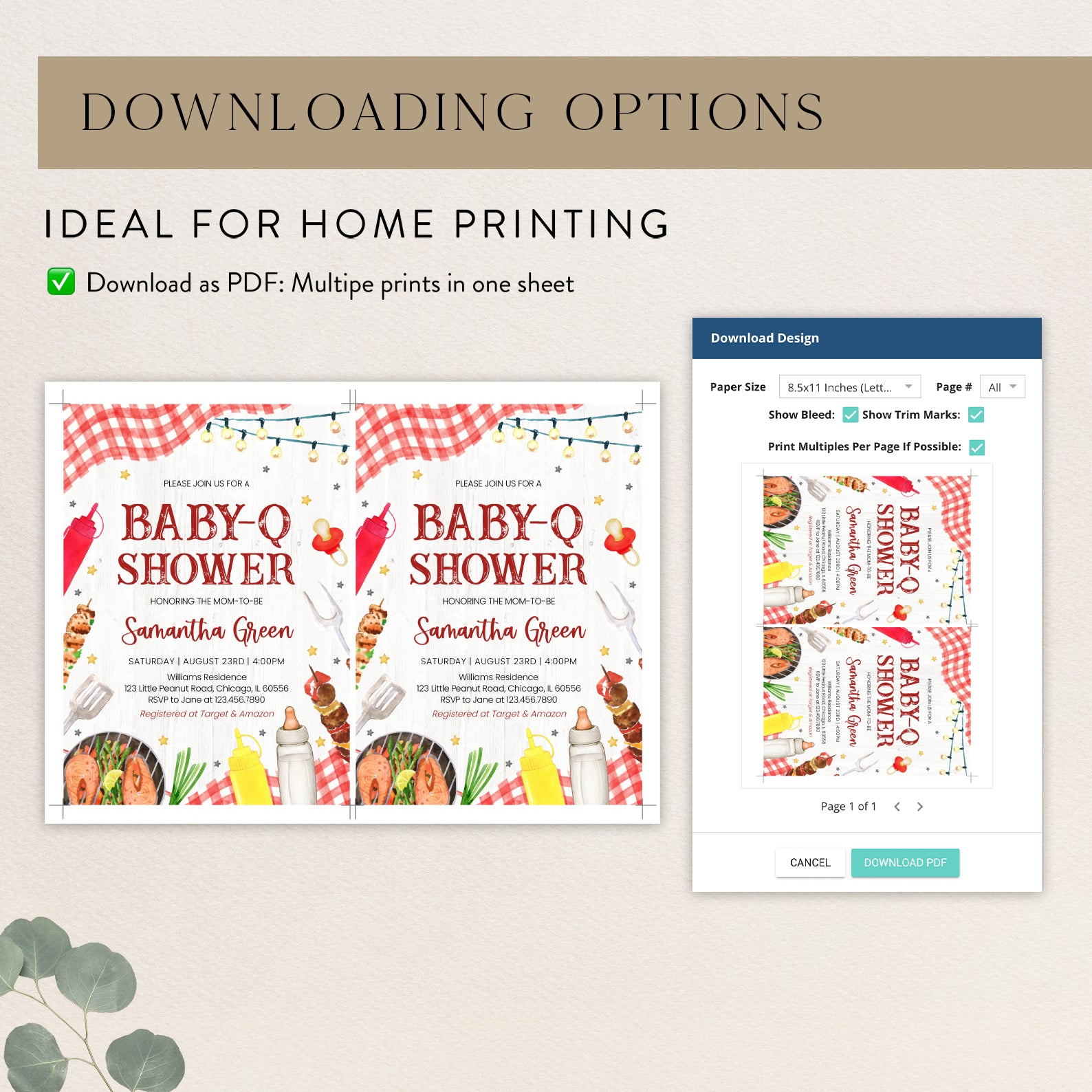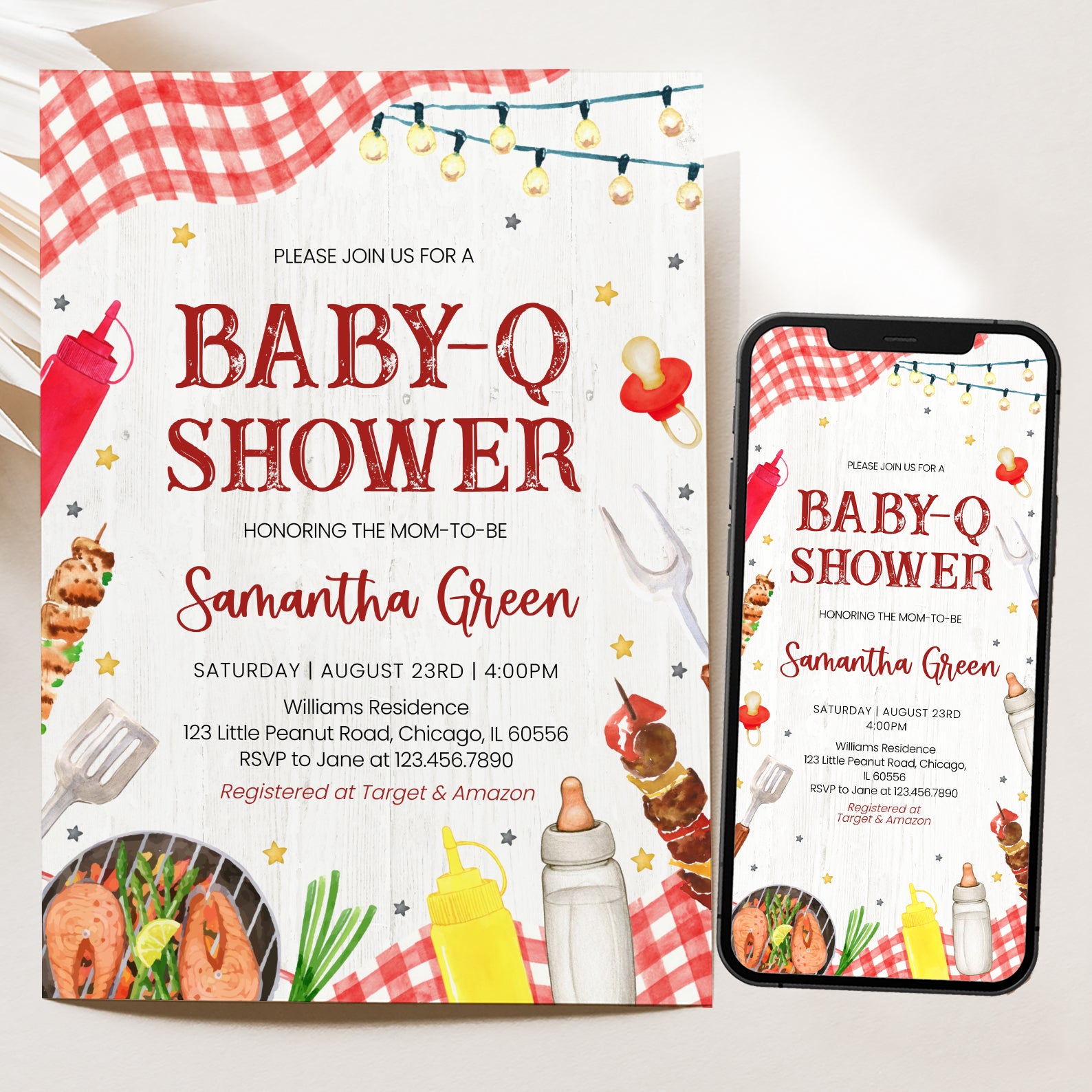 1. Purchase this Summer BBQ Baby Shower Digital Invite with Red Plaid & Grill template