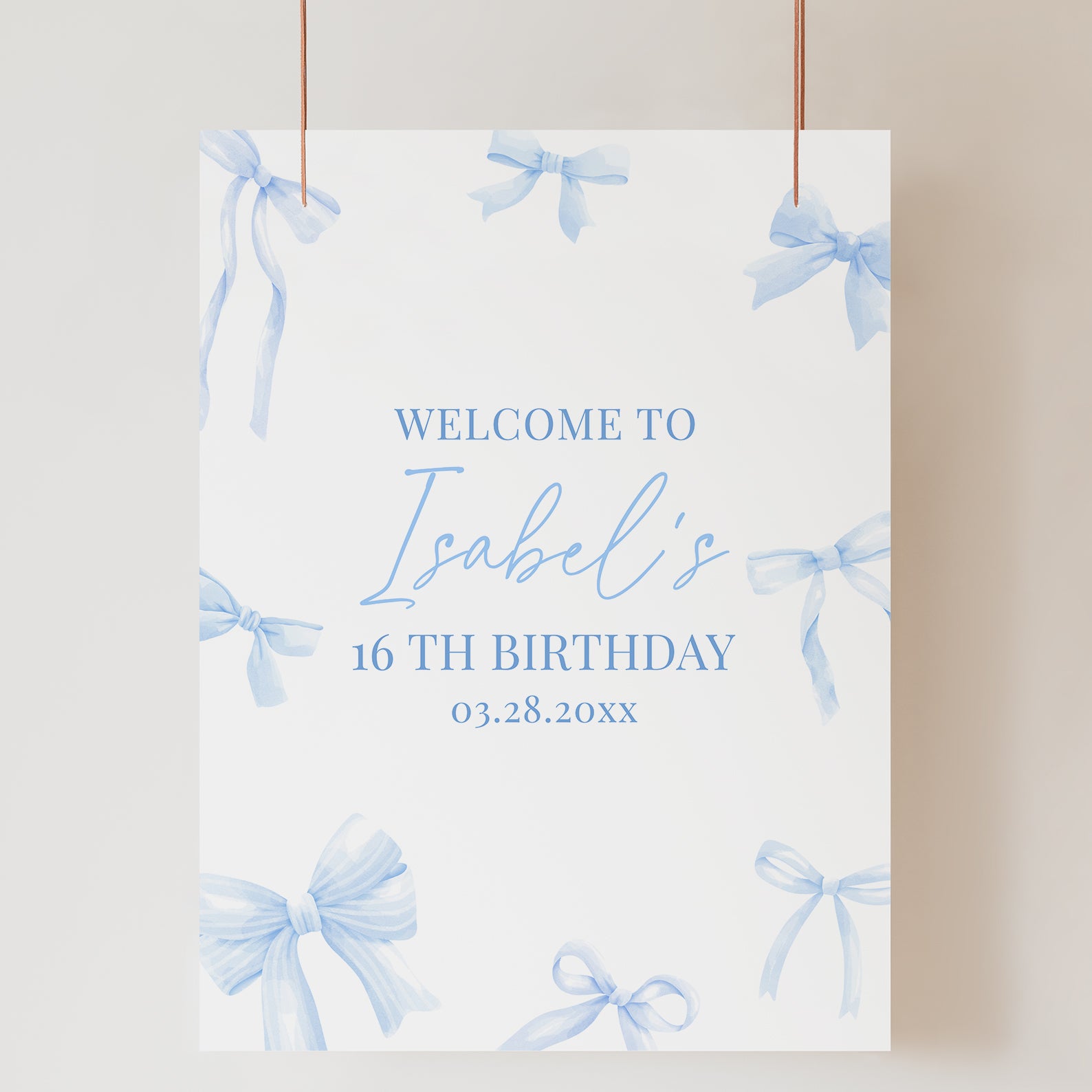 - Purchase this 16th Birthday Digital Welcome Sign: Elegant Blue Ribbon Design template