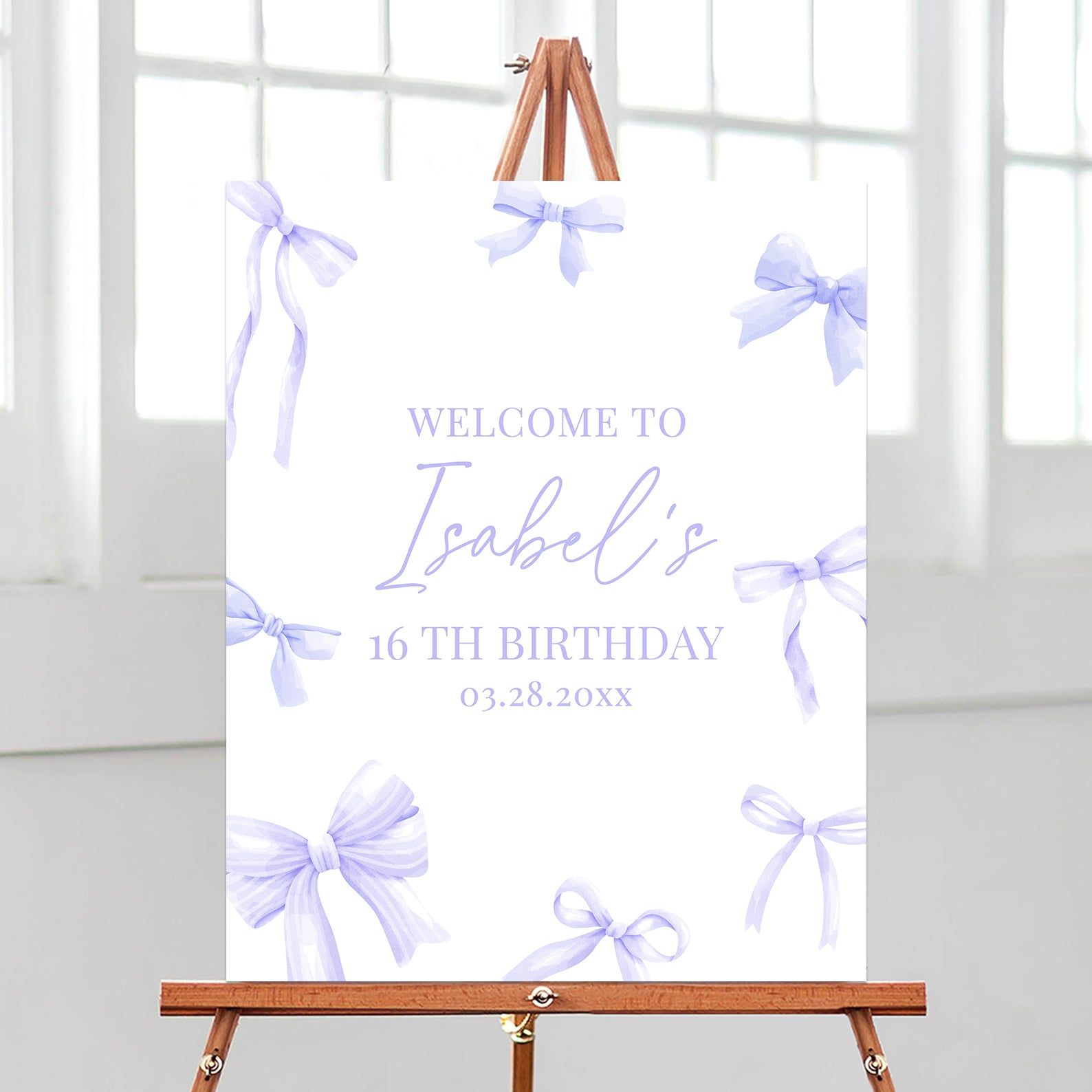 - Purchase this 16th Birthday Digital Welcome Sign: Elegant Purple Ribbon Design template