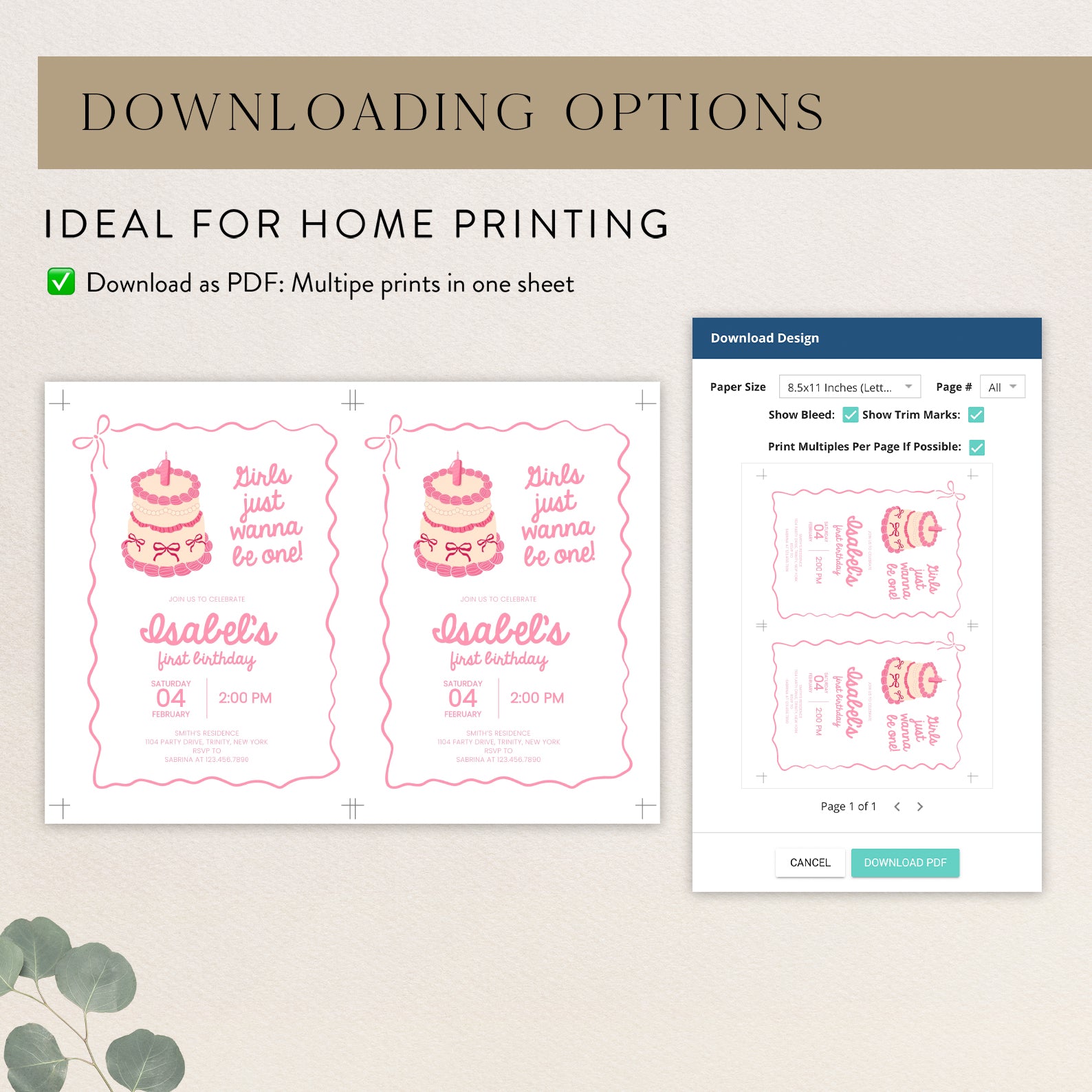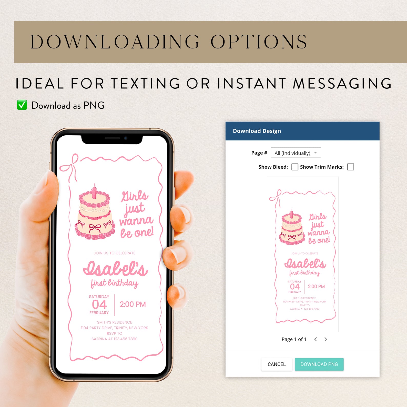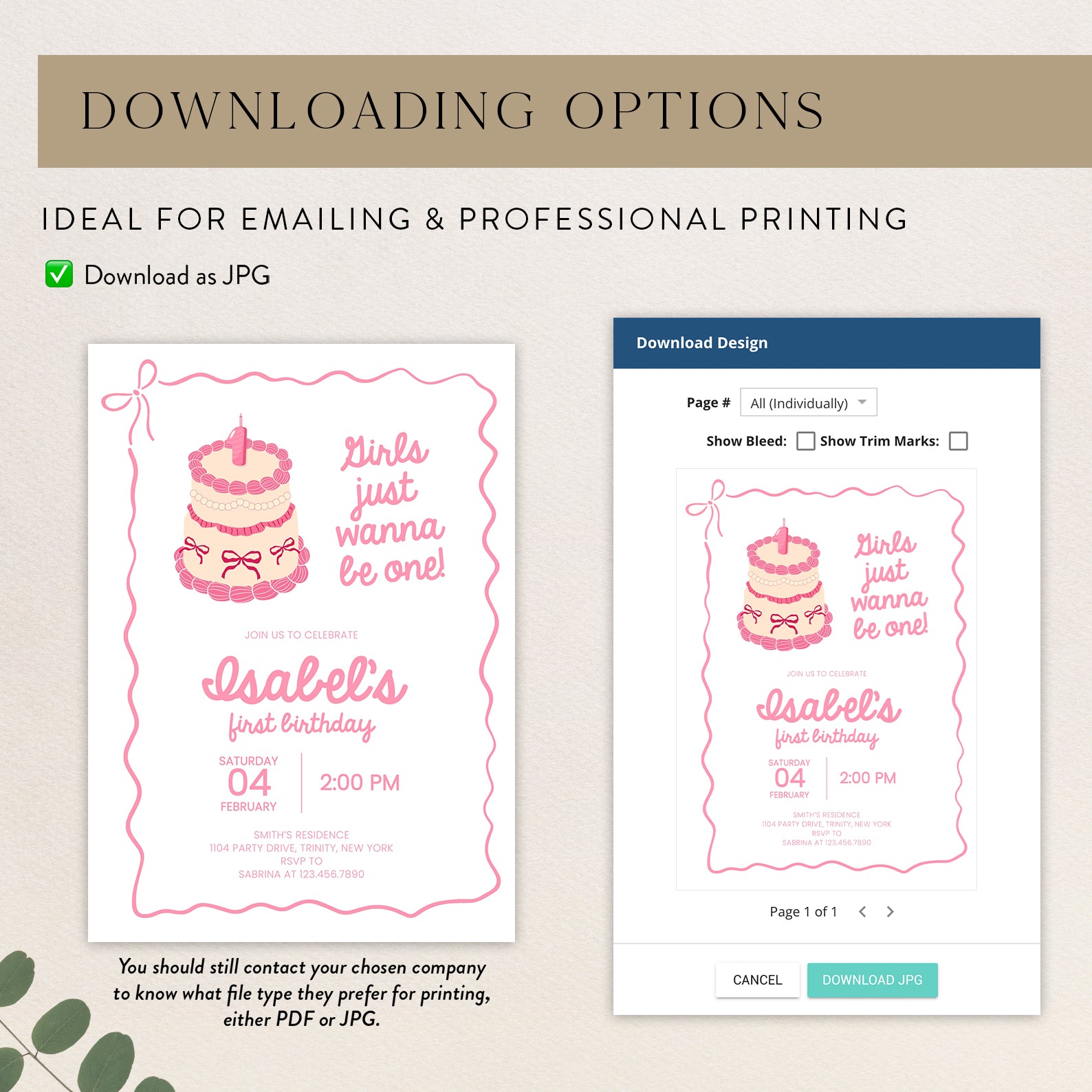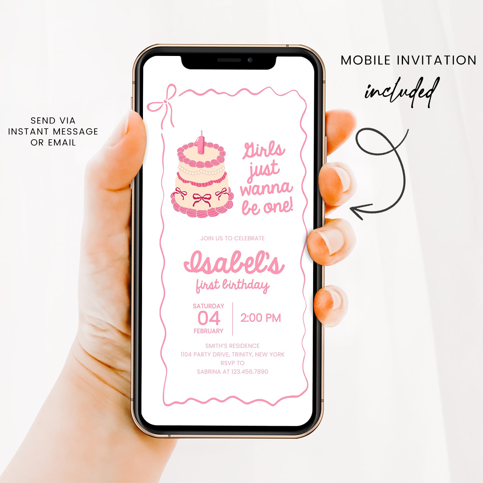 - Purchase this Girls Just Wanna Be One: Pink First Birthday Invite template