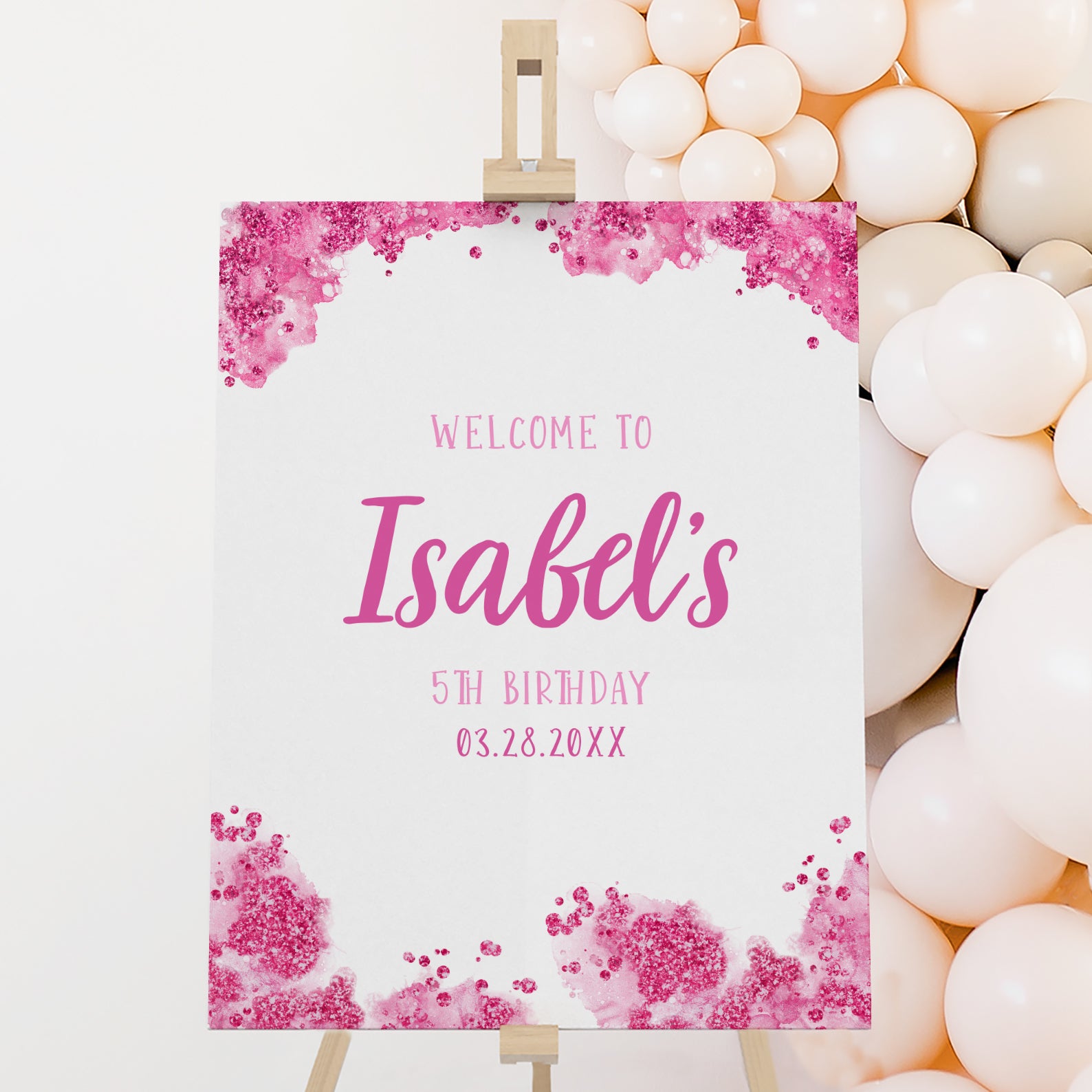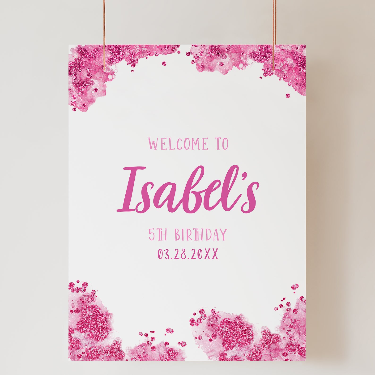- Purchase this Pink Glitter 5th Birthday Digital Welcome Sign: Sparkling Fun template