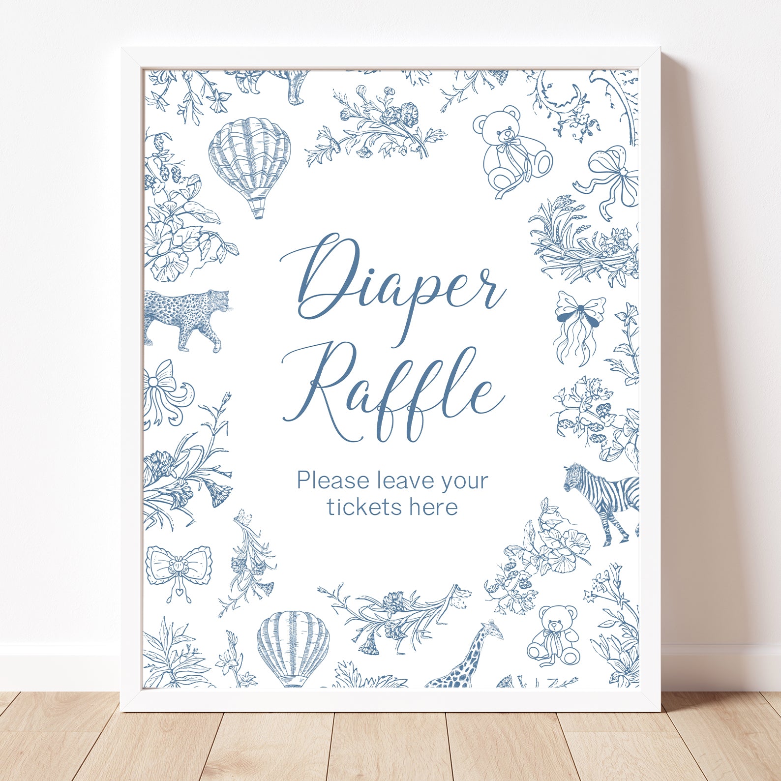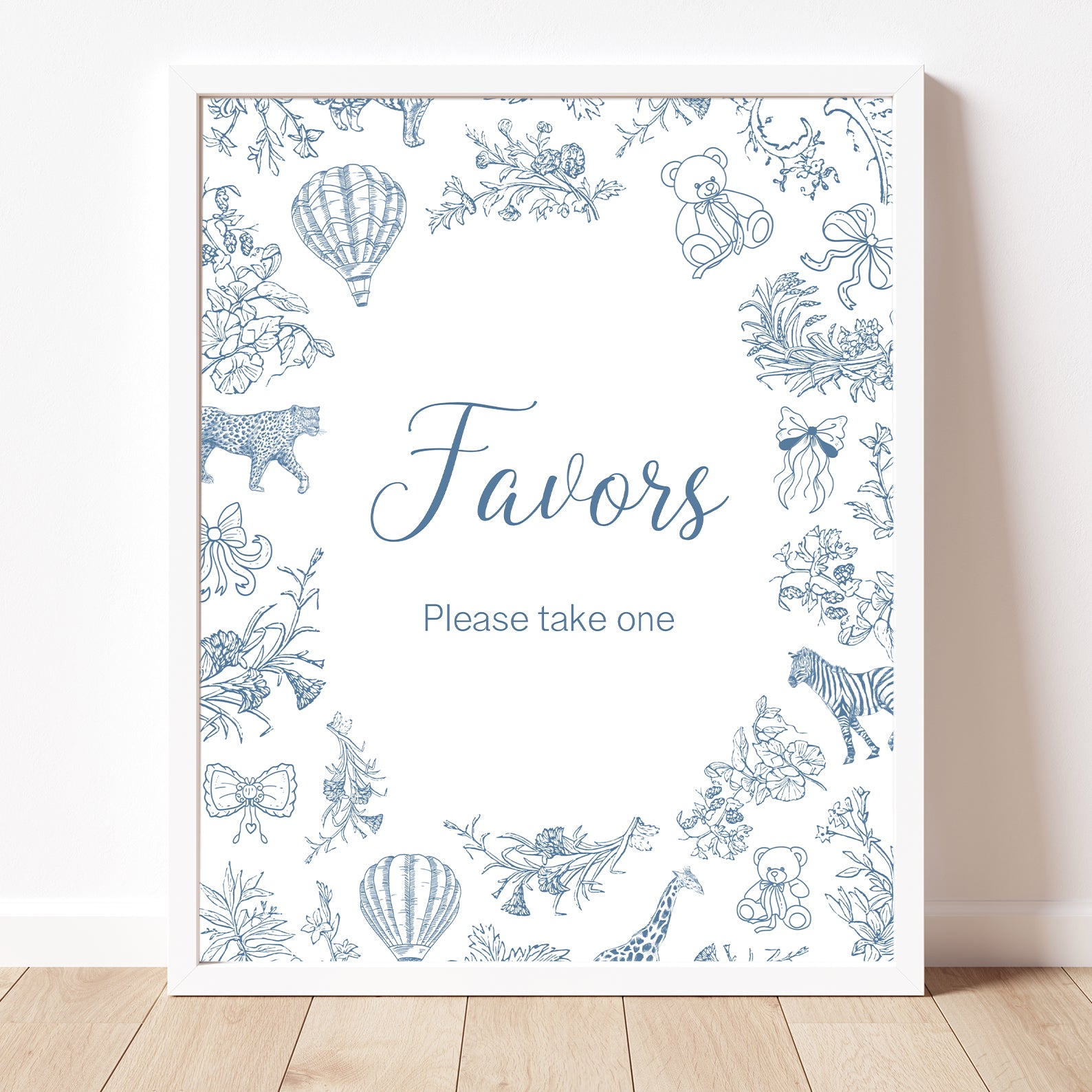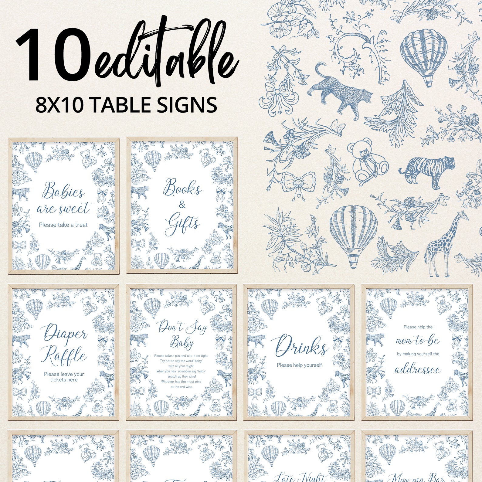 - Purchase this Blue Safari Baby Shower Table Sign with Toile de Jouy Print template