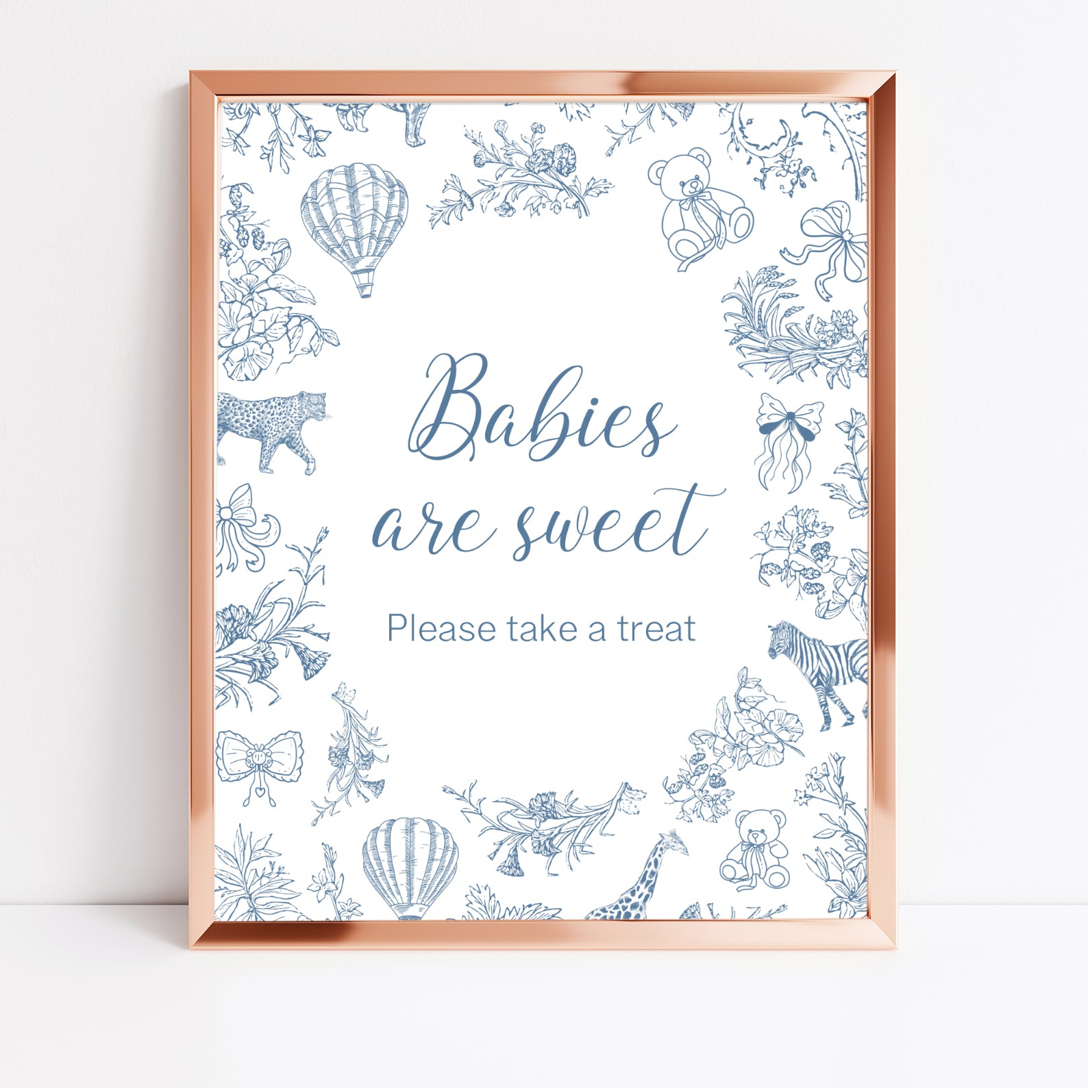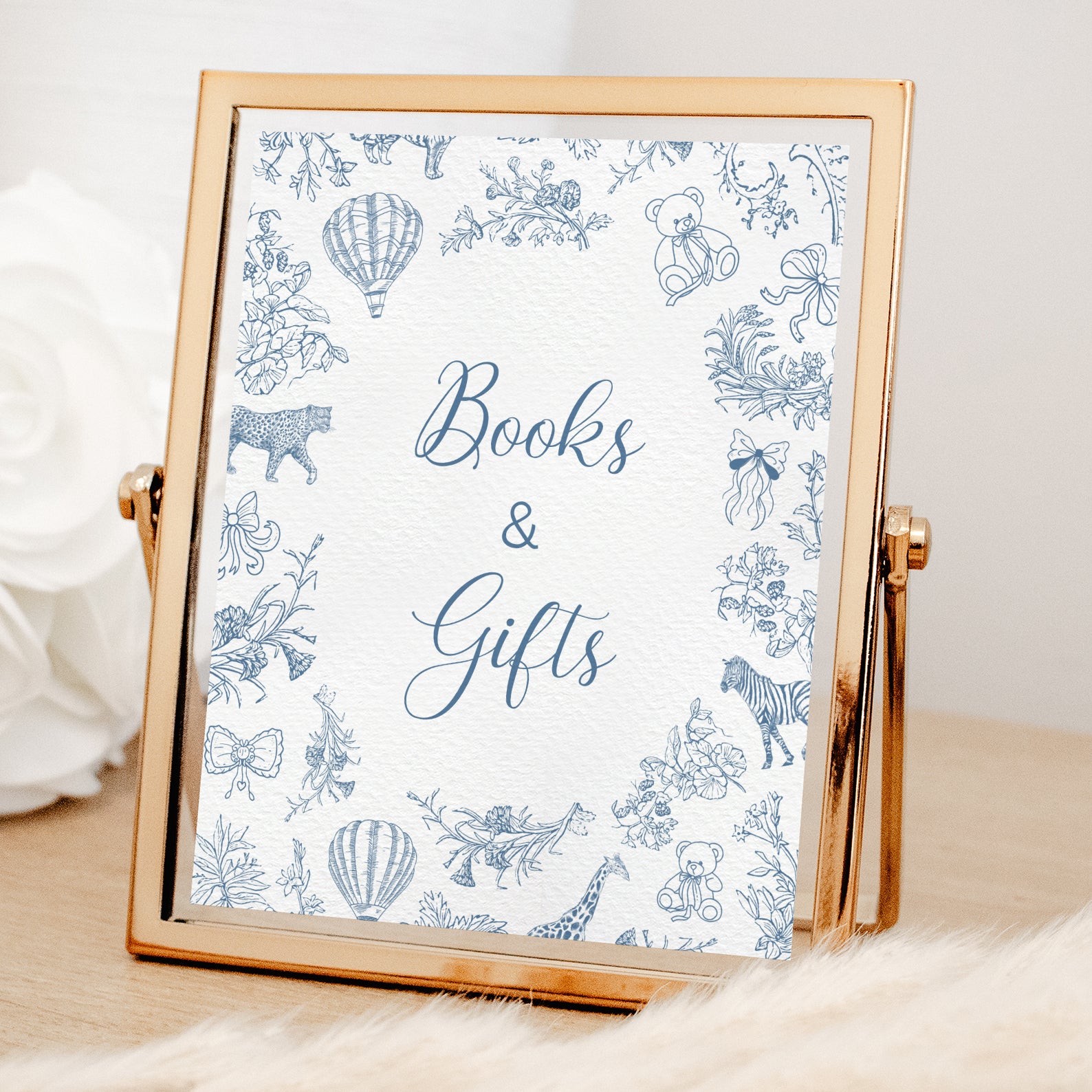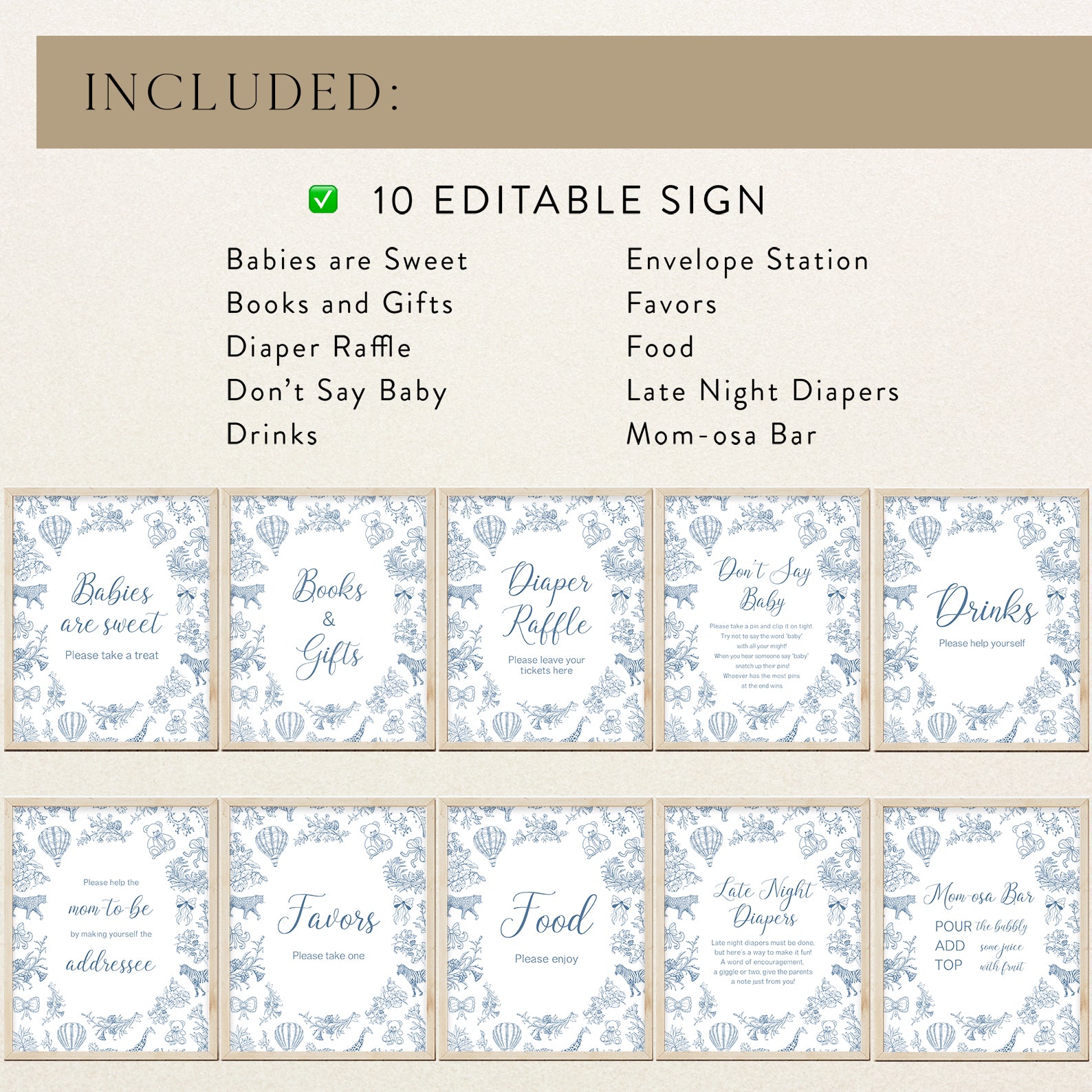 - Purchase this Blue Safari Baby Shower Table Sign with Toile de Jouy Print template