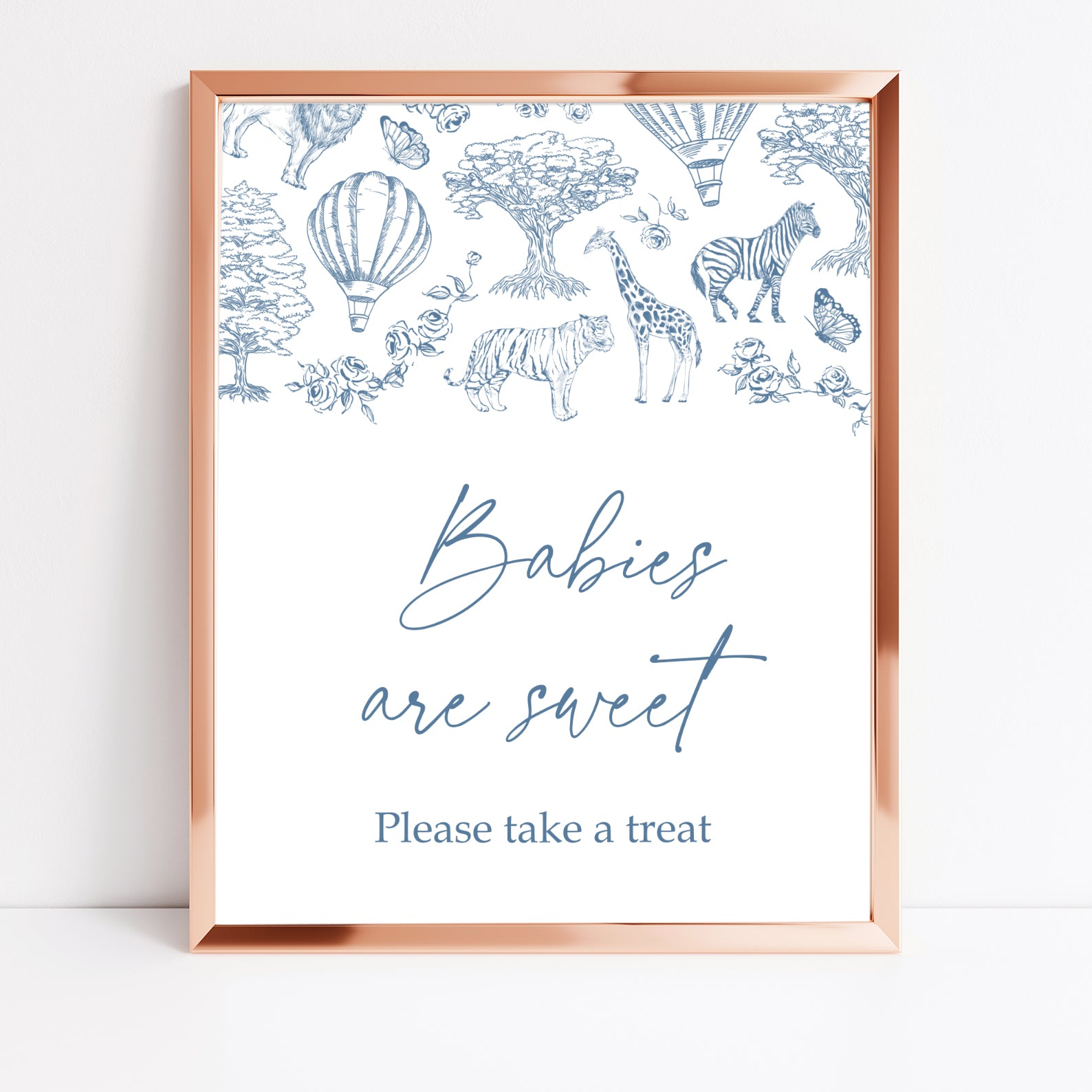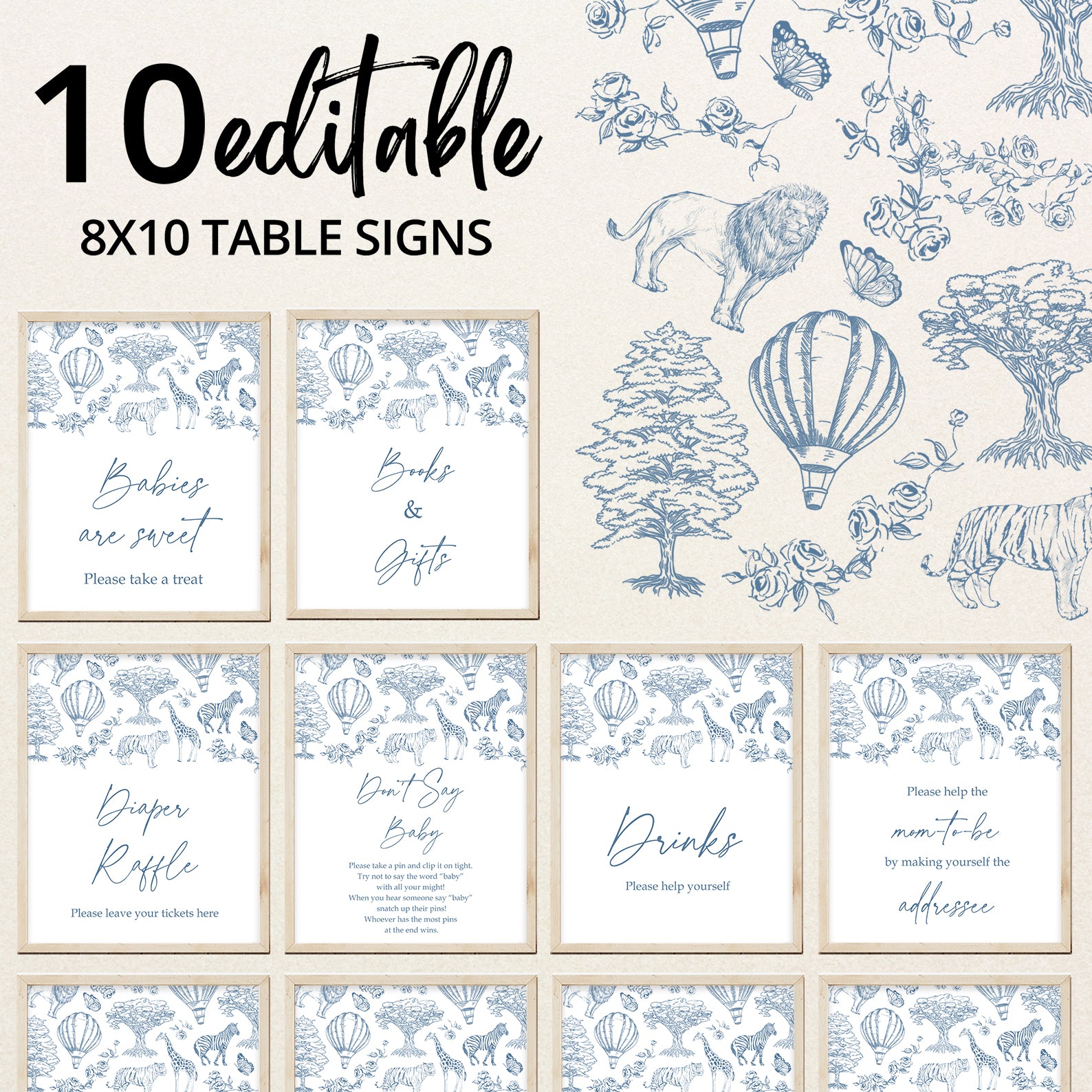- Purchase this Blue Safari Toile Baby Shower Digital Table Sign for a Baby Boy template