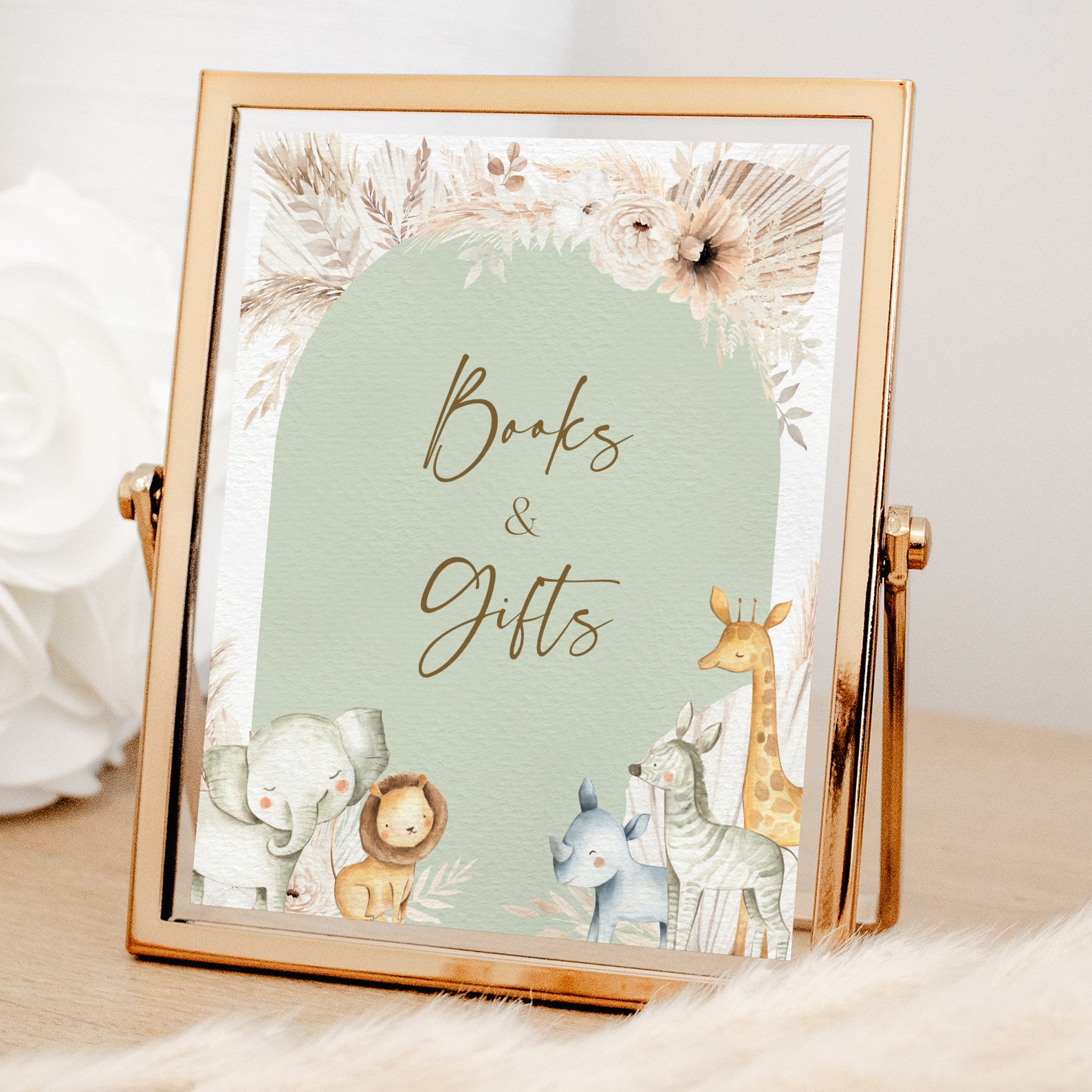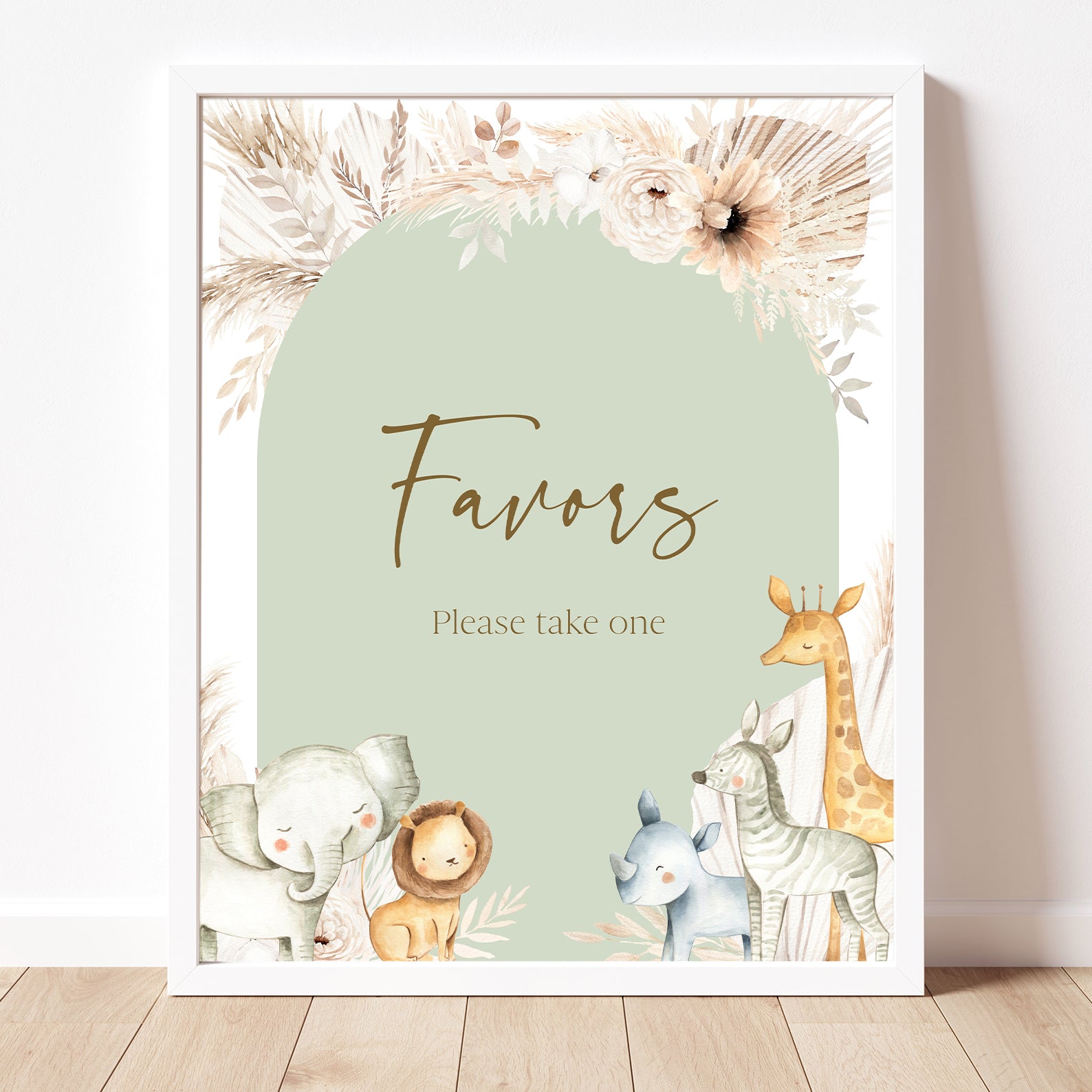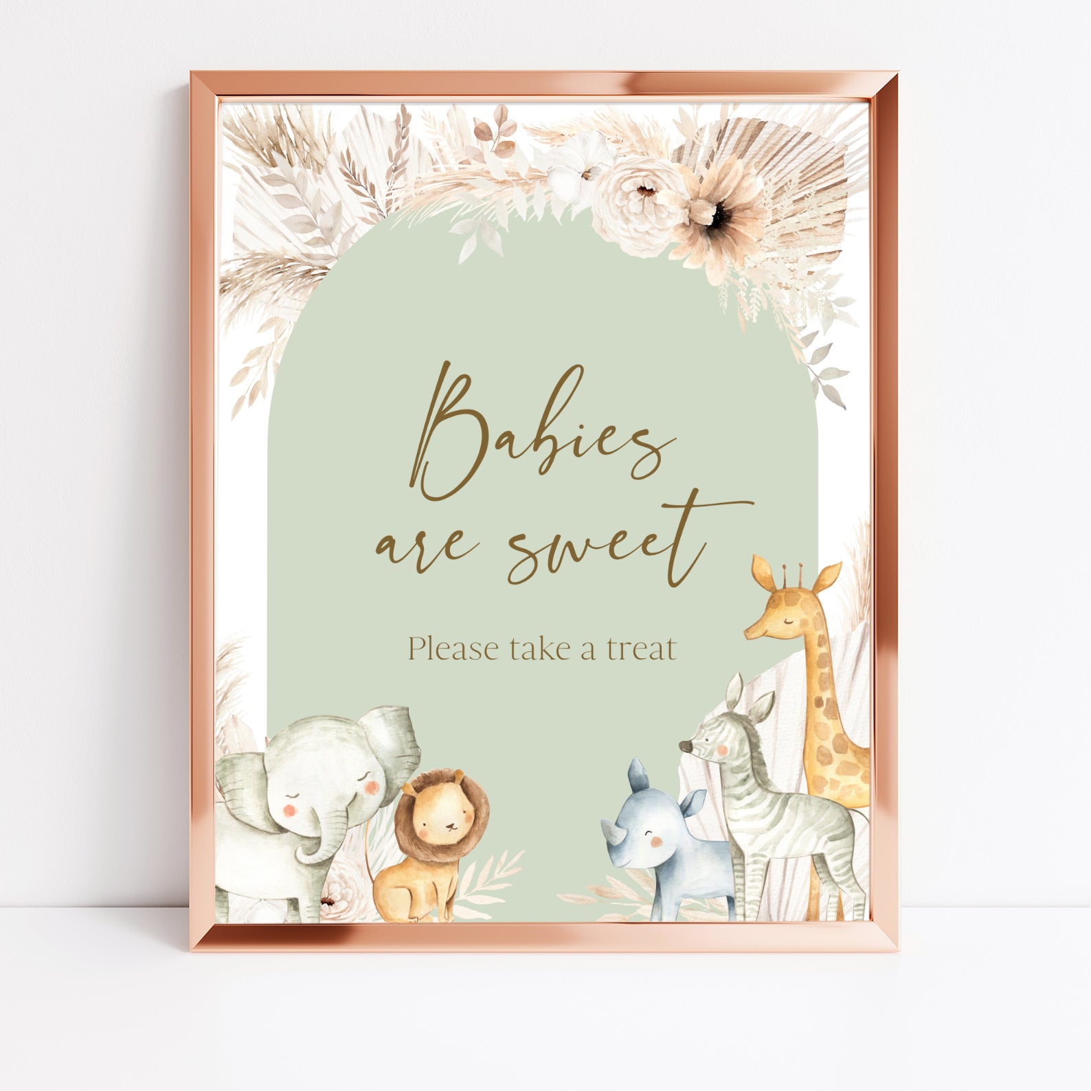 - Purchase this Hello Baby Shower Table Sign with Safari Animals & Florals template