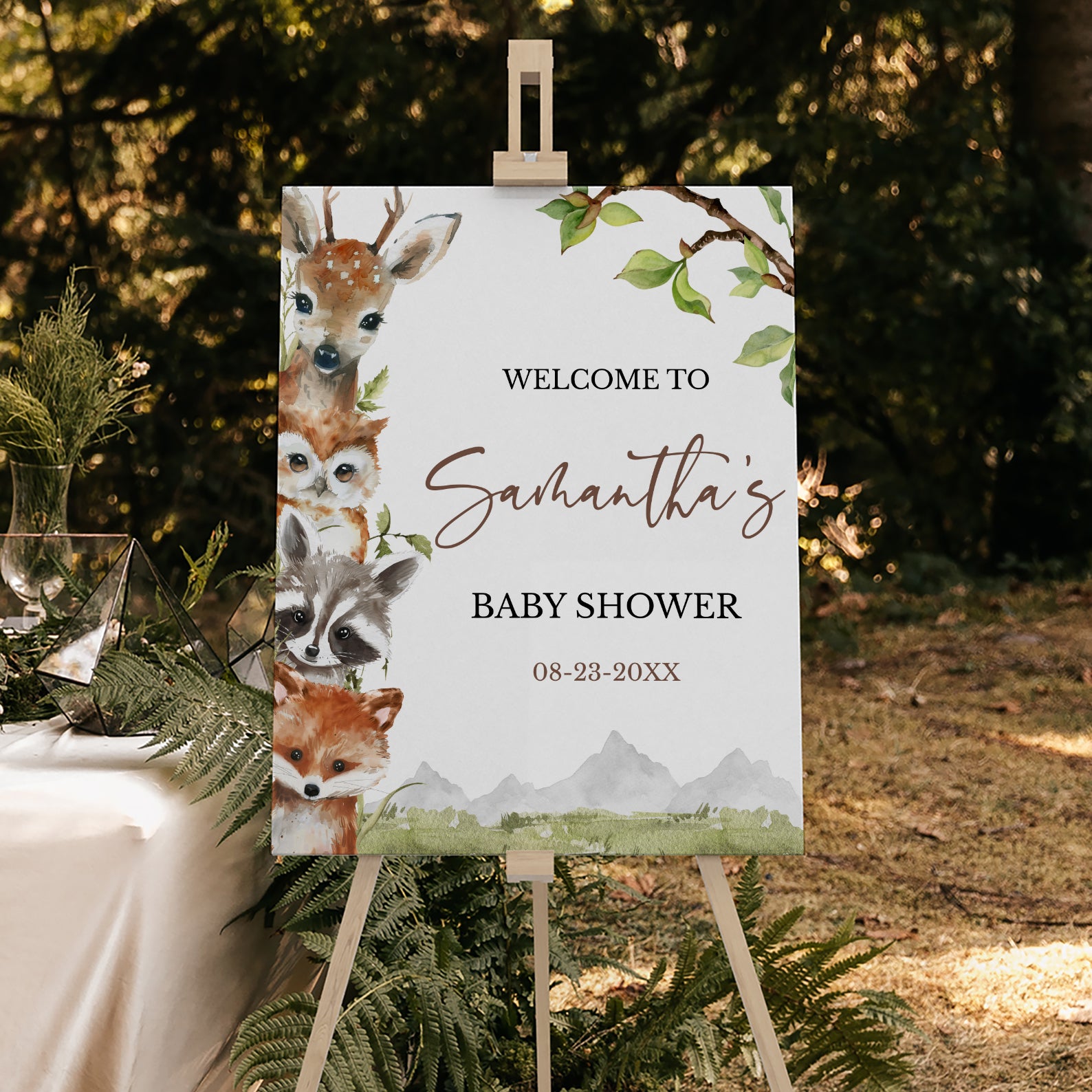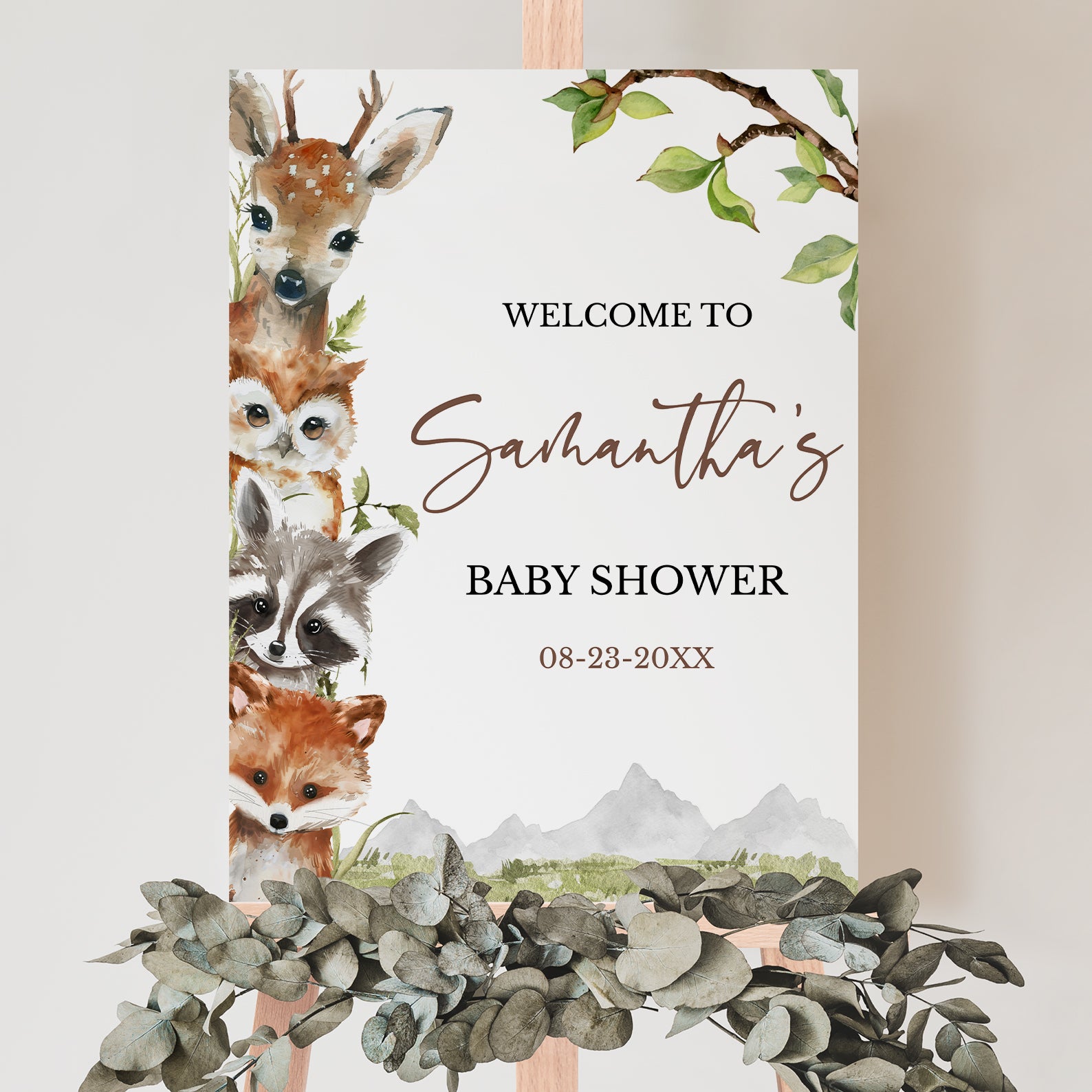 - Purchase this It’s a Boy Safari Baby Shower Welcome Sign with Forest Animals template