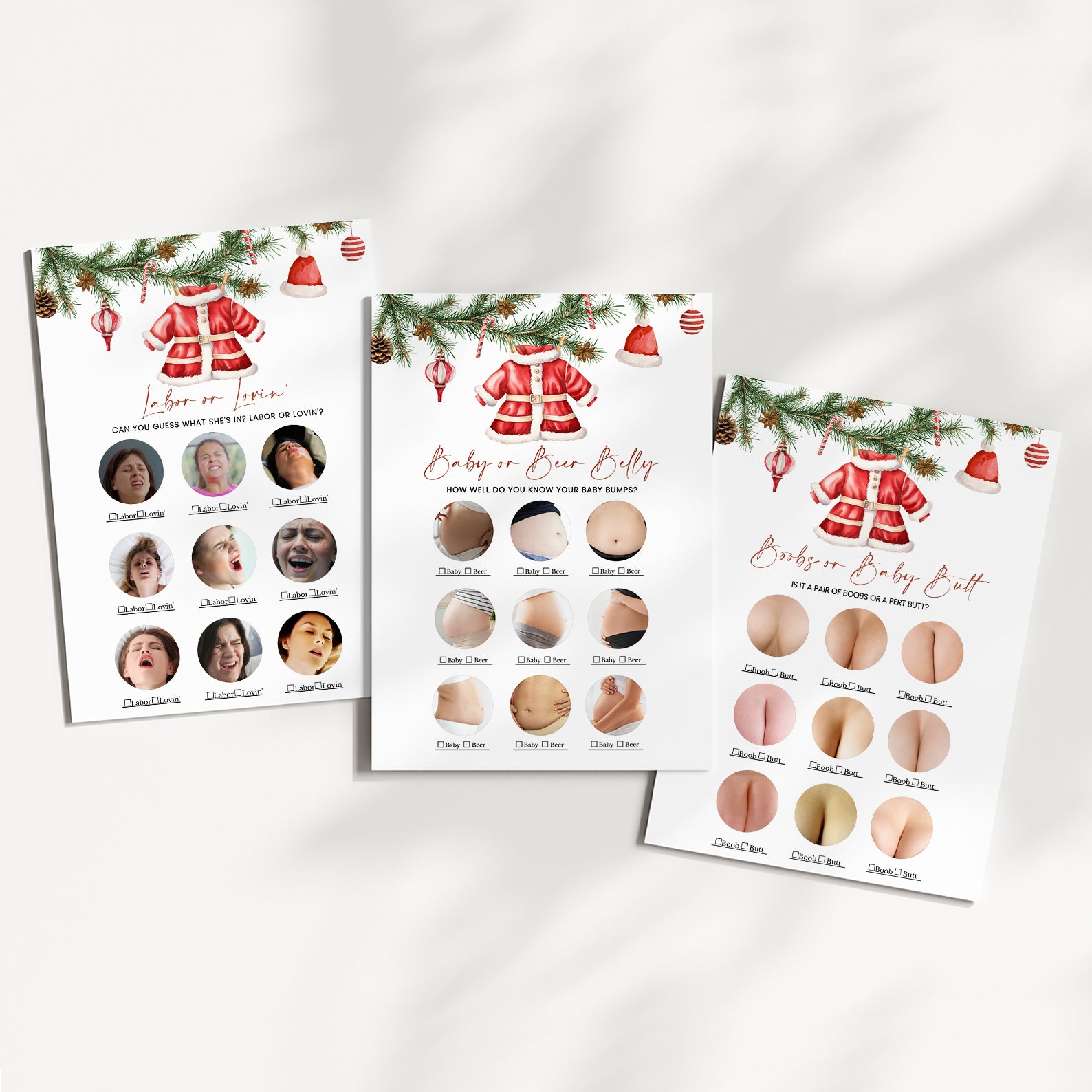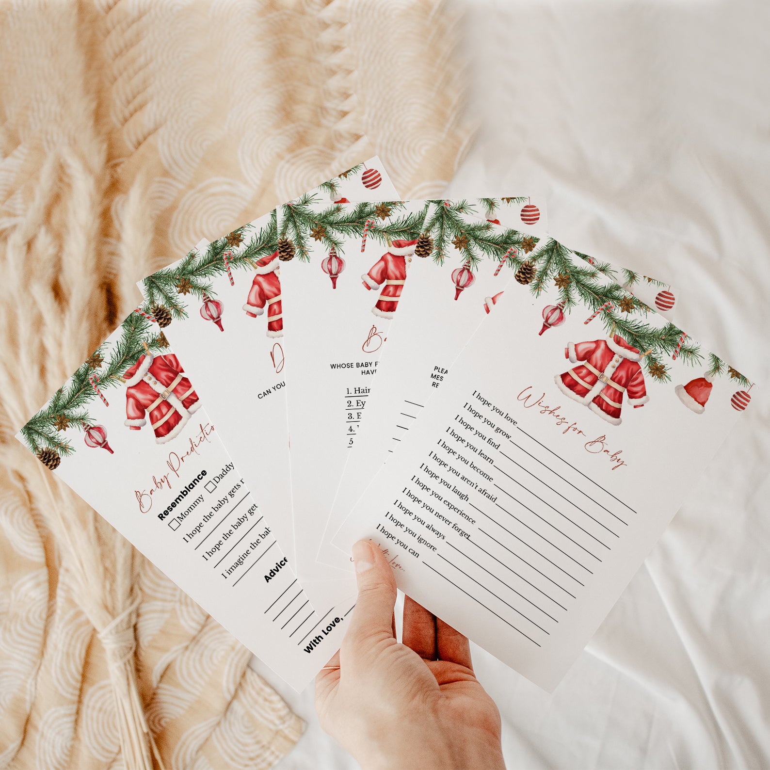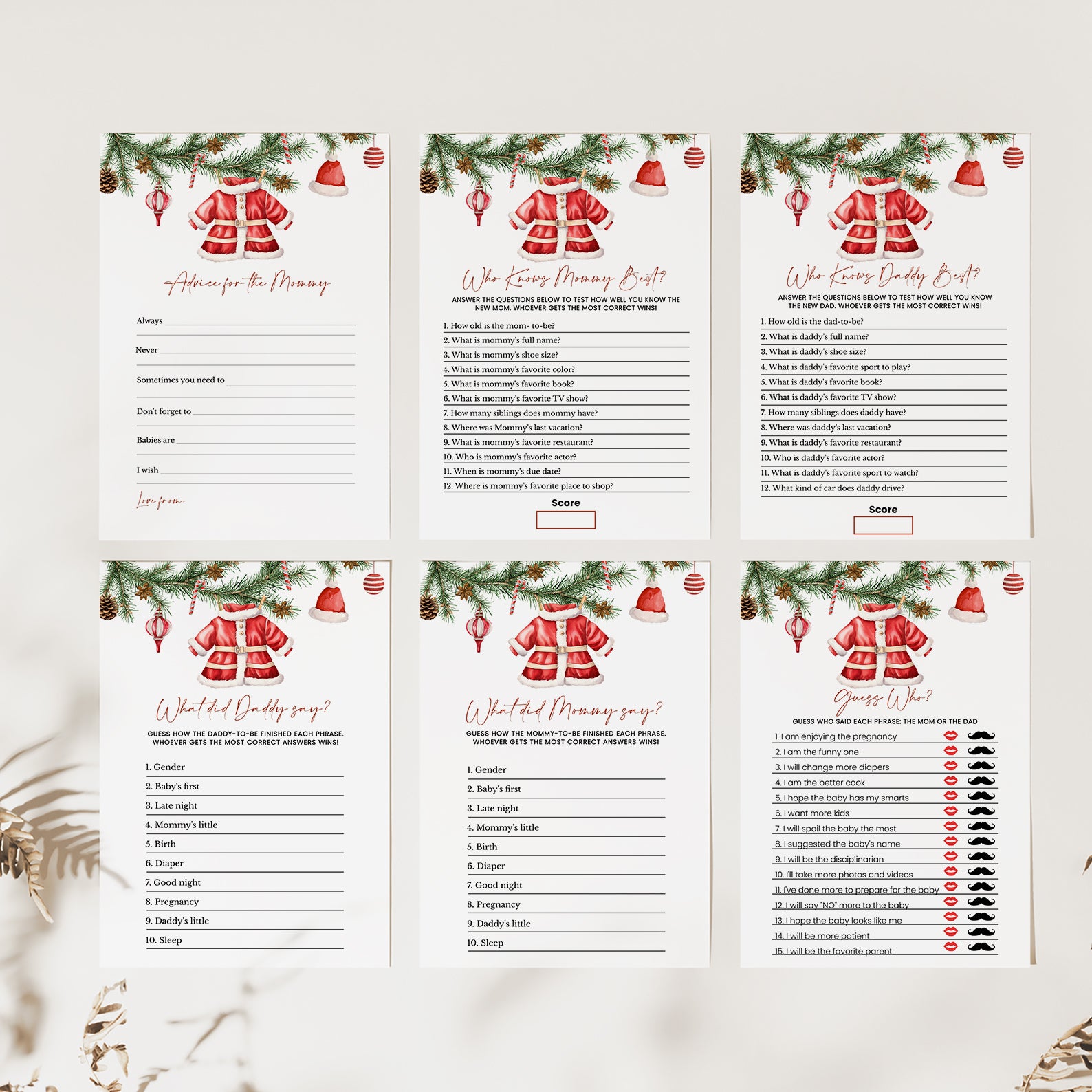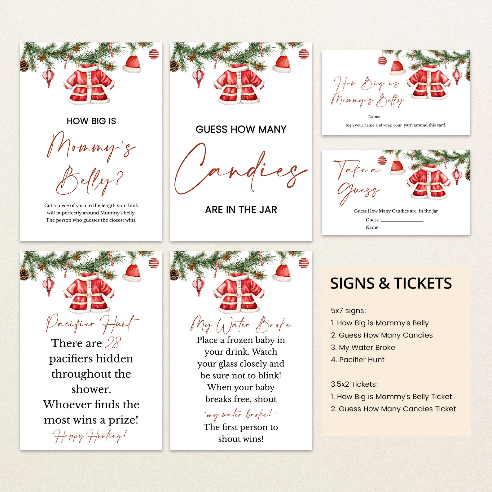 Red Christmas Baby Shower Game Bundle with Santa Outfit