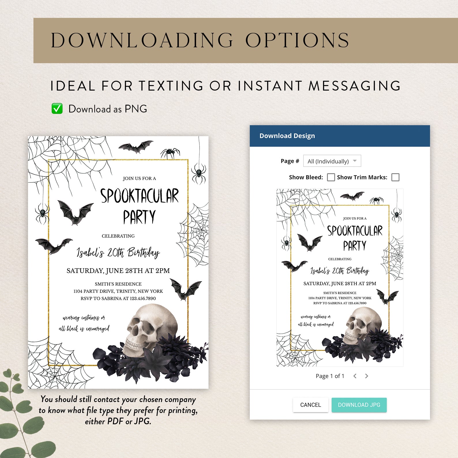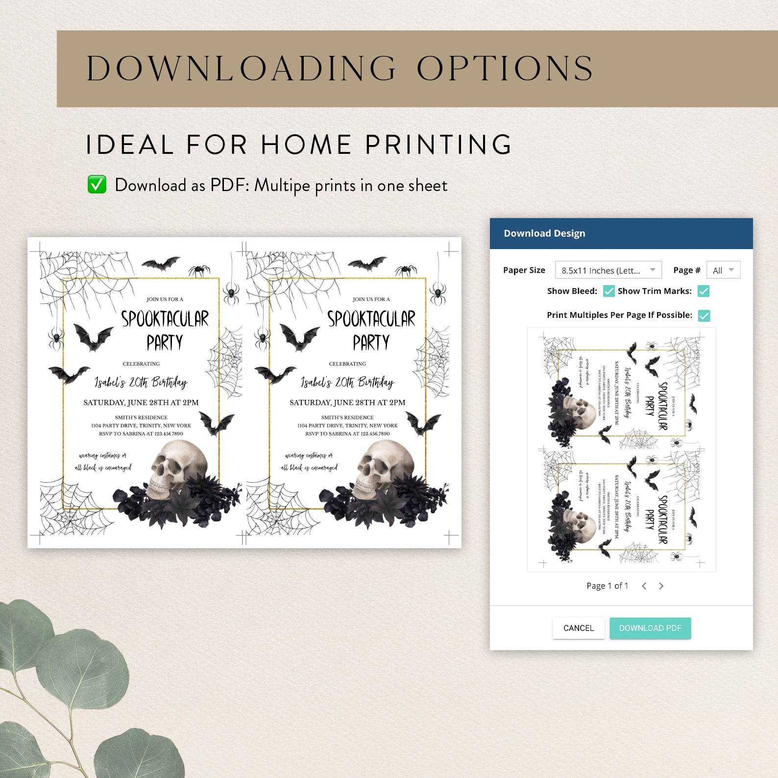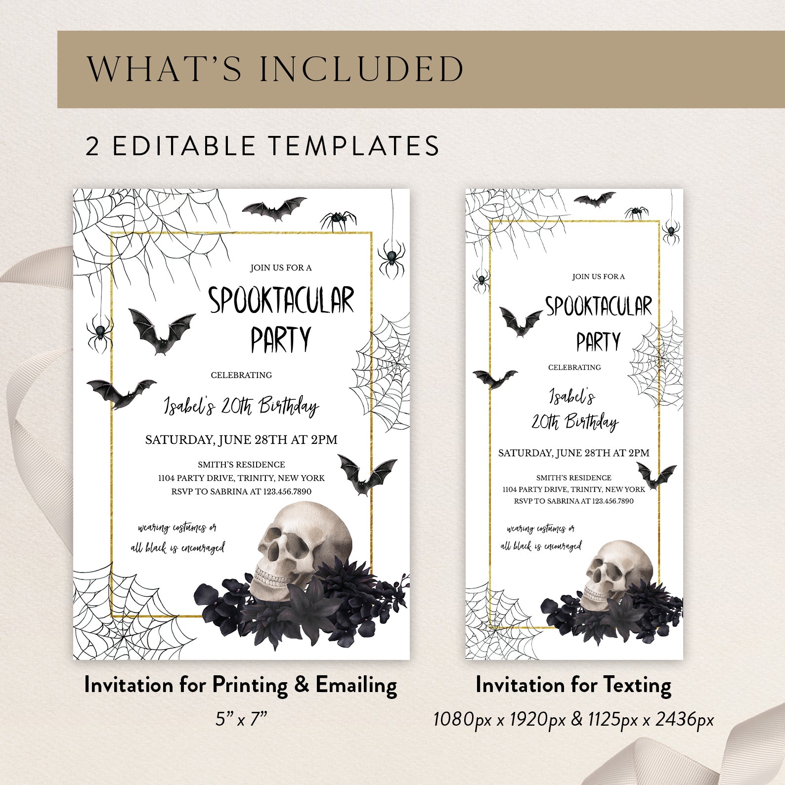 1. Purchase this 20th Birthday Halloween Invite: Skull, Gold & Gothic Theme template