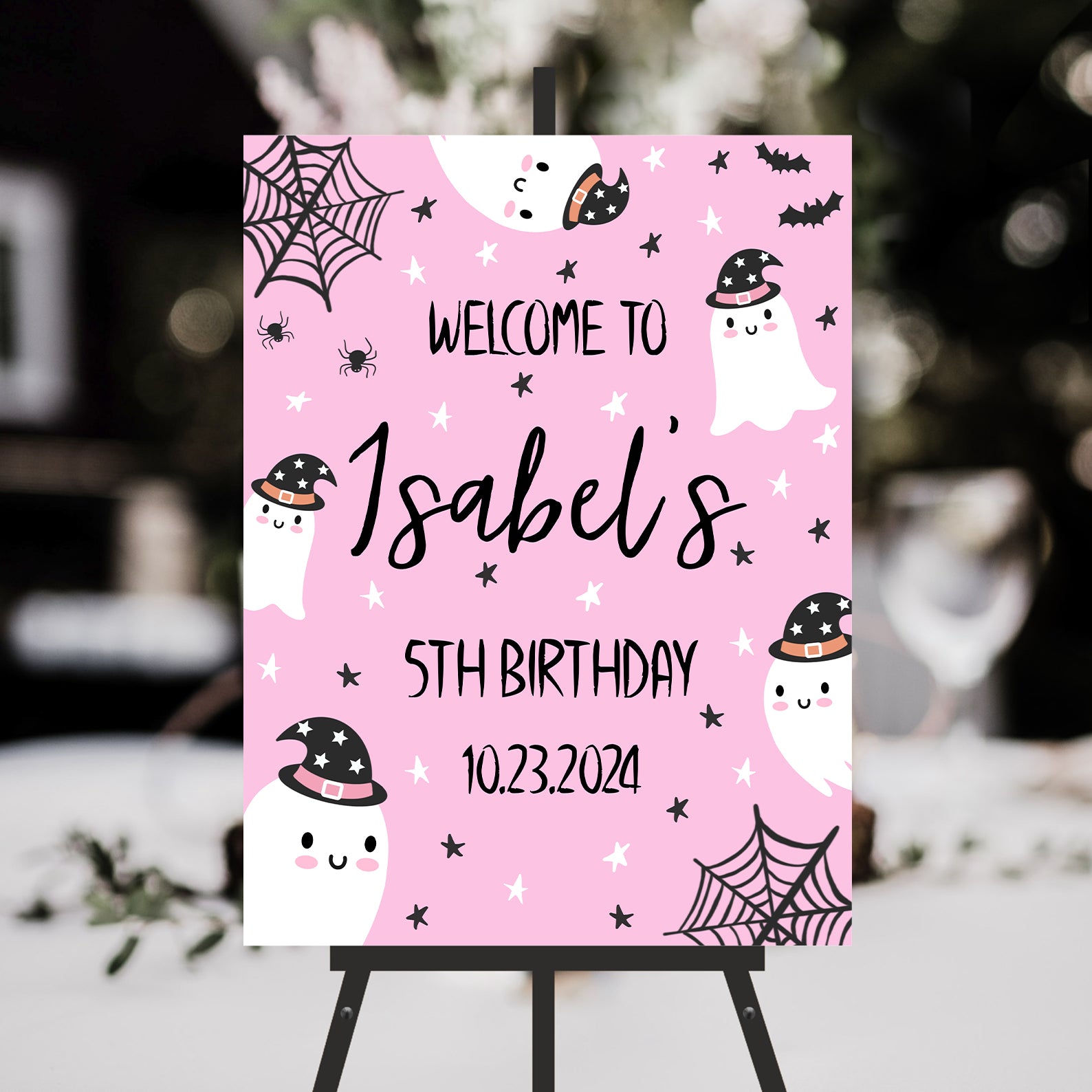 Spooktacular Boo 5th Birthday Welcome Sign: Pink Halloween Theme