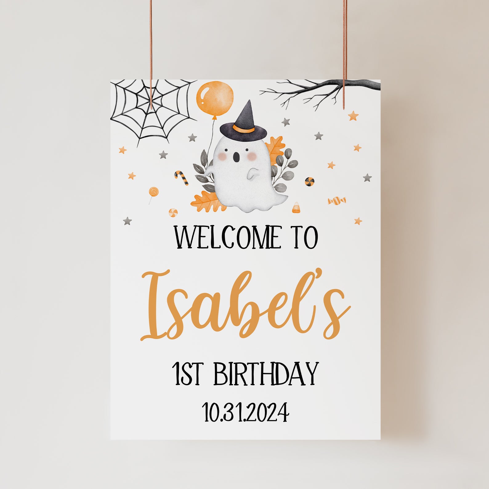 - Purchase this Spooky One 1st Birthday Welcome Sign: Halloween Ghost Theme template