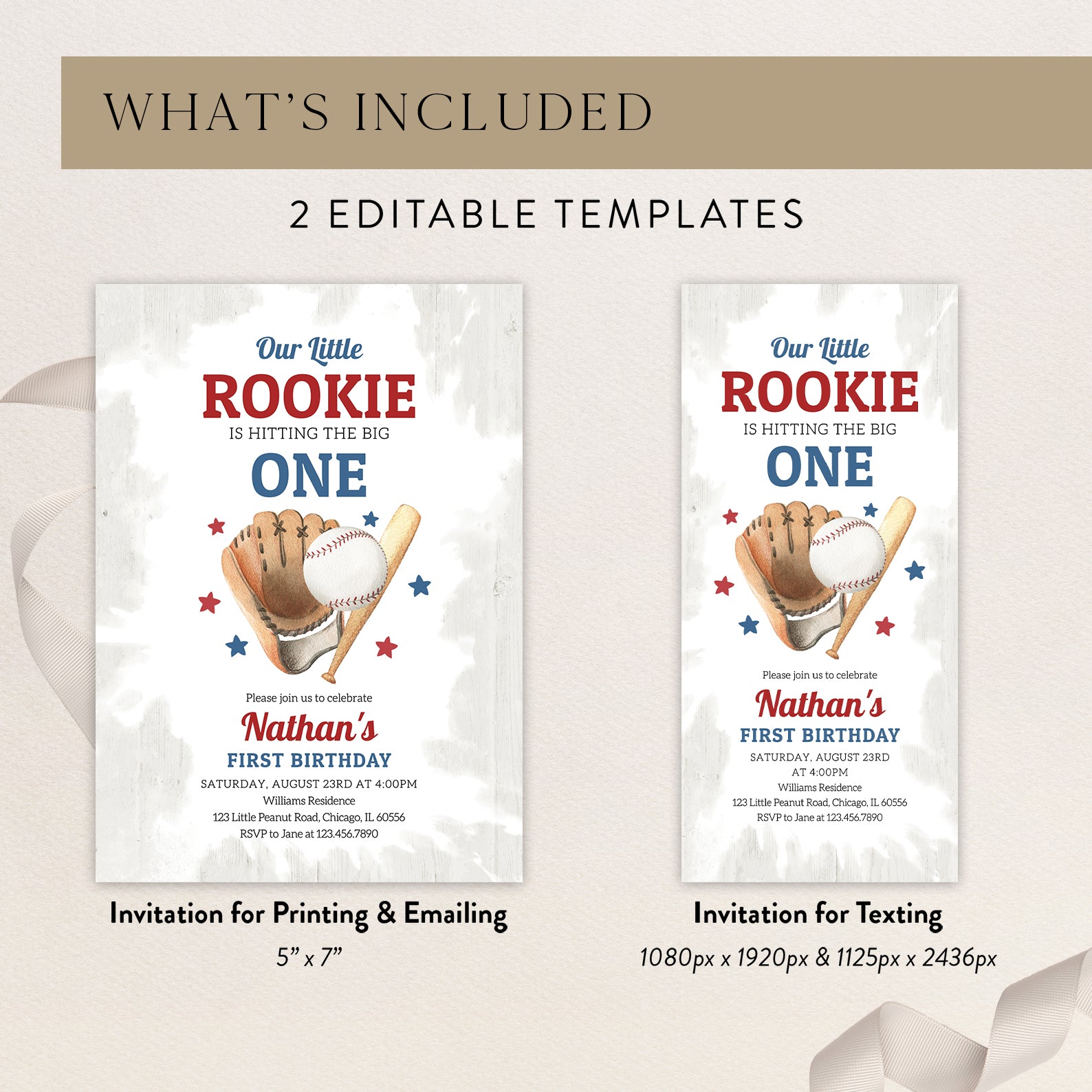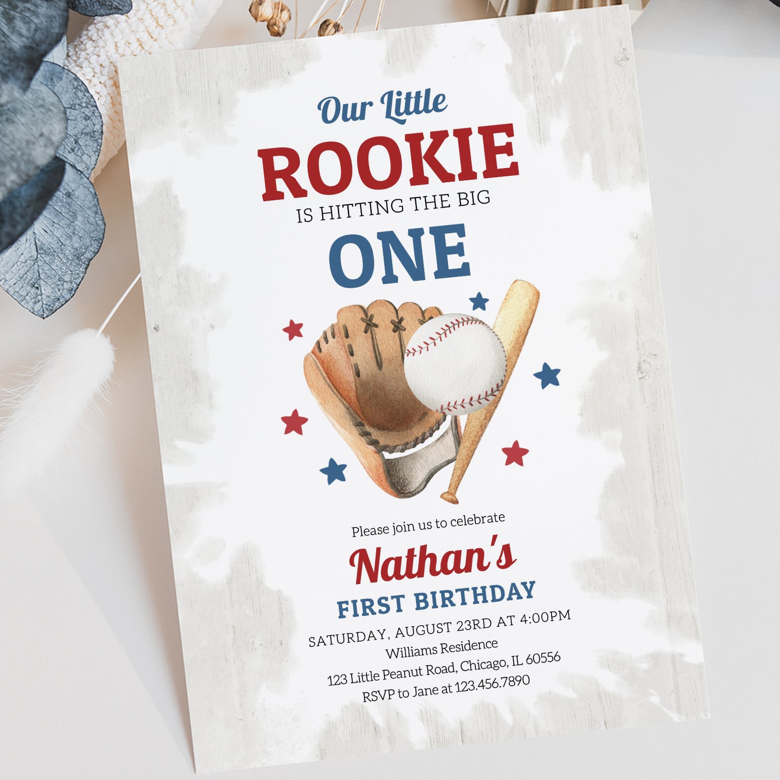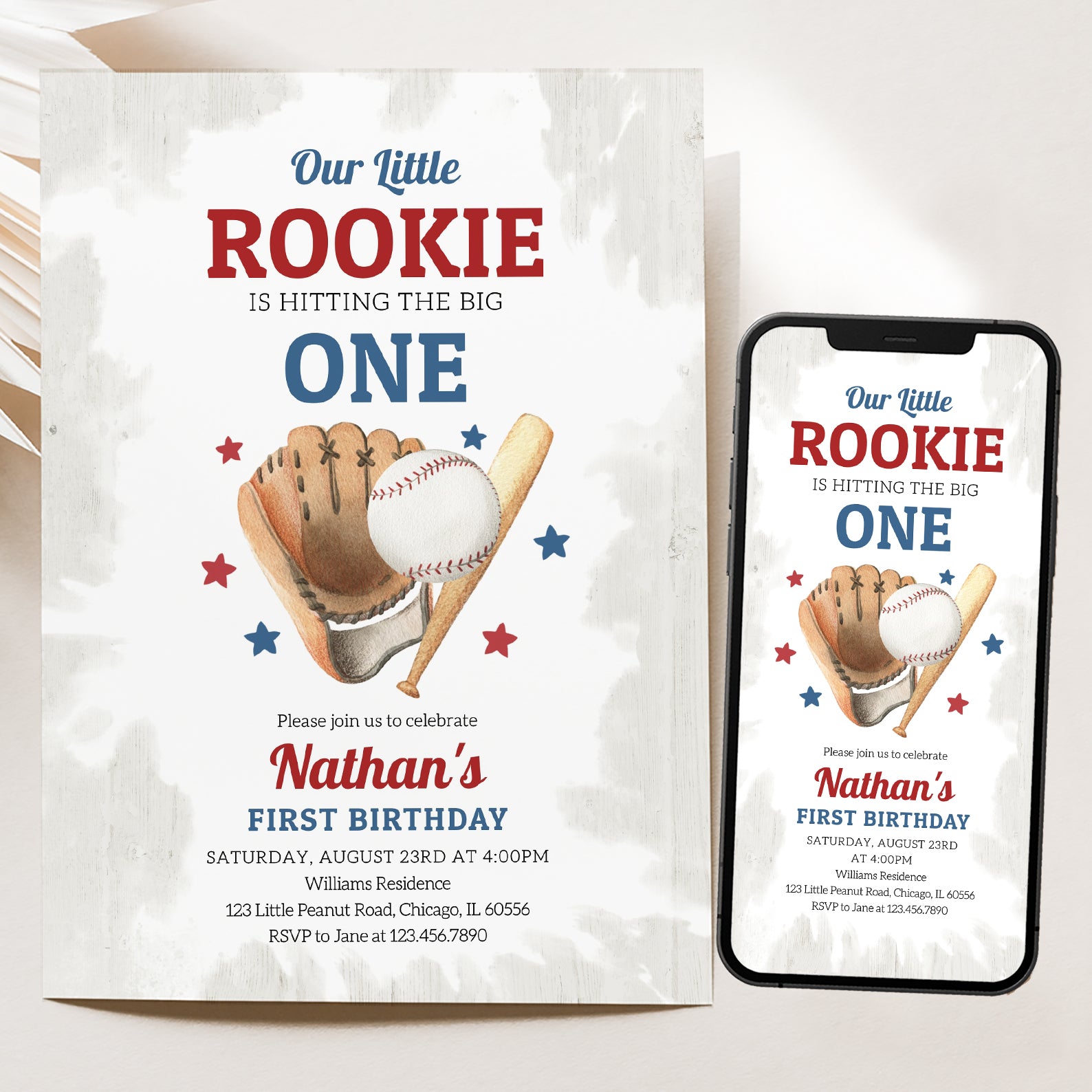 - Purchase this Our Little Rookie is On the Way: Baseball Birthday Digital Invite template