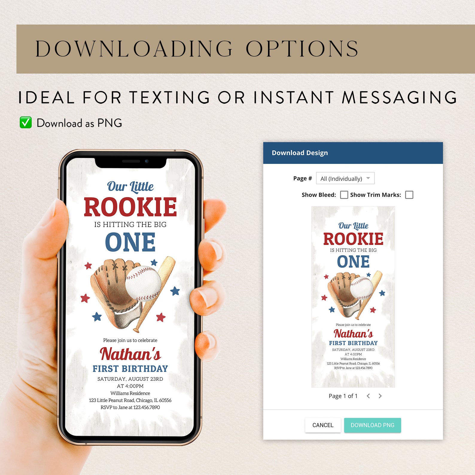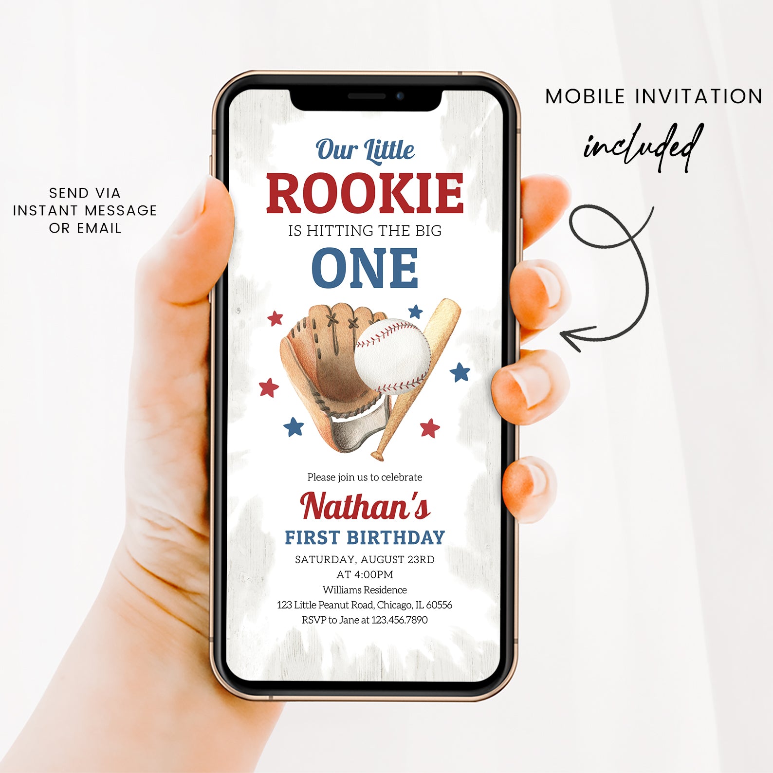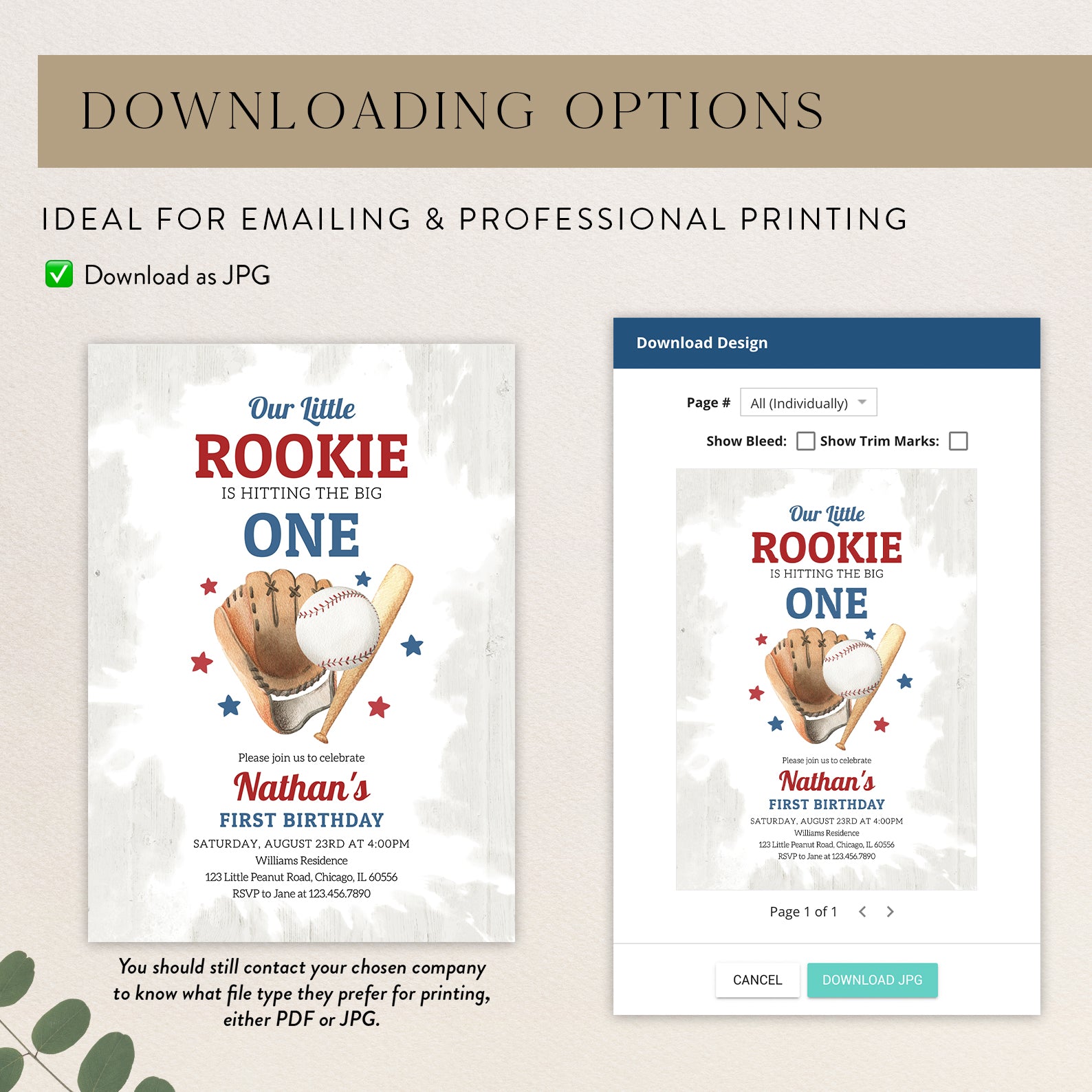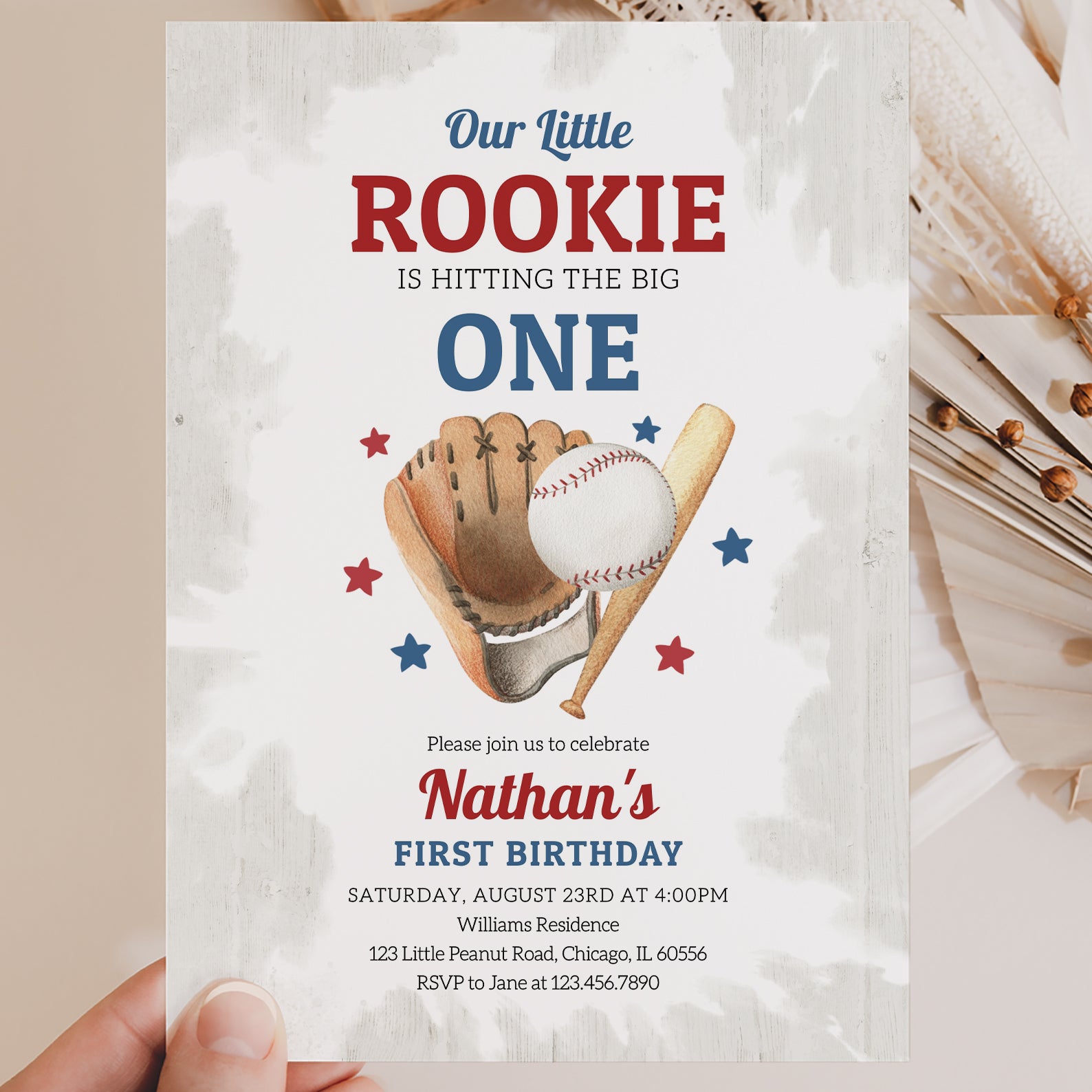 - Purchase this Our Little Rookie is On the Way: Baseball Birthday Digital Invite template