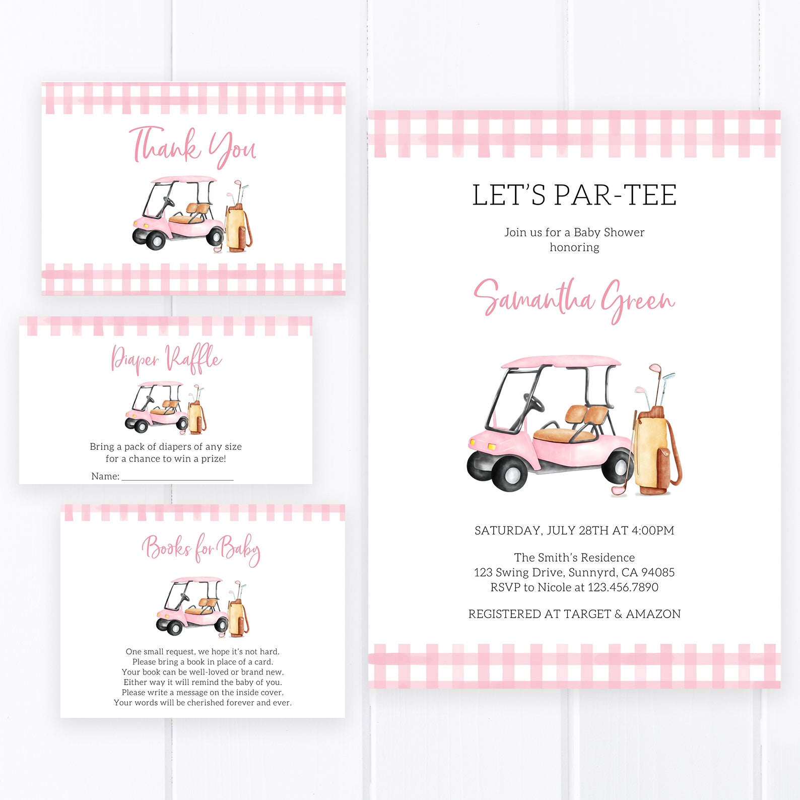 Let's Par-Tee Summer Baby Shower Invitation Bundle with Golf Cart
