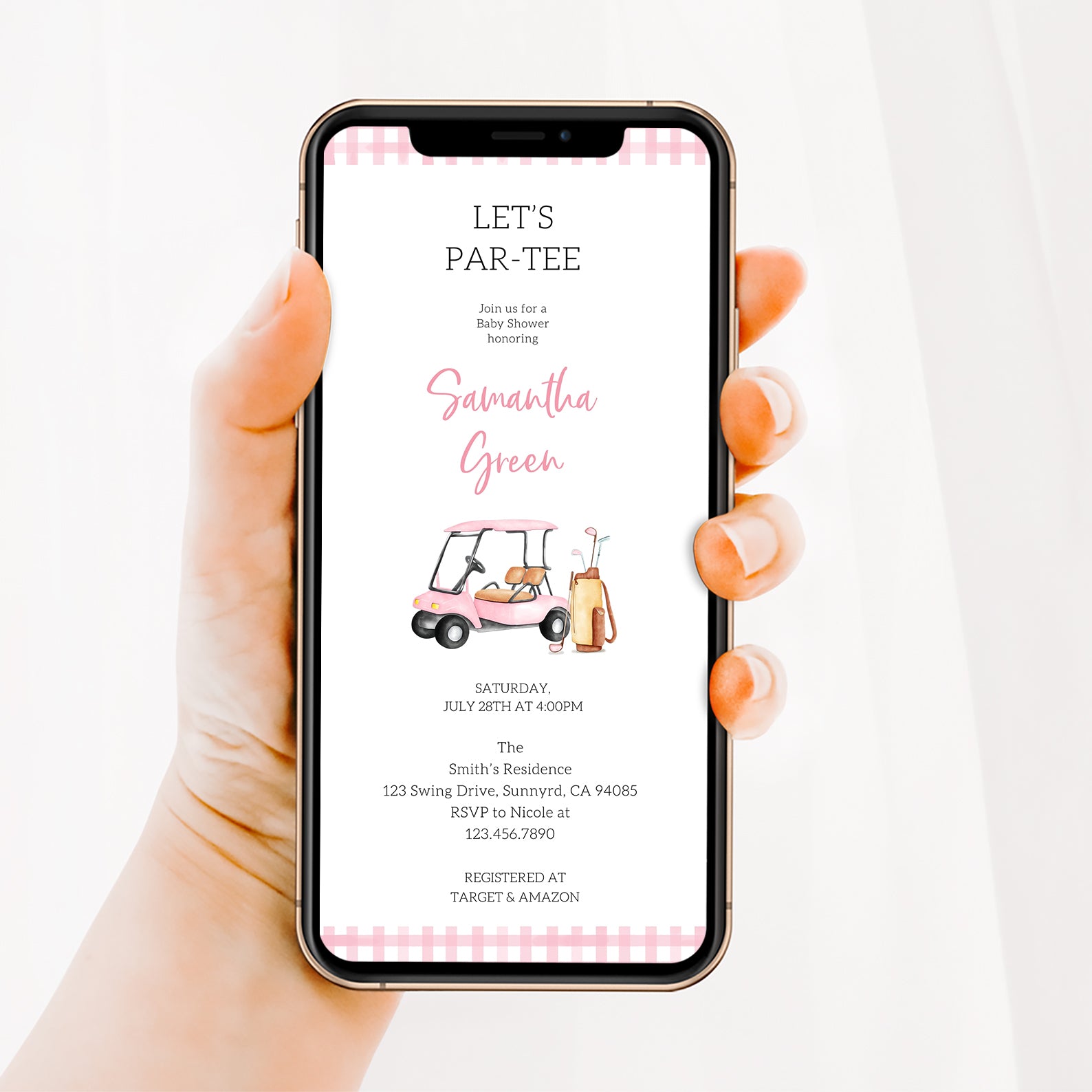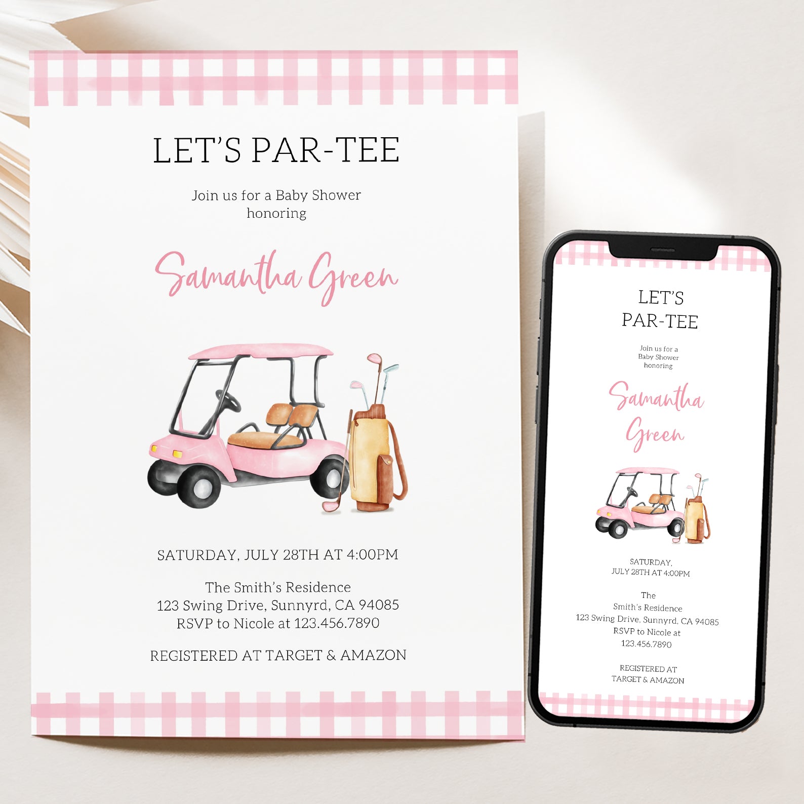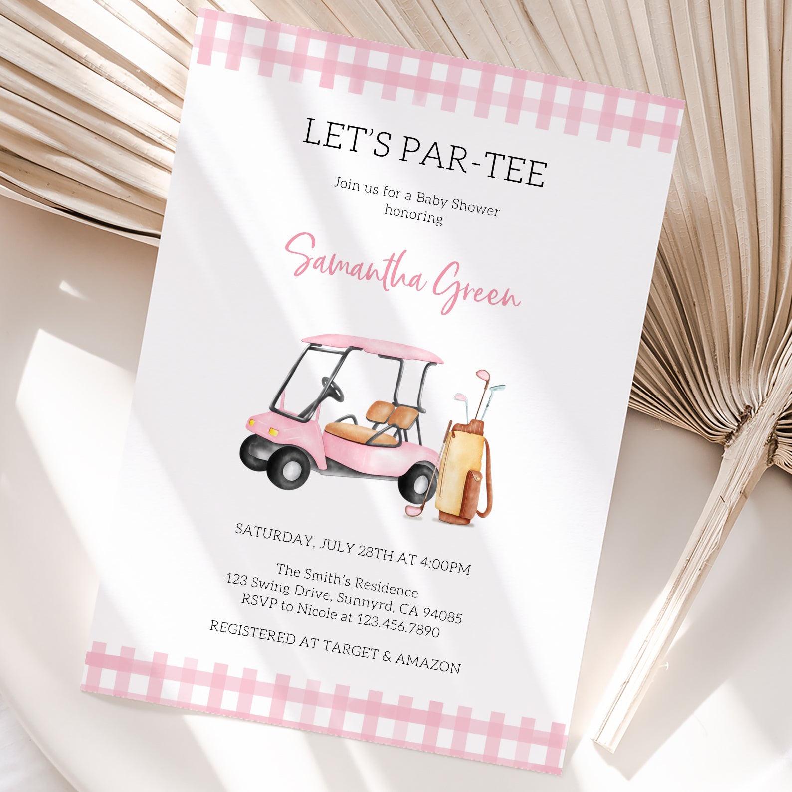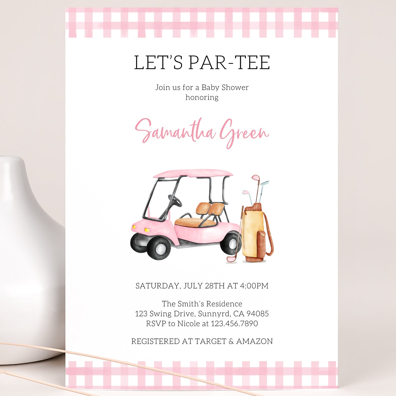 - Purchase this Let's Par-Tee Summer Baby Shower Invitation with Golf Cart template