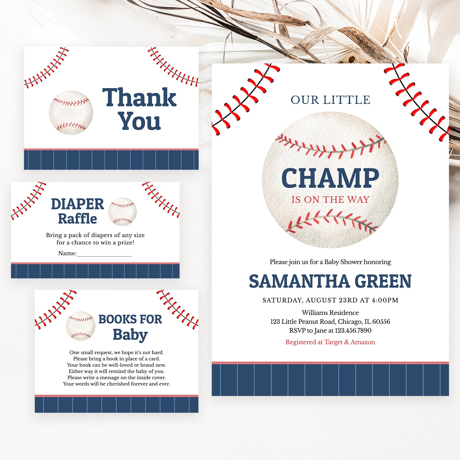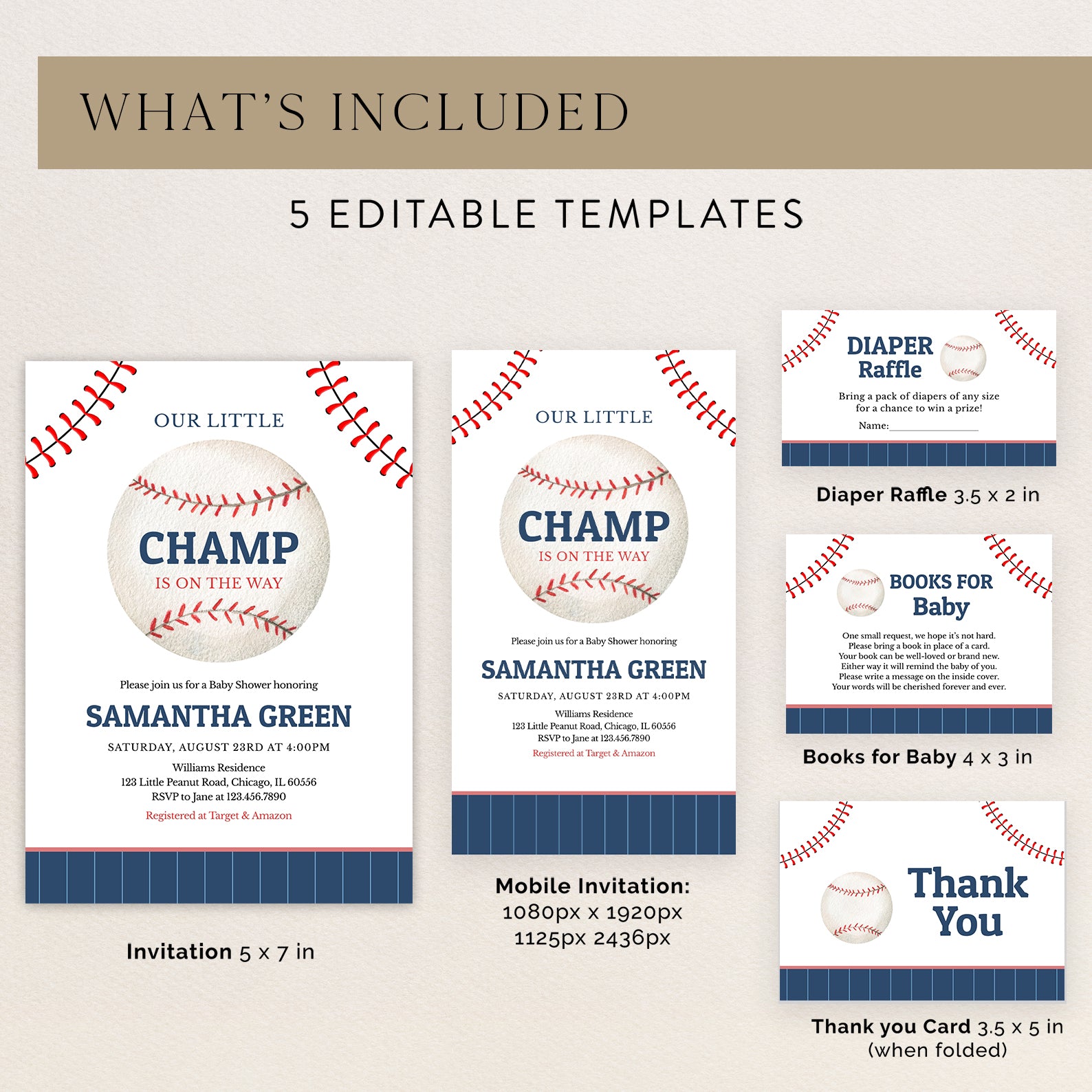 - Purchase this Our Little Champ Baby Shower Digital Invite Bundle: Baseball Theme template