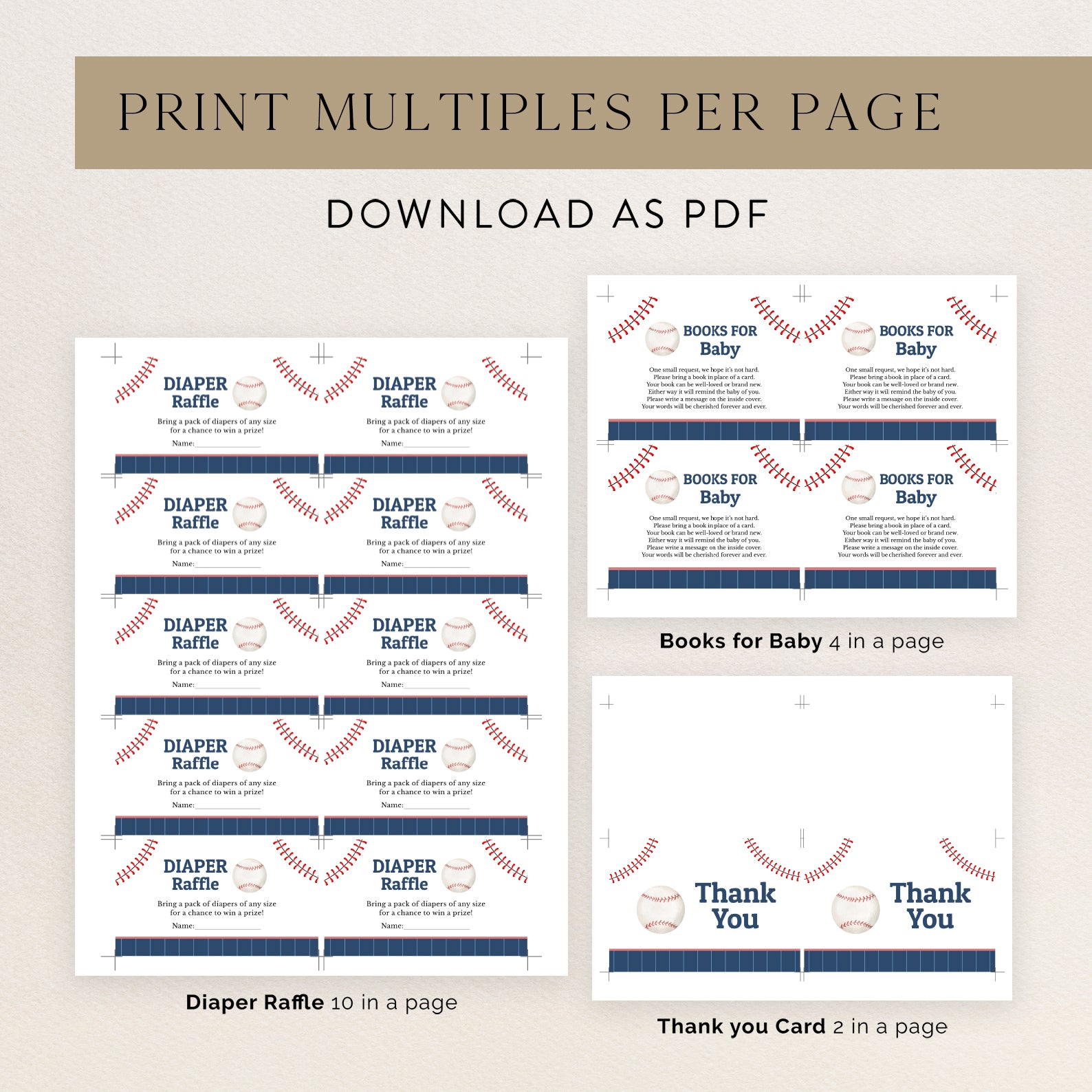 Celebrate your little slugger with this baseball-themed baby shower bundle! Featuring a blue design with baseball stitches, a central ball, and a stylish grid, this set includes a digital and mobile invitation, diaper raffle, books for baby card, and thank you card. Easy to customize and perfect for sharing all your special event details with family and friends.