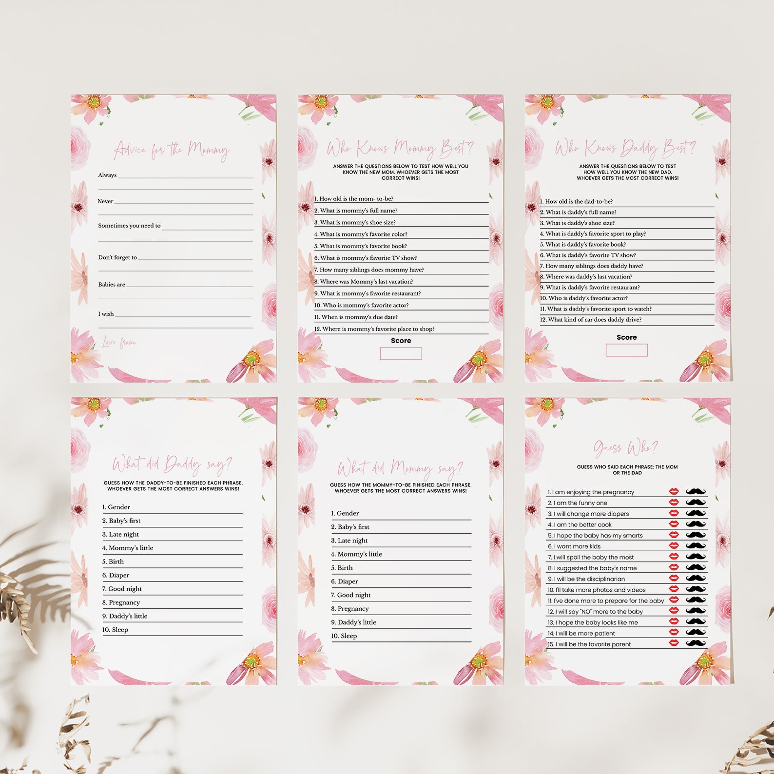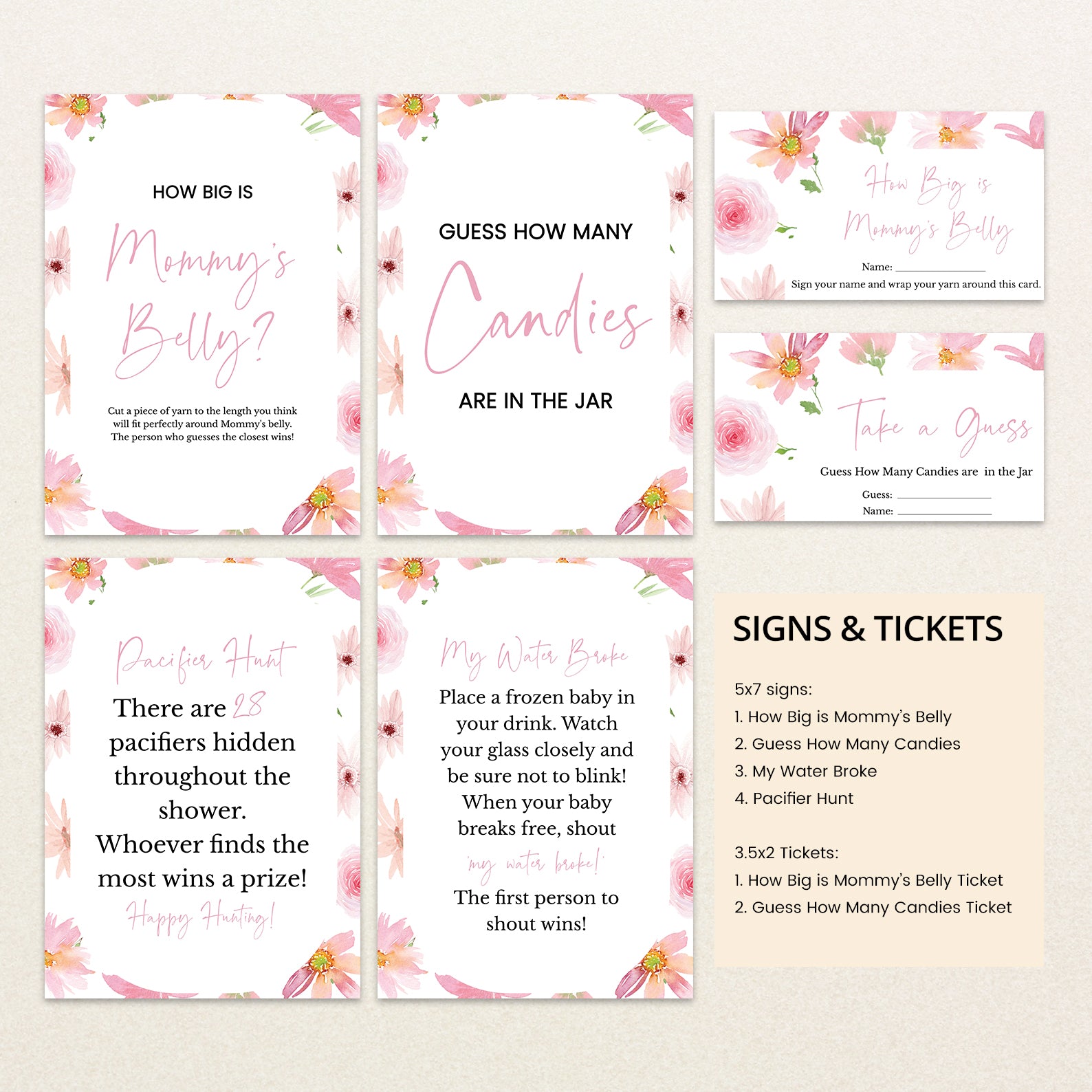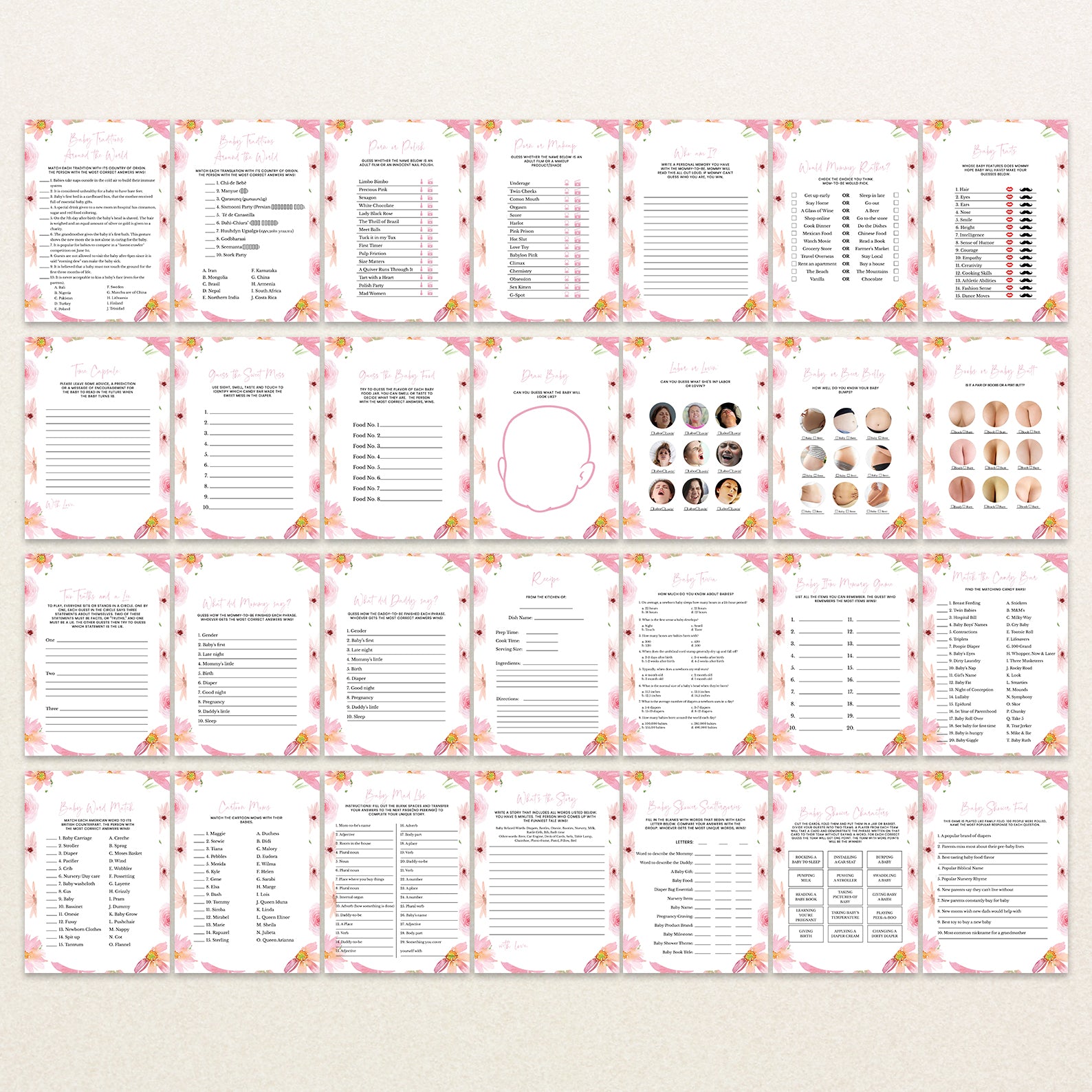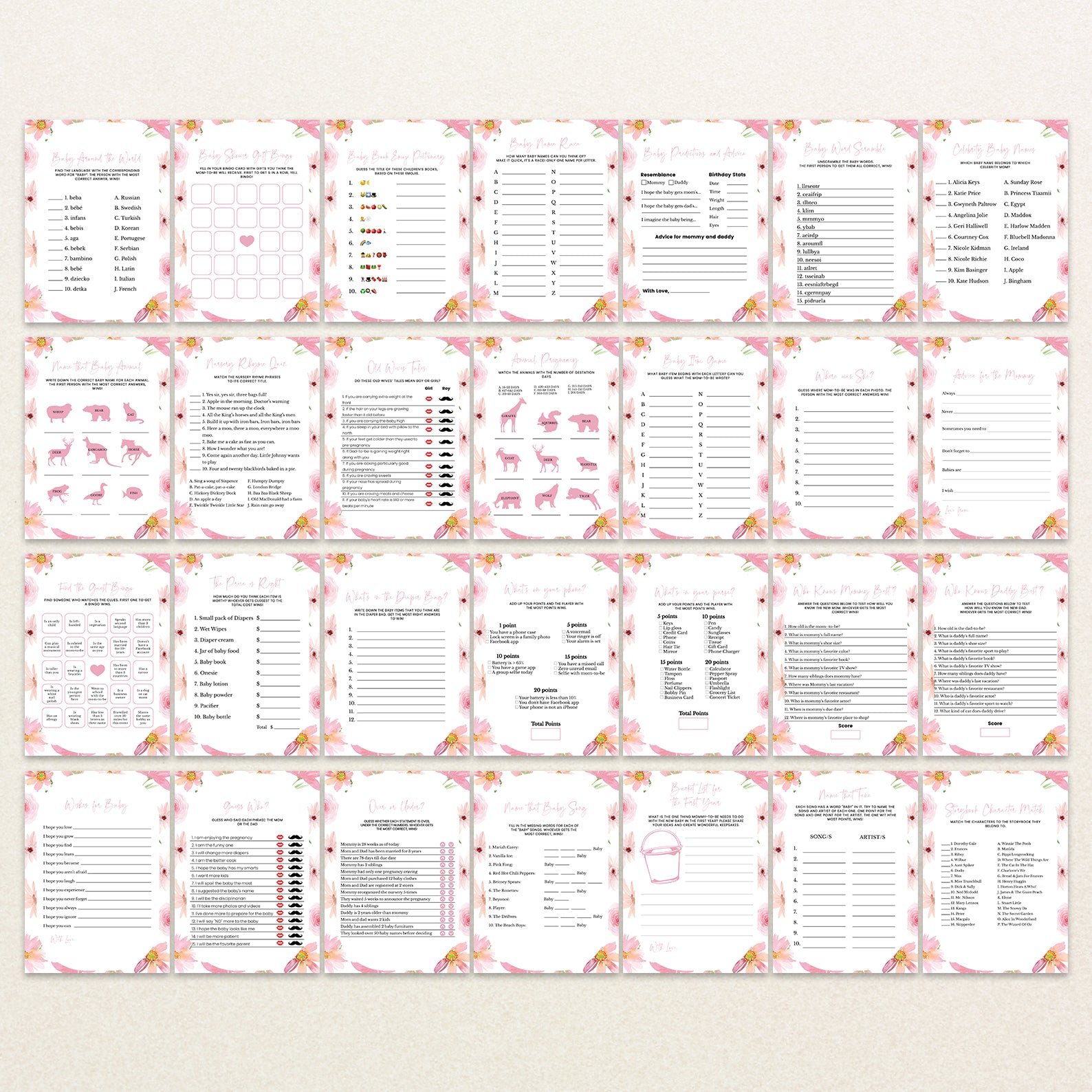 Add a touch of elegance and charm to your celebration with this delightful bundle of 60 editable baby shower games, designed to perfectly complement your watercolor floral-themed invitation. Featuring soft pink tones, delicate floral designs, and a serene atmosphere, this collection brings a sense of tranquility and joy to your event. Fully customizable, each game is easy to personalize, ensuring your guests have a fun and memorable time. Whether you're hosting an intimate gathering or a larger celebration, this bundle sets the perfect tone for a beautiful and blooming baby shower.