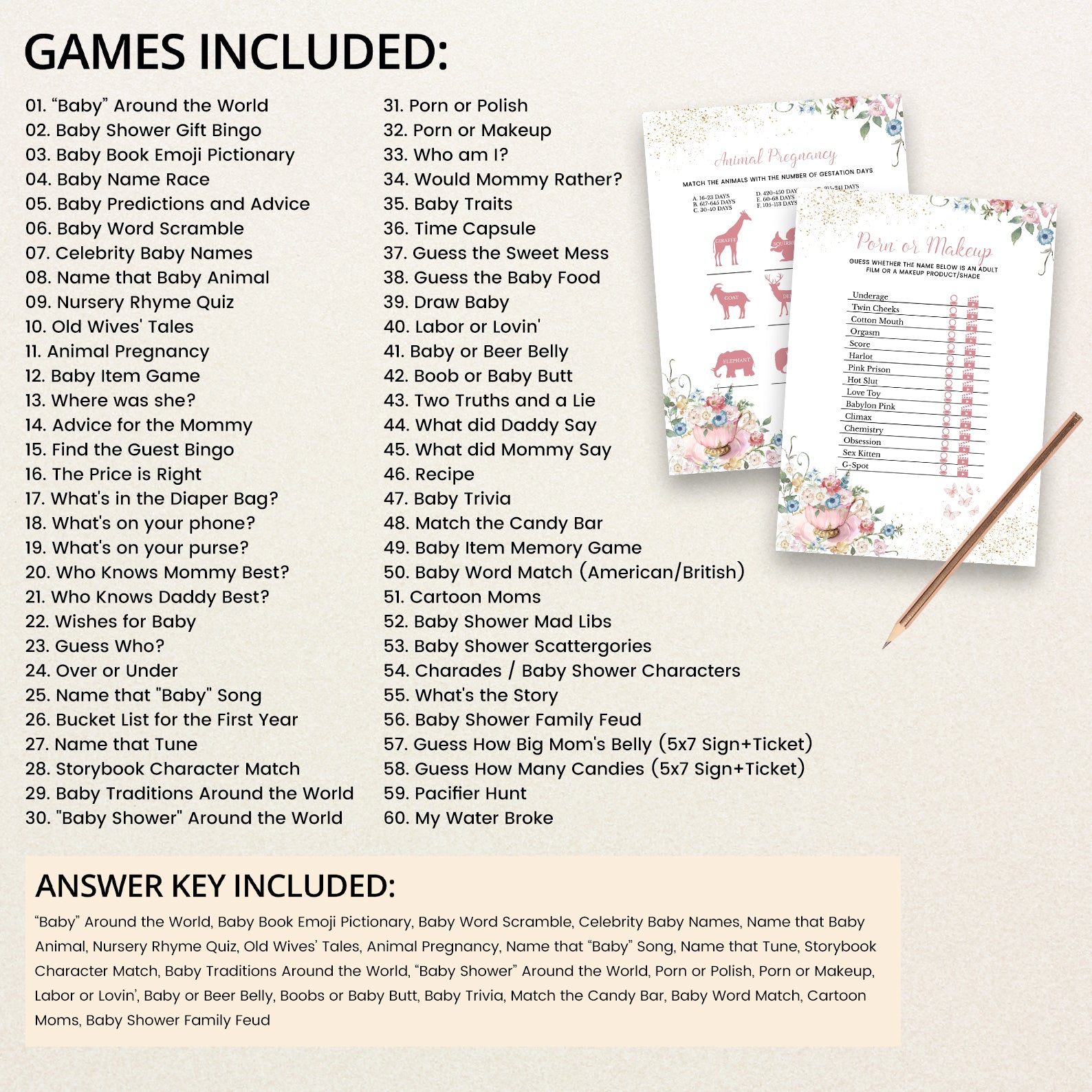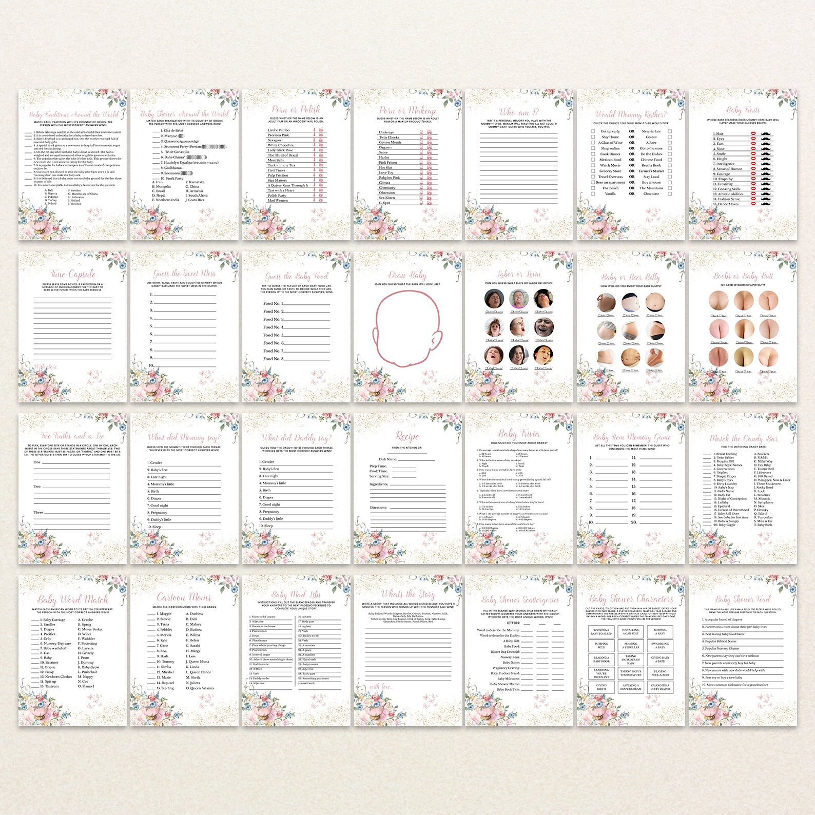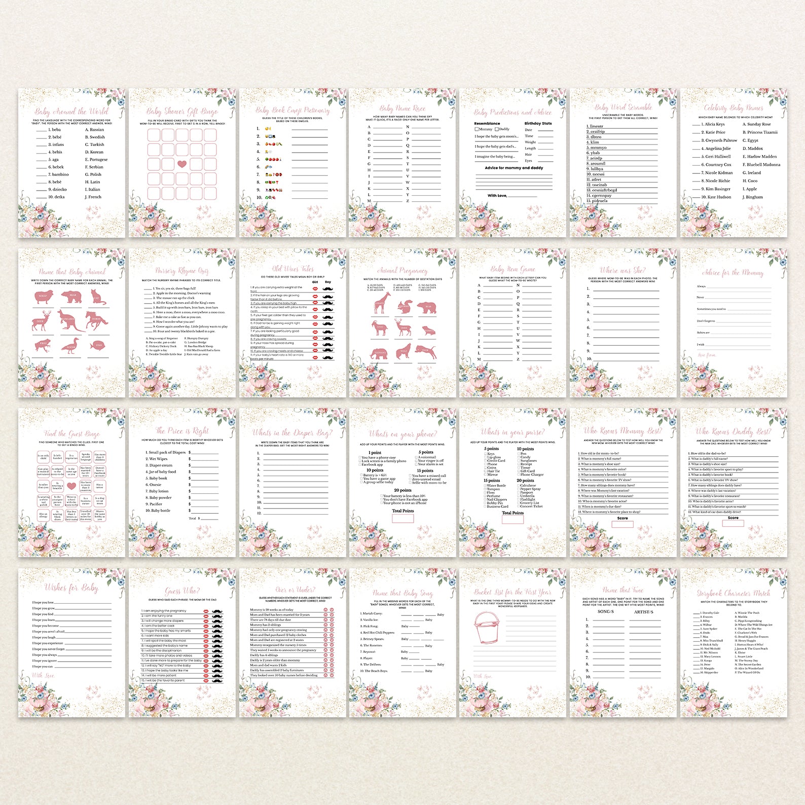 A Baby is Brewing: Spring Floral Baby Shower Digital Game Bundle
