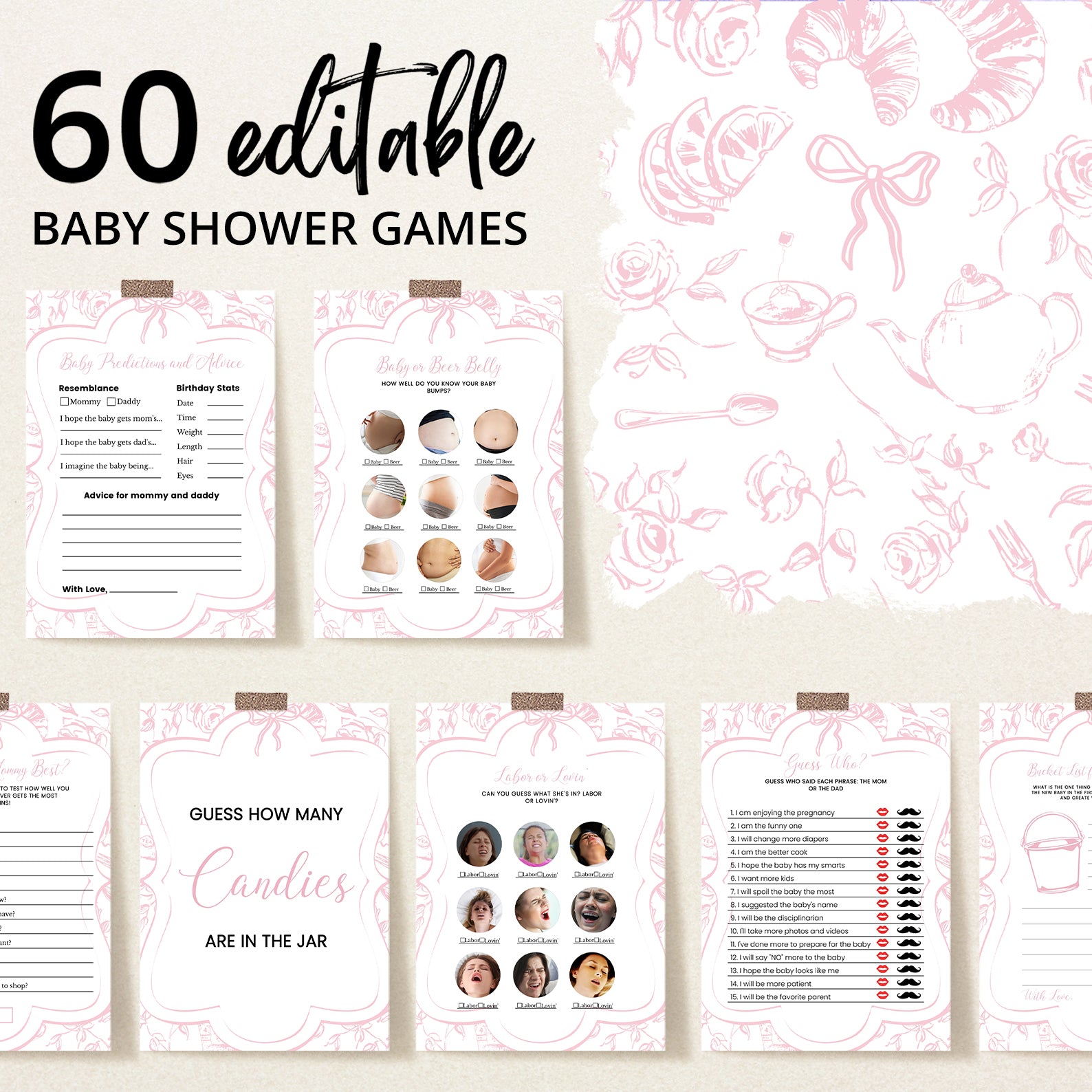 - Purchase this Pink Tea Party Baby Shower Game Bundle with Floral Accents template
