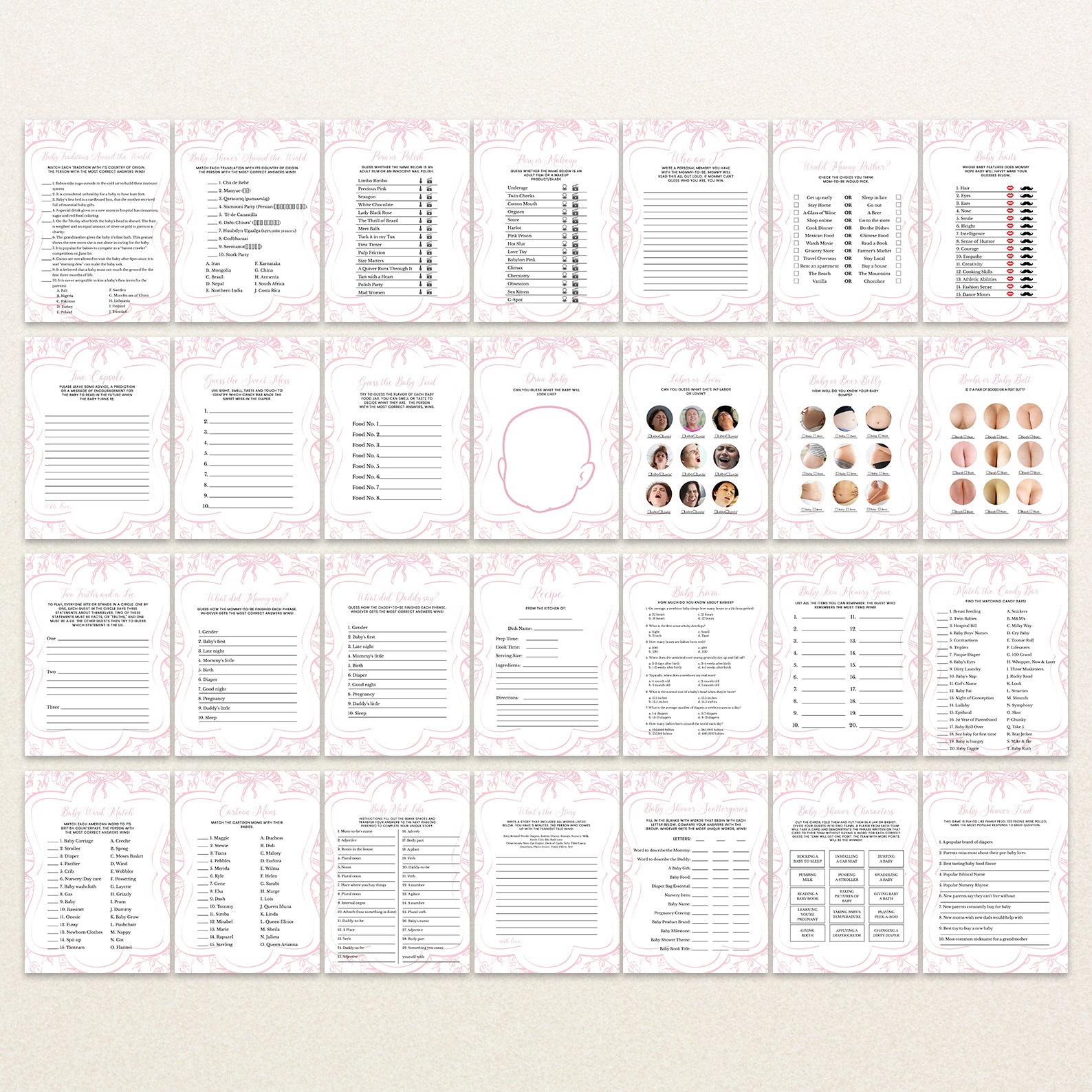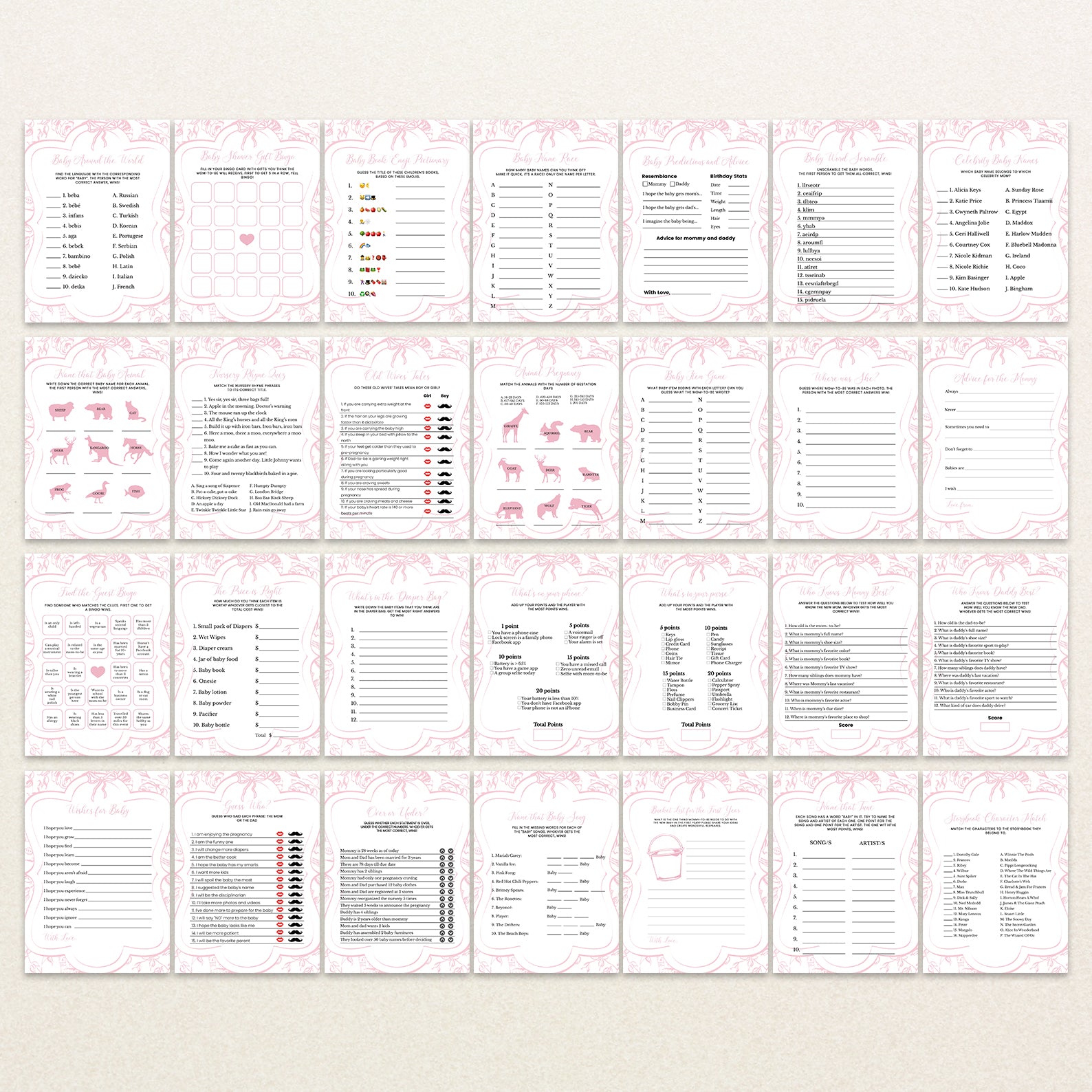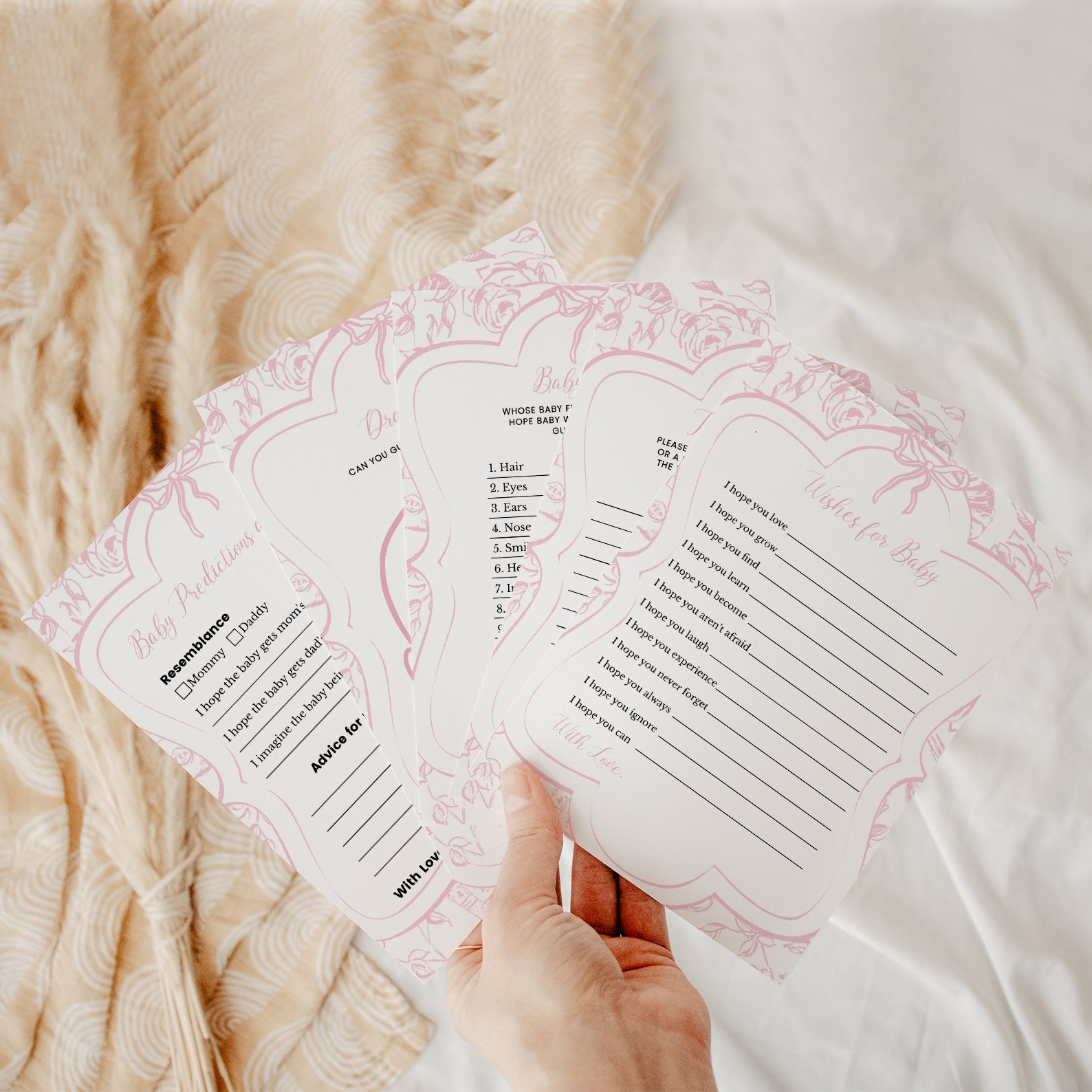 Pink Tea Party Baby Shower Game Bundle with Floral Accents