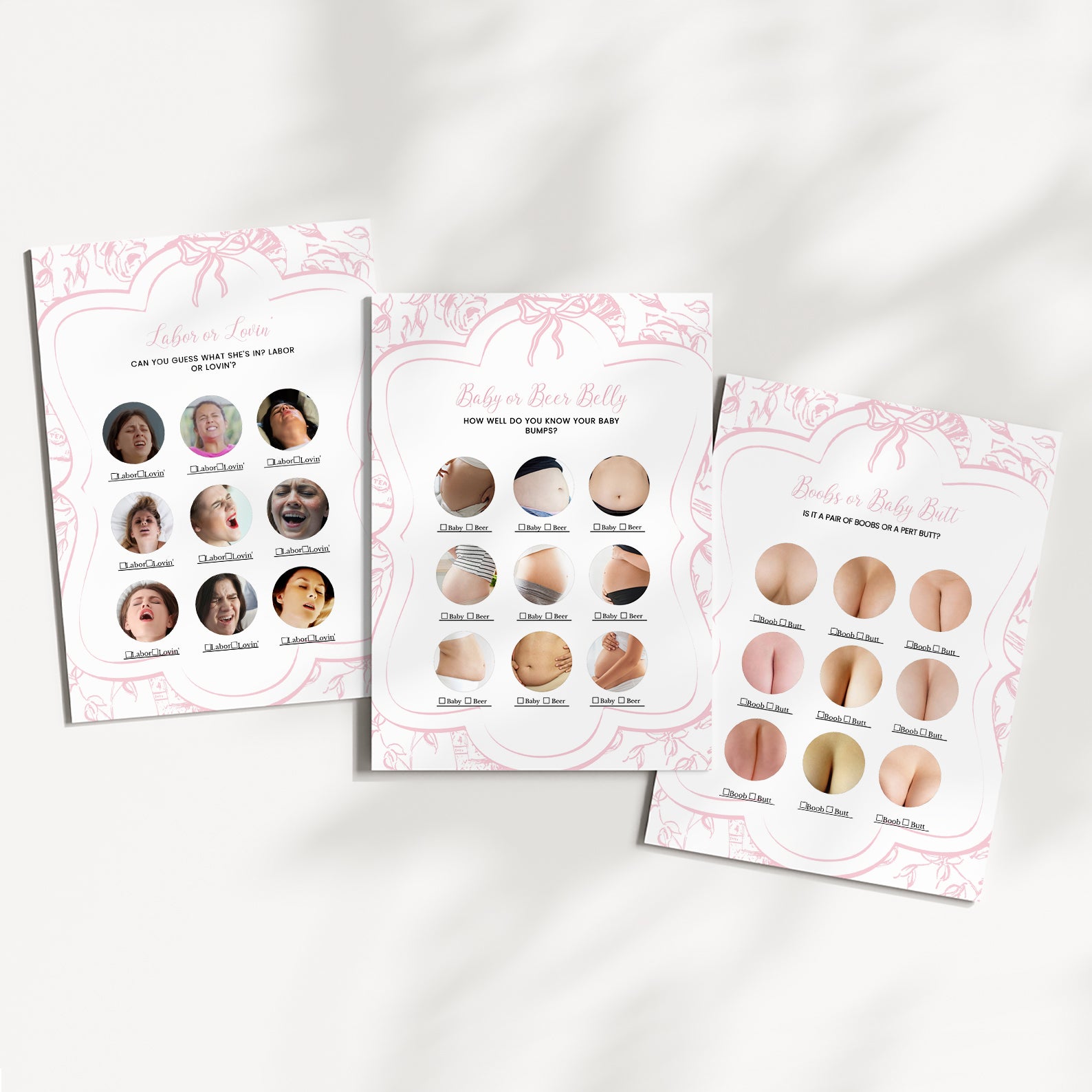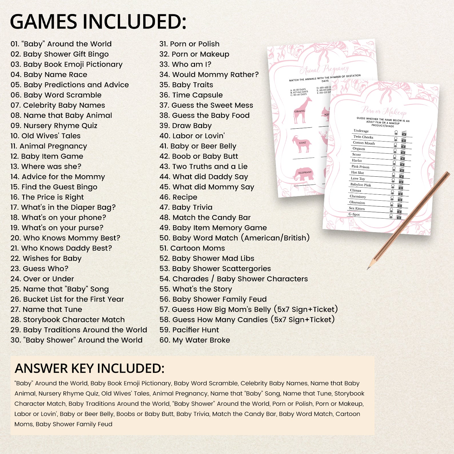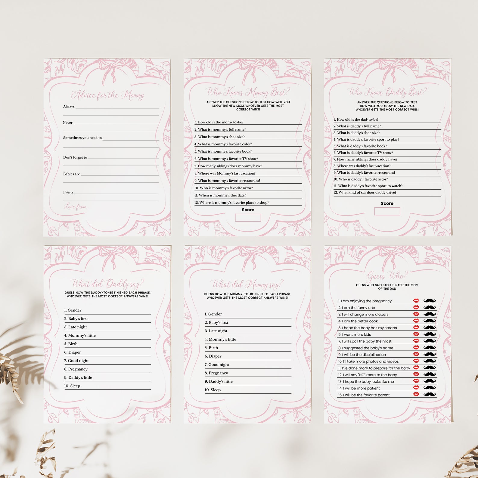 Pink Tea Party Baby Shower Game Bundle with Floral Accents
