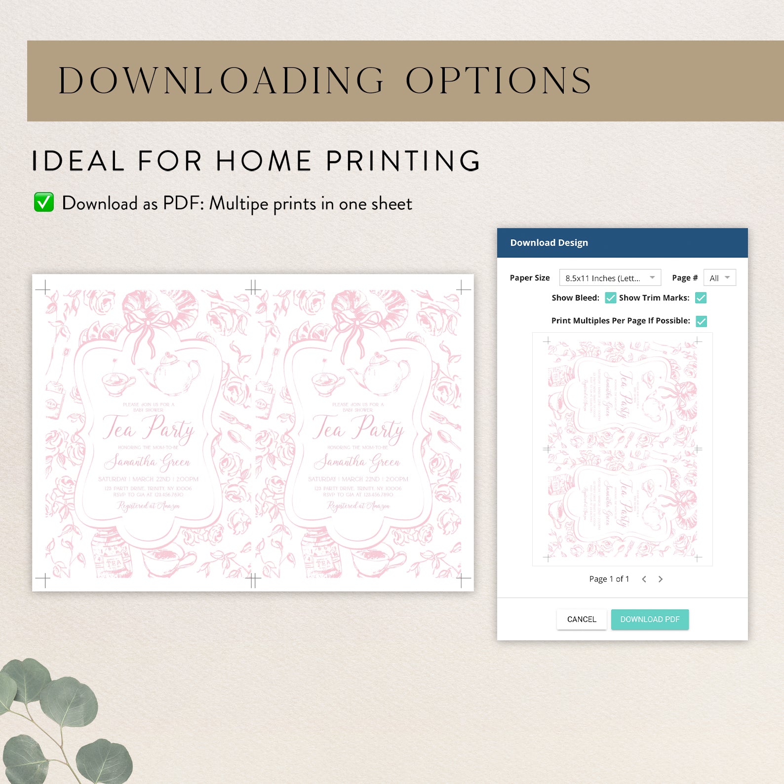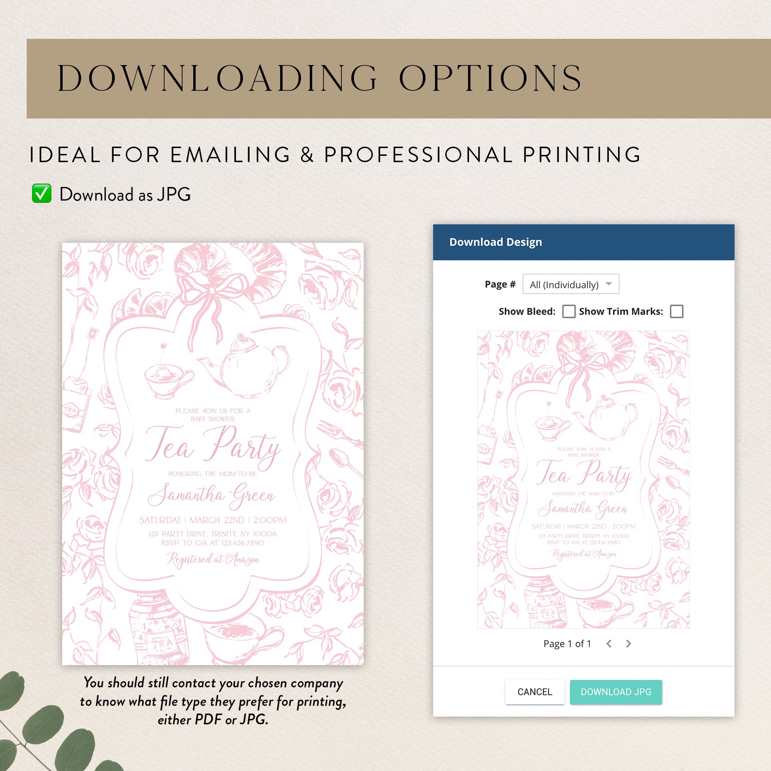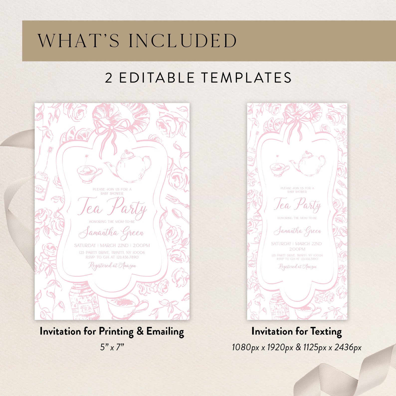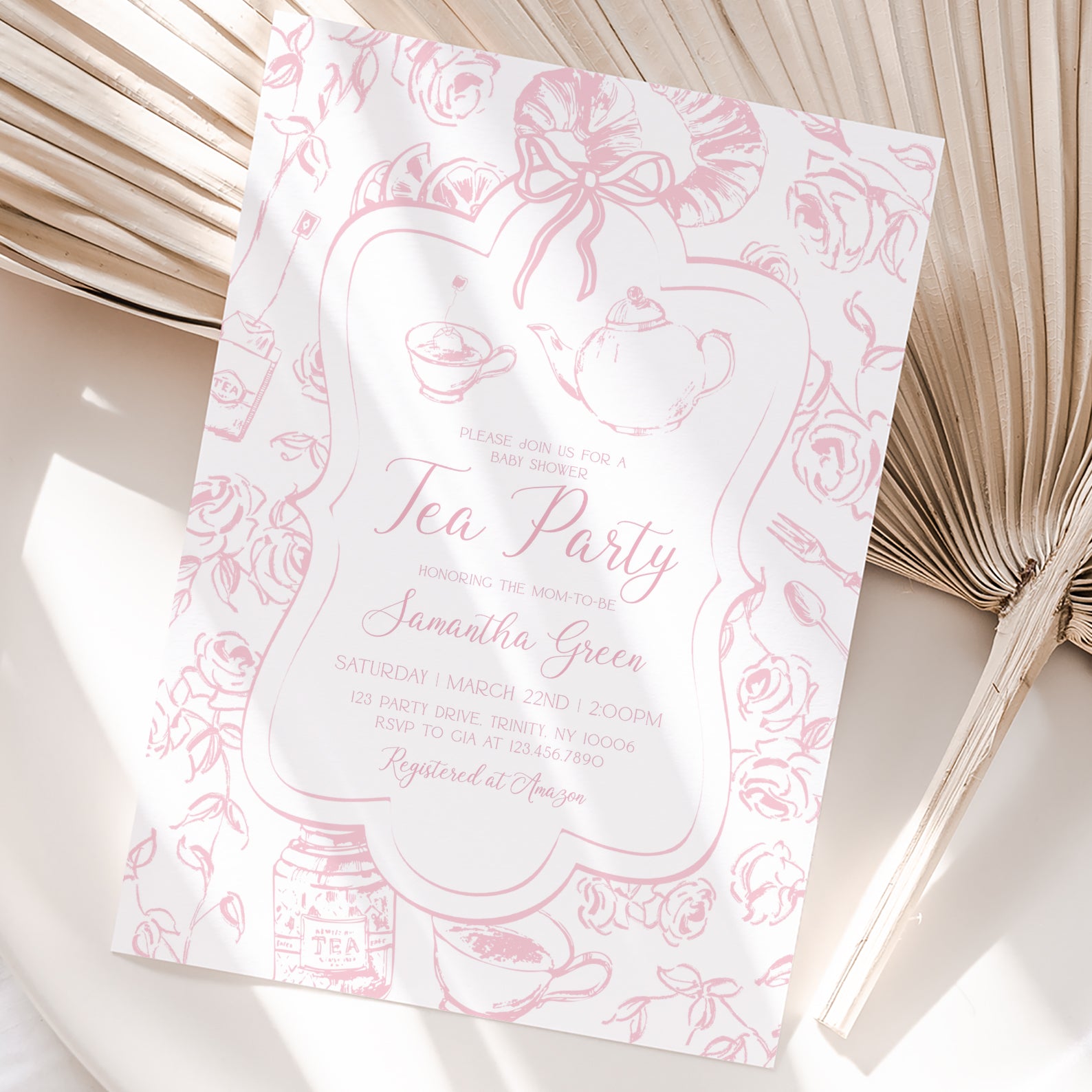 - Purchase this Pink Tea Party Baby Shower Invitation Bundle with Floral Accents template