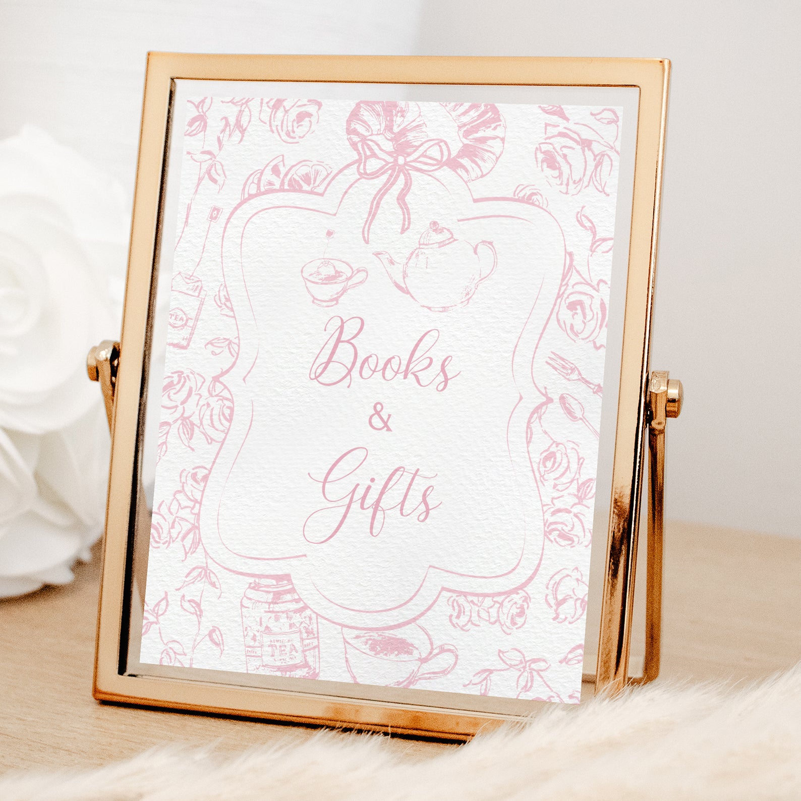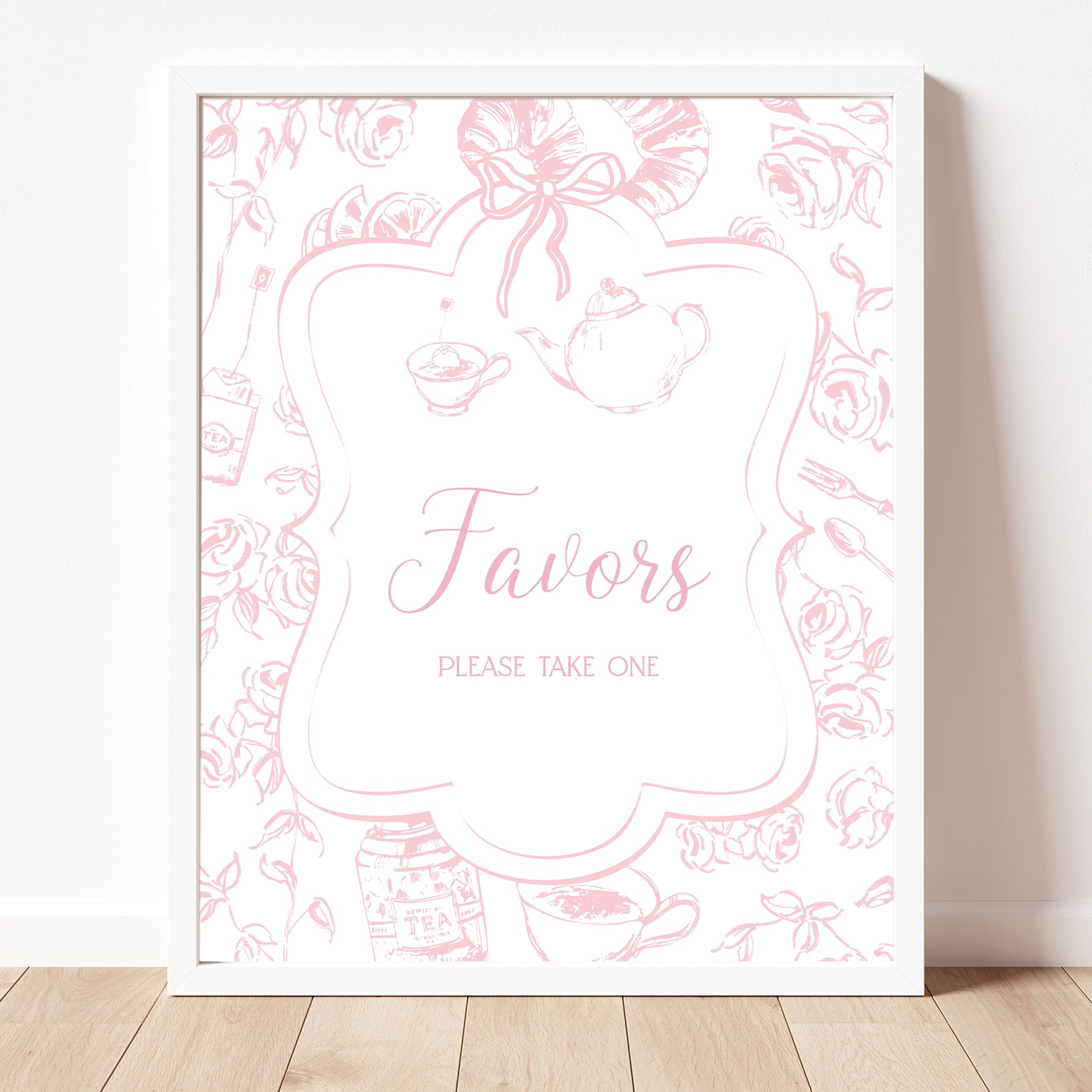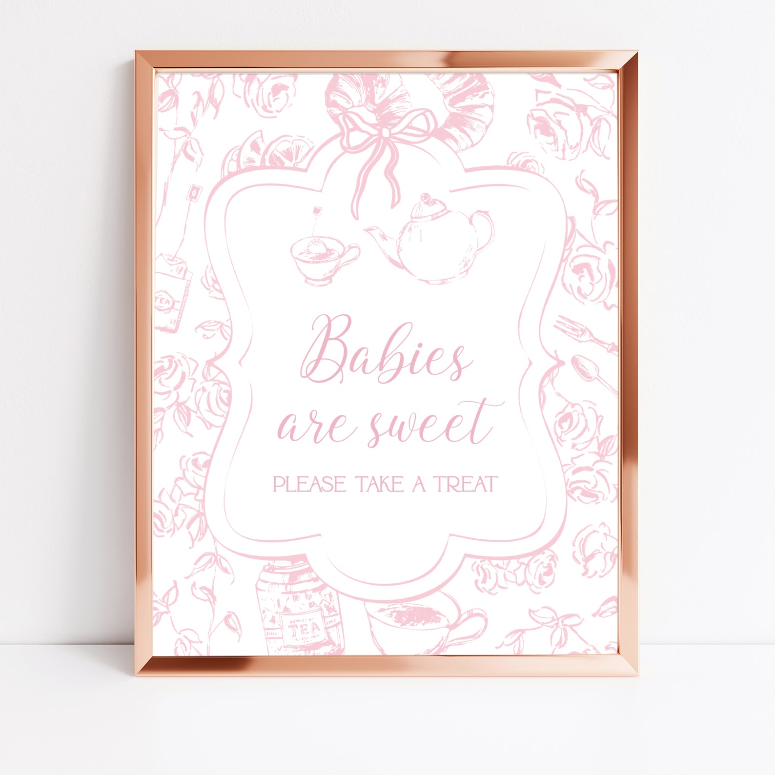 Pink Tea Party Baby Shower Table Sign with Floral Accents