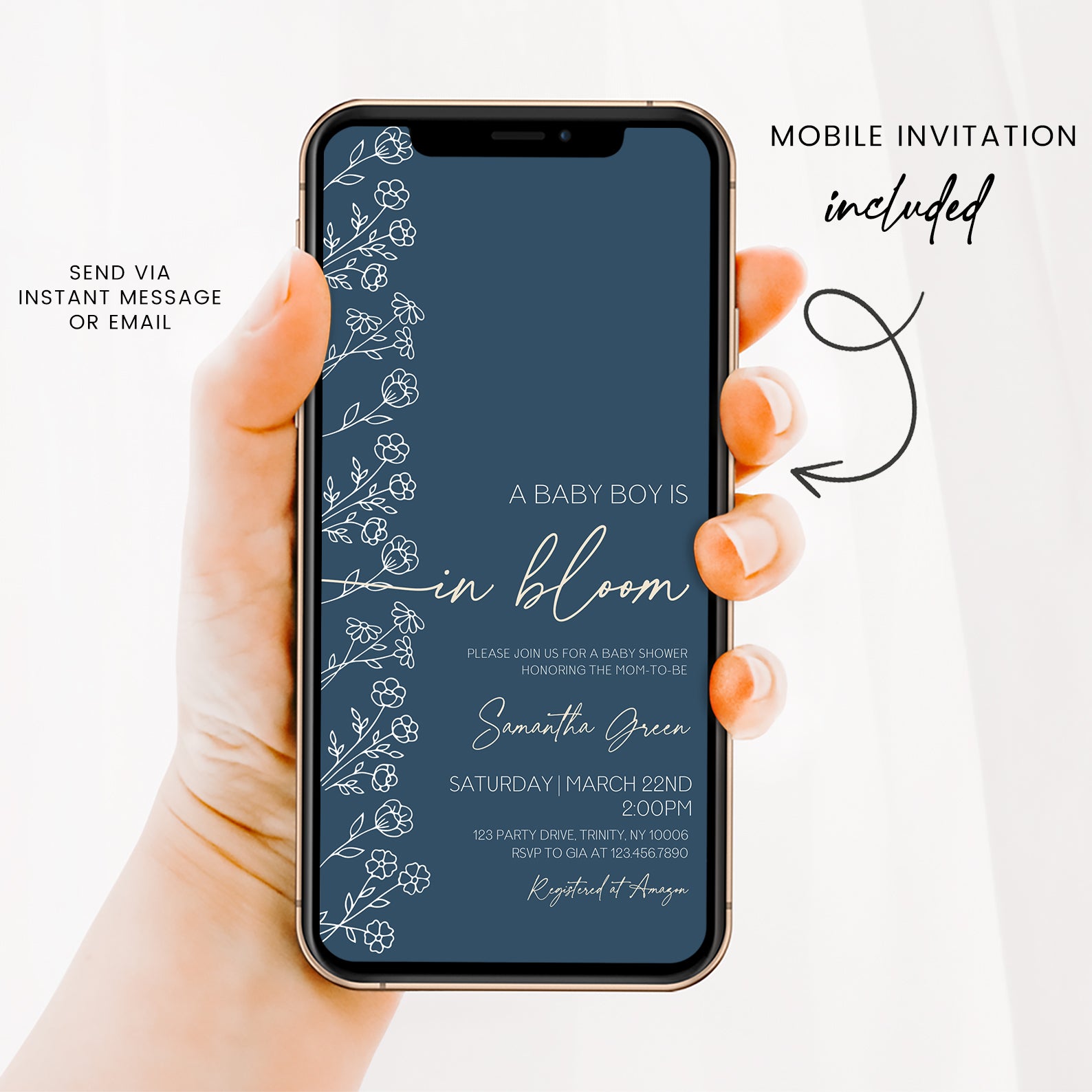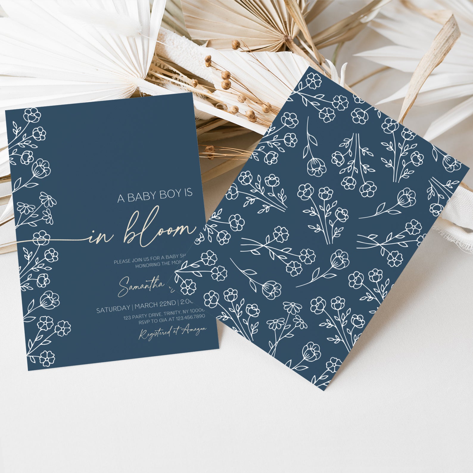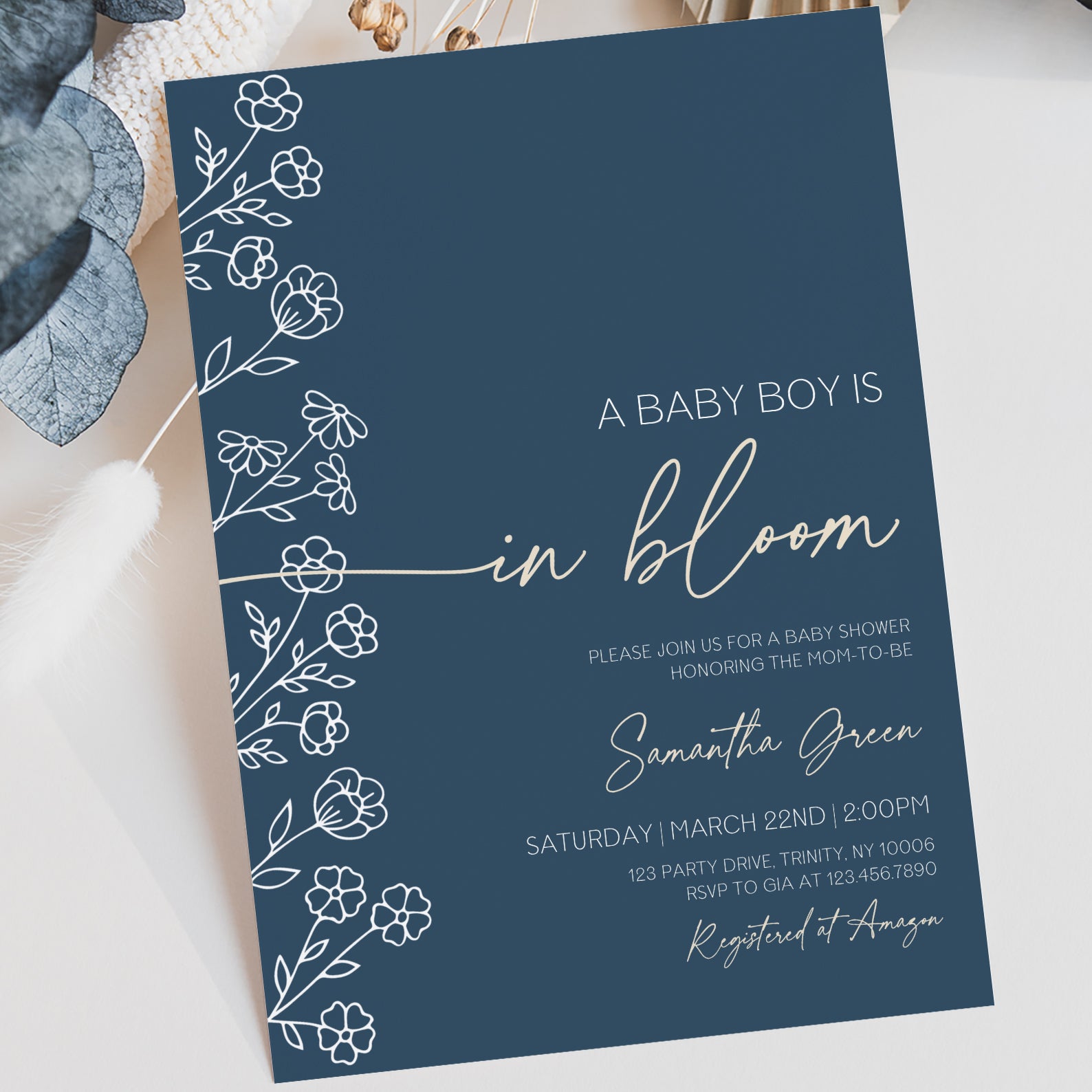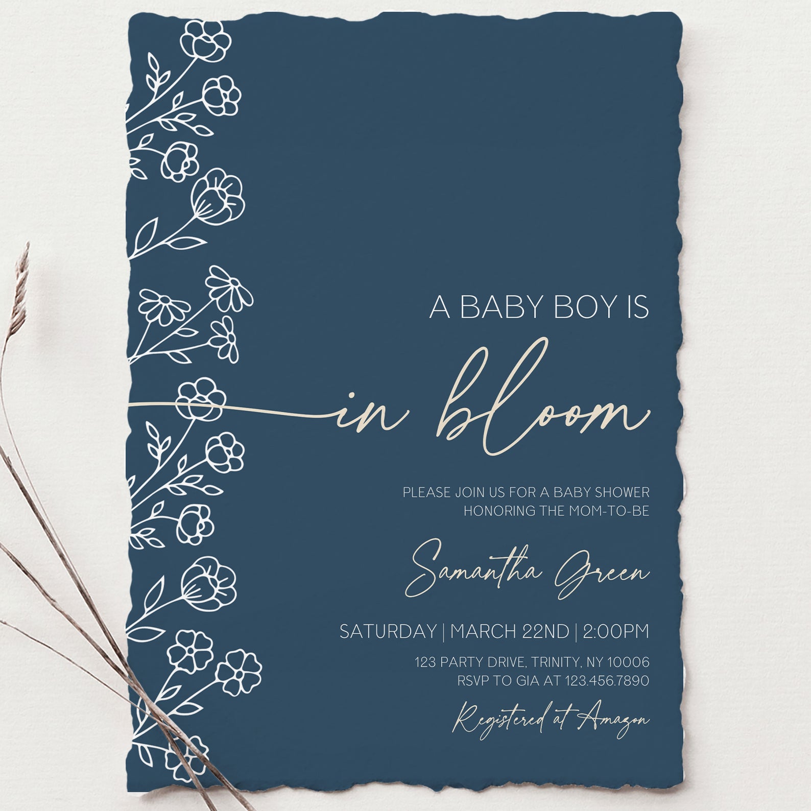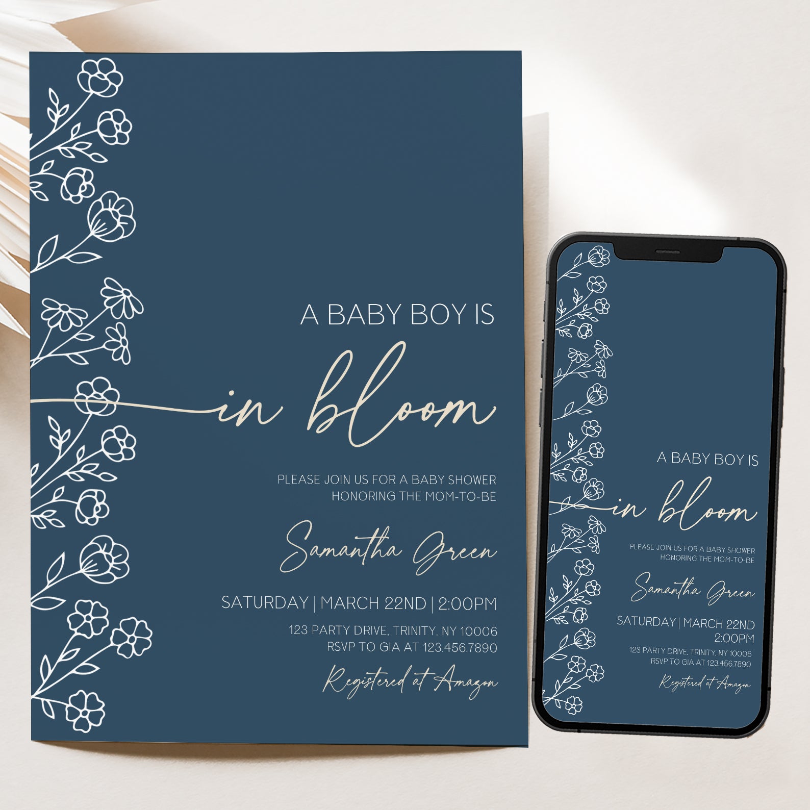 A Boy Is in Bloom Shower Digital Invite: Minimalist Blue Florals