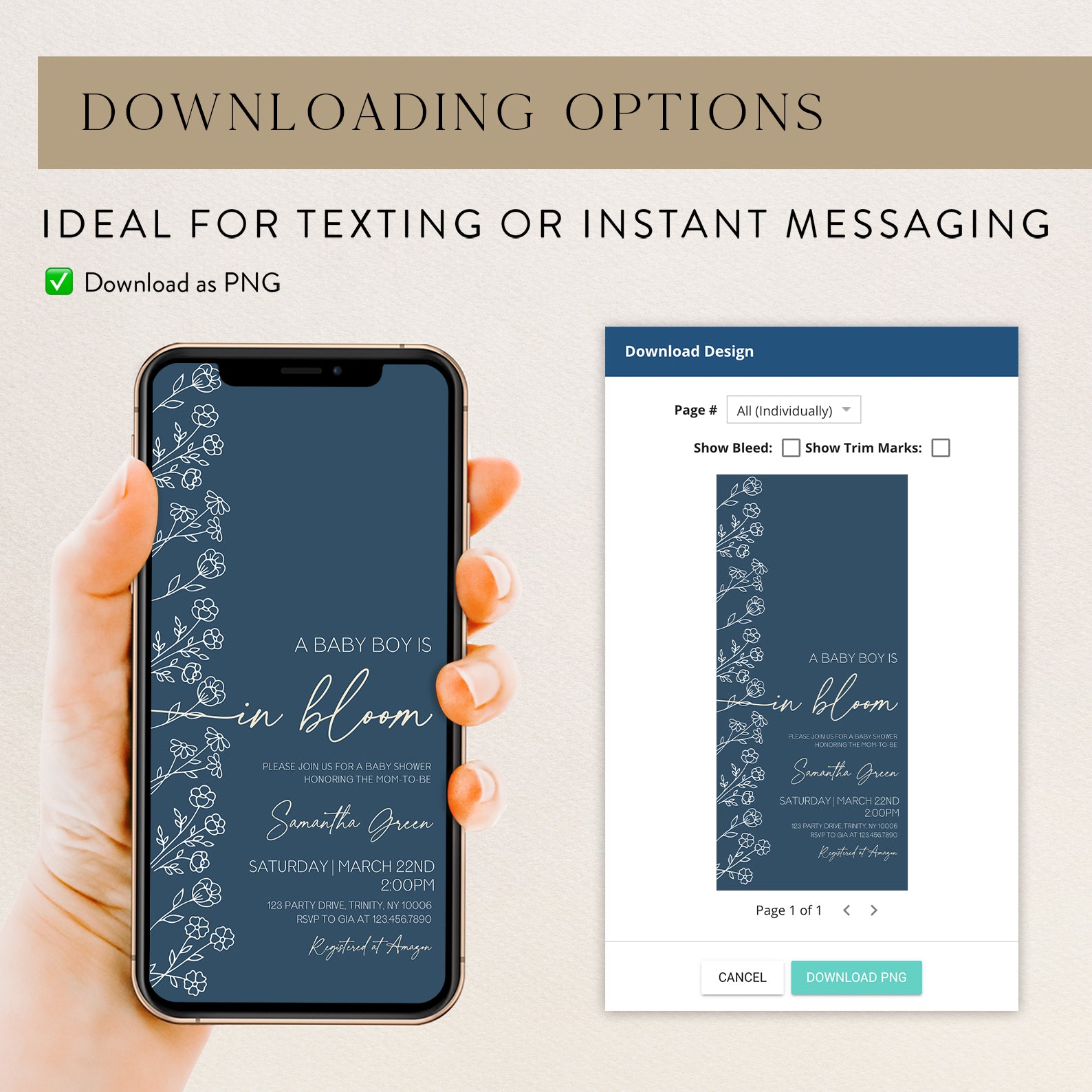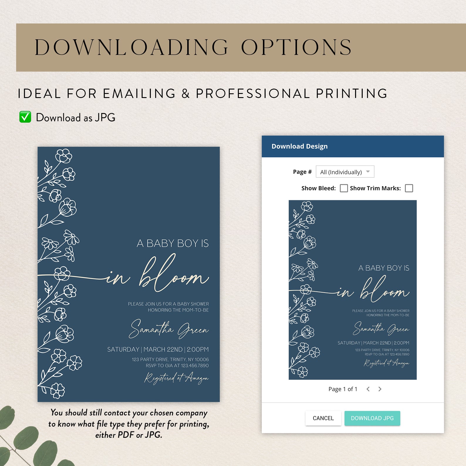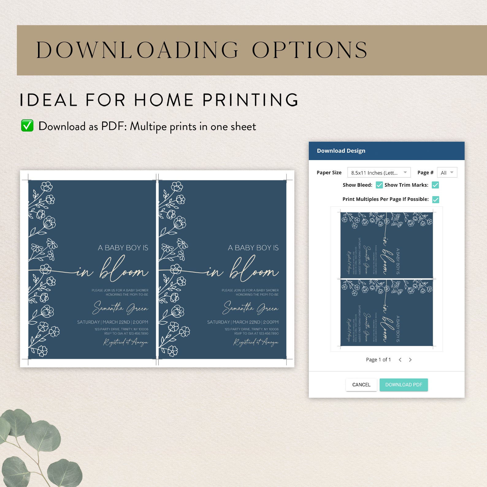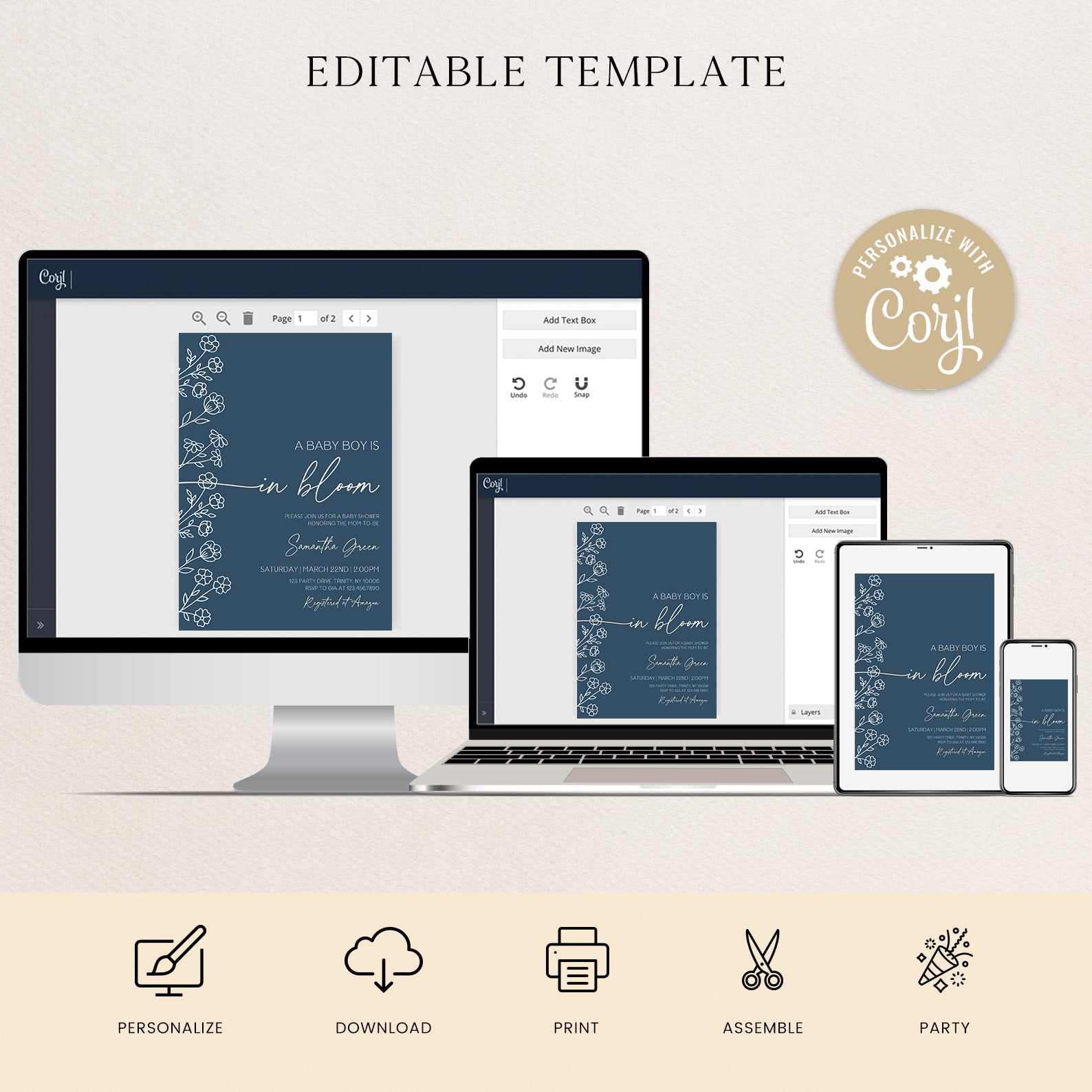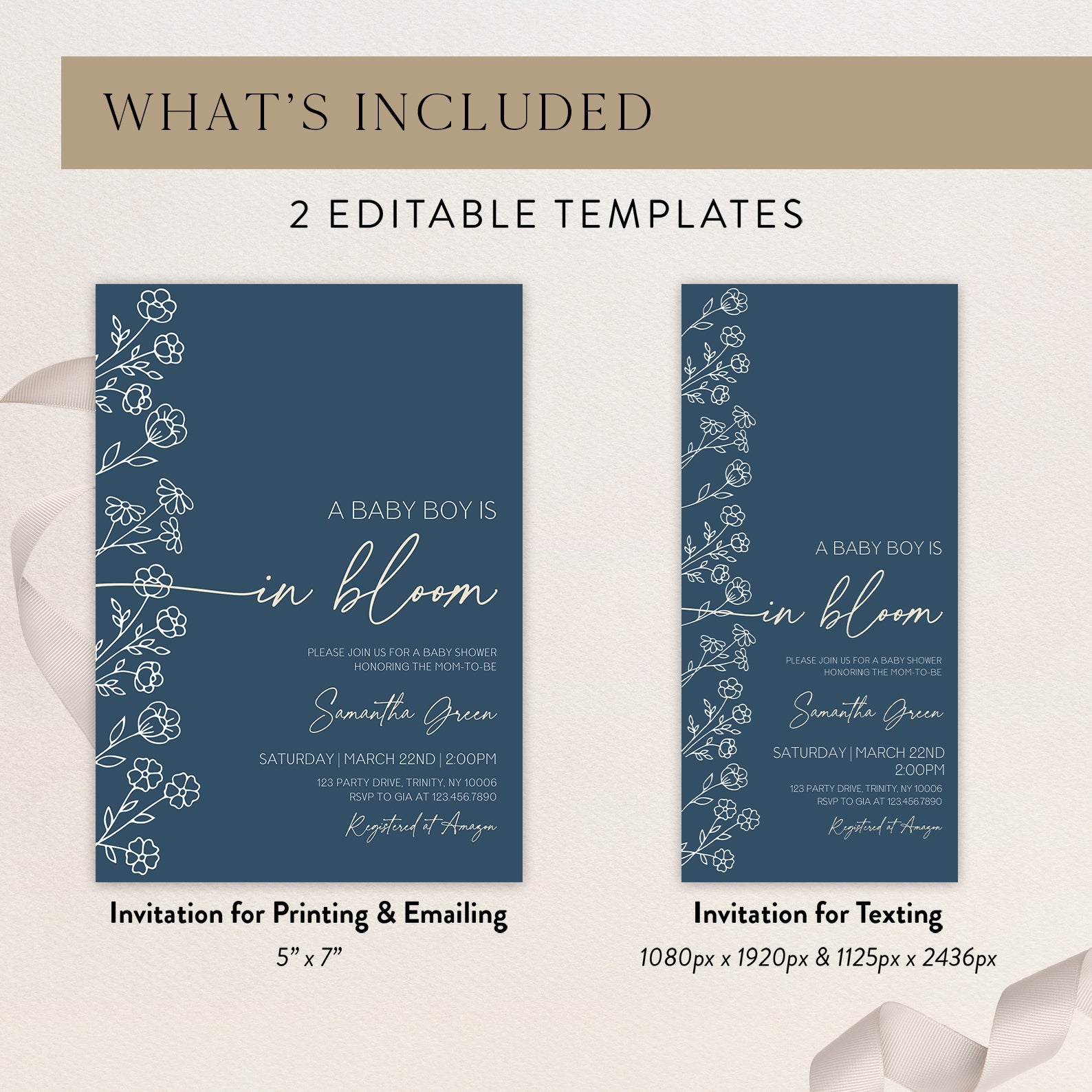 1. Purchase this A Boy Is in Bloom Shower Digital Invite: Minimalist Blue Florals template