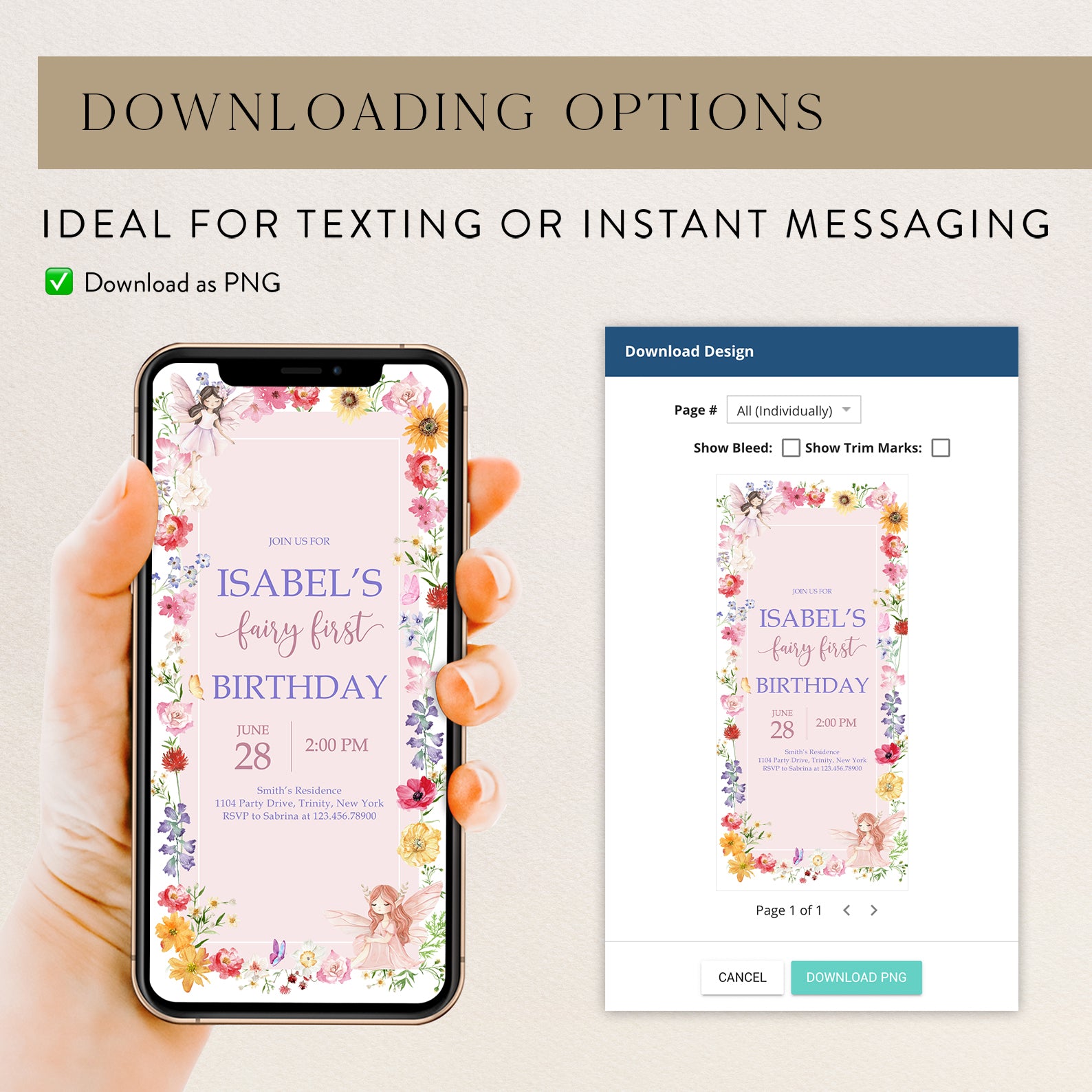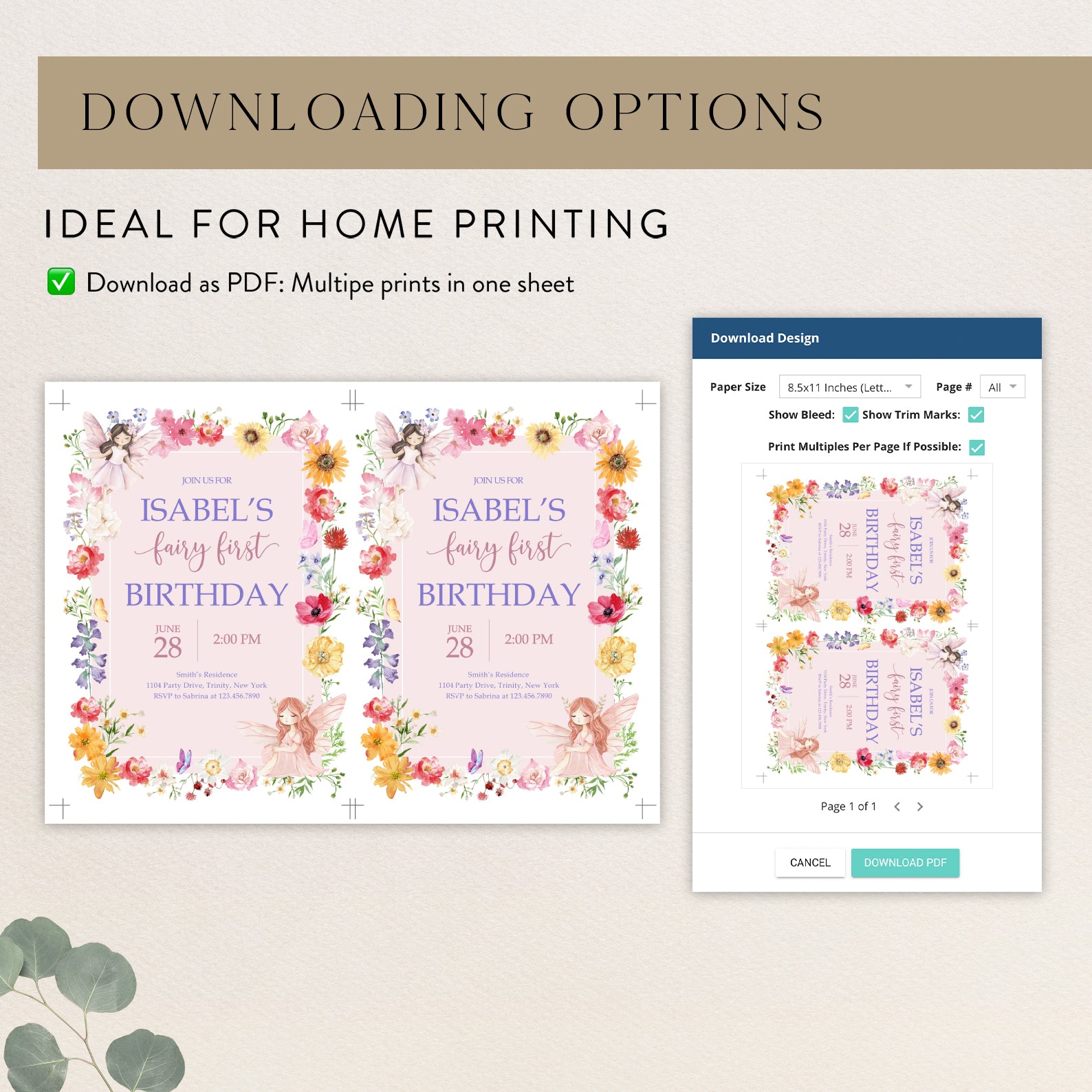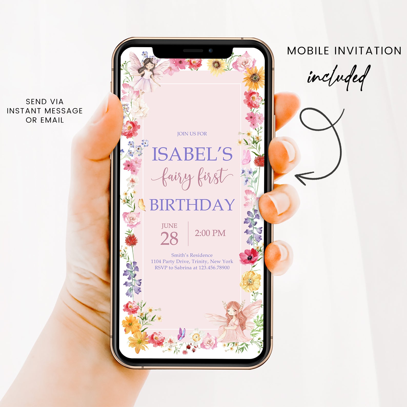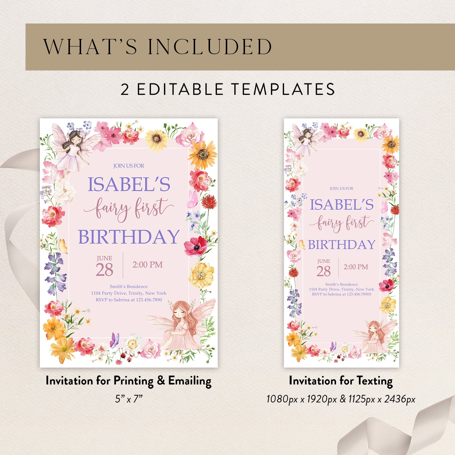- Purchase this Fairy Birthday Invite with Flowers, Butterflies & Fairy template