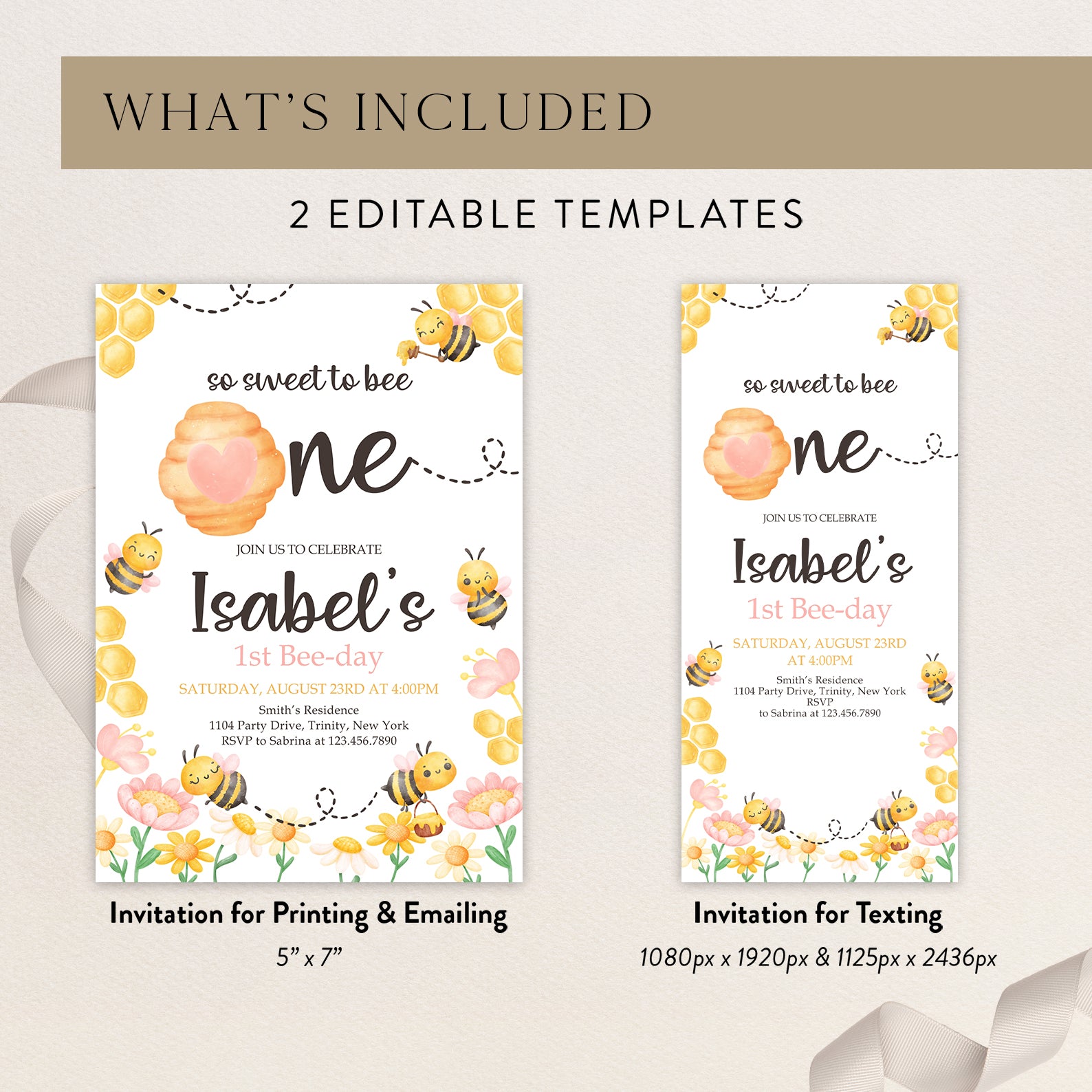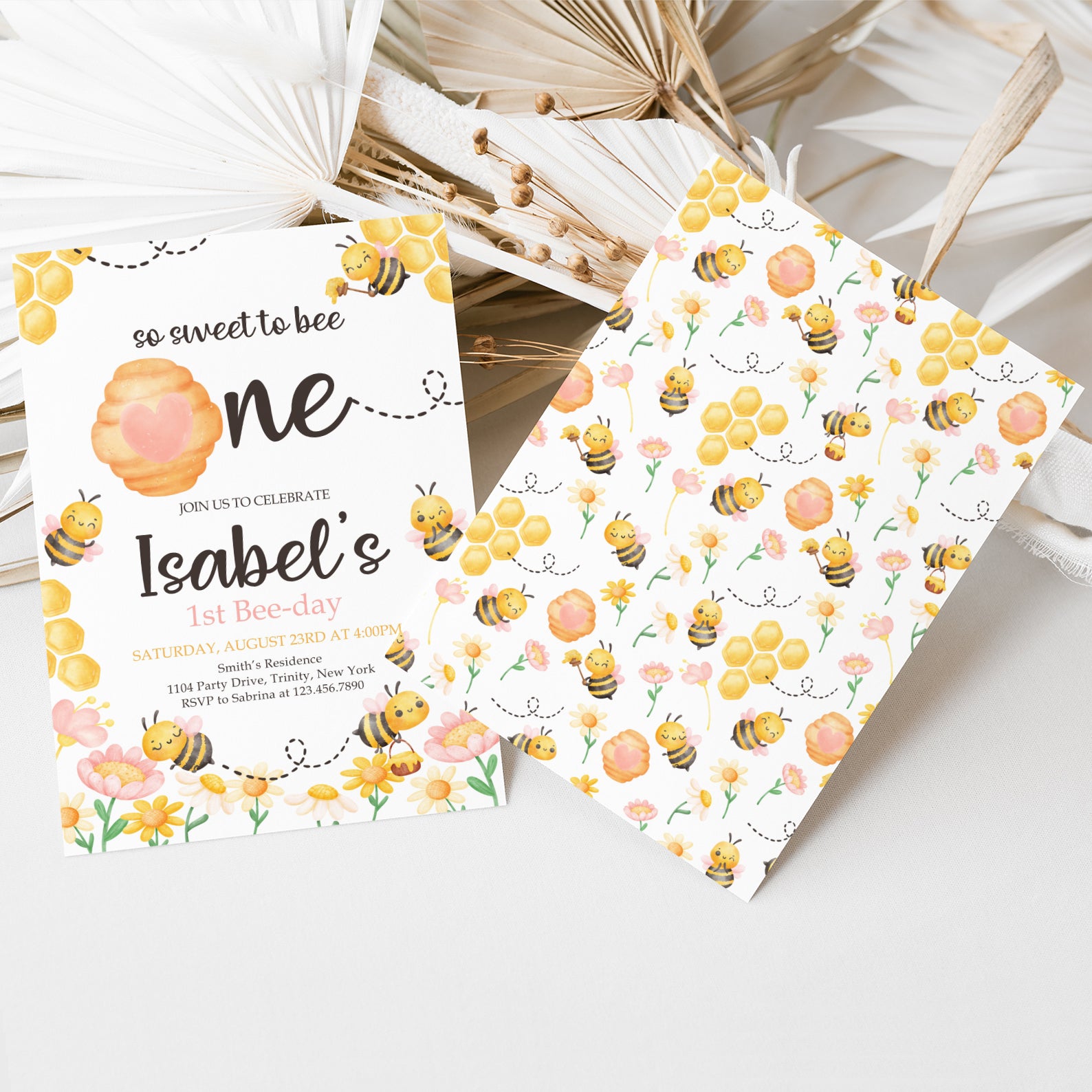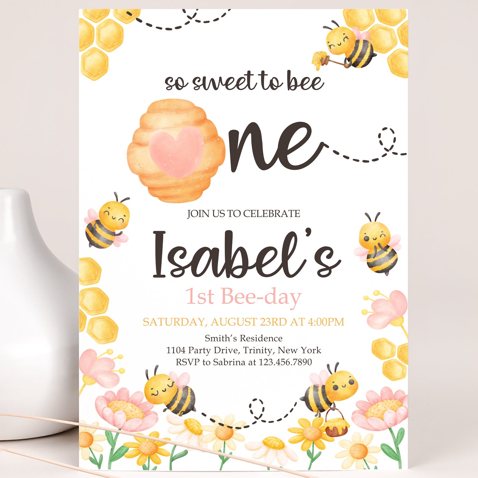 - Purchase this So Sweet to Bee Digital Invite with Bees, Flowers & Hive template