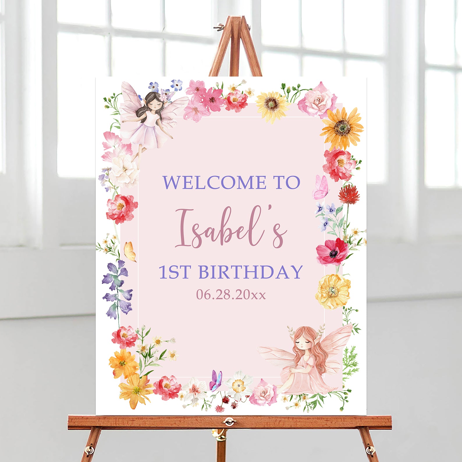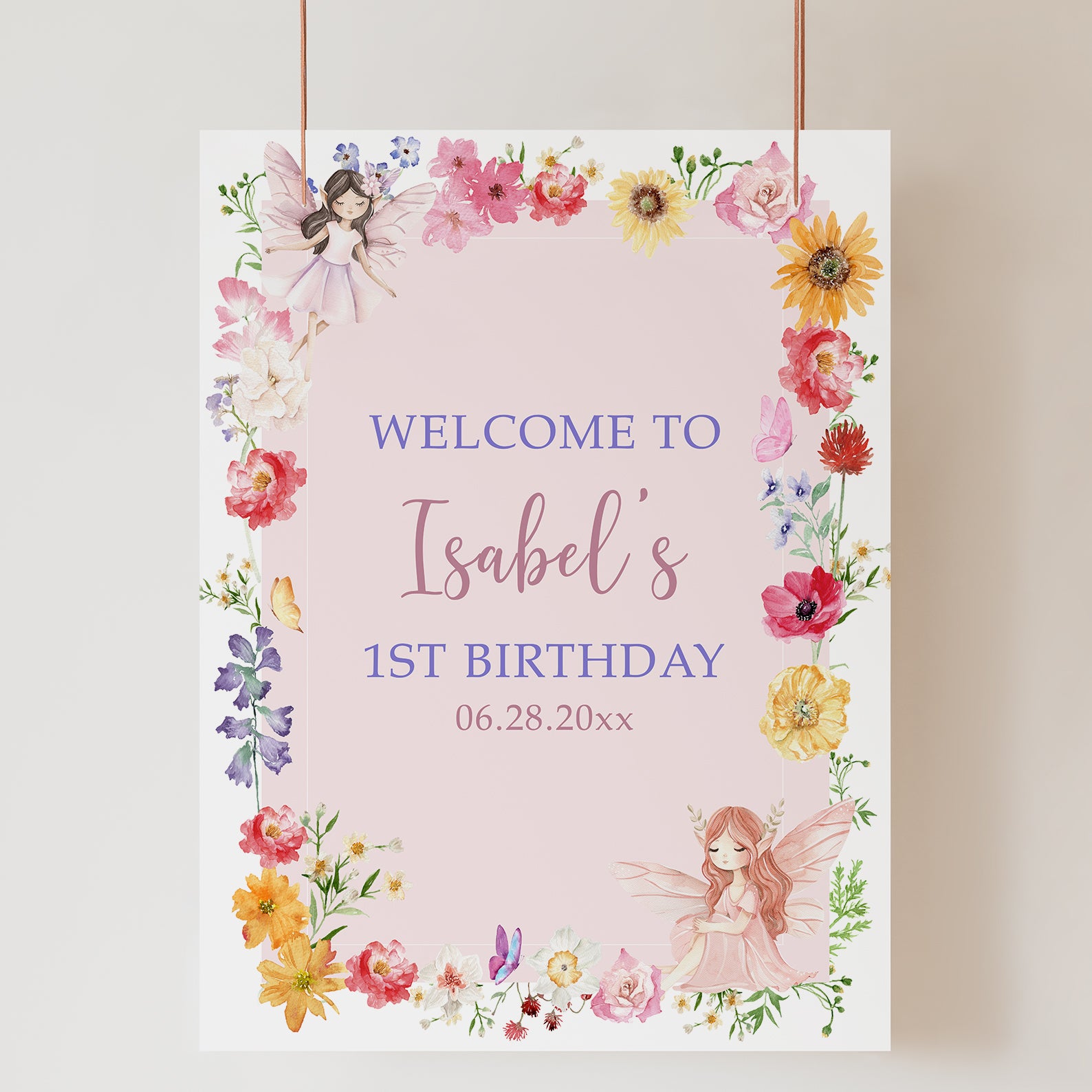 - Purchase this Fairy Birthday Welcome Sign with Flowers, Butterflies & Fairy template