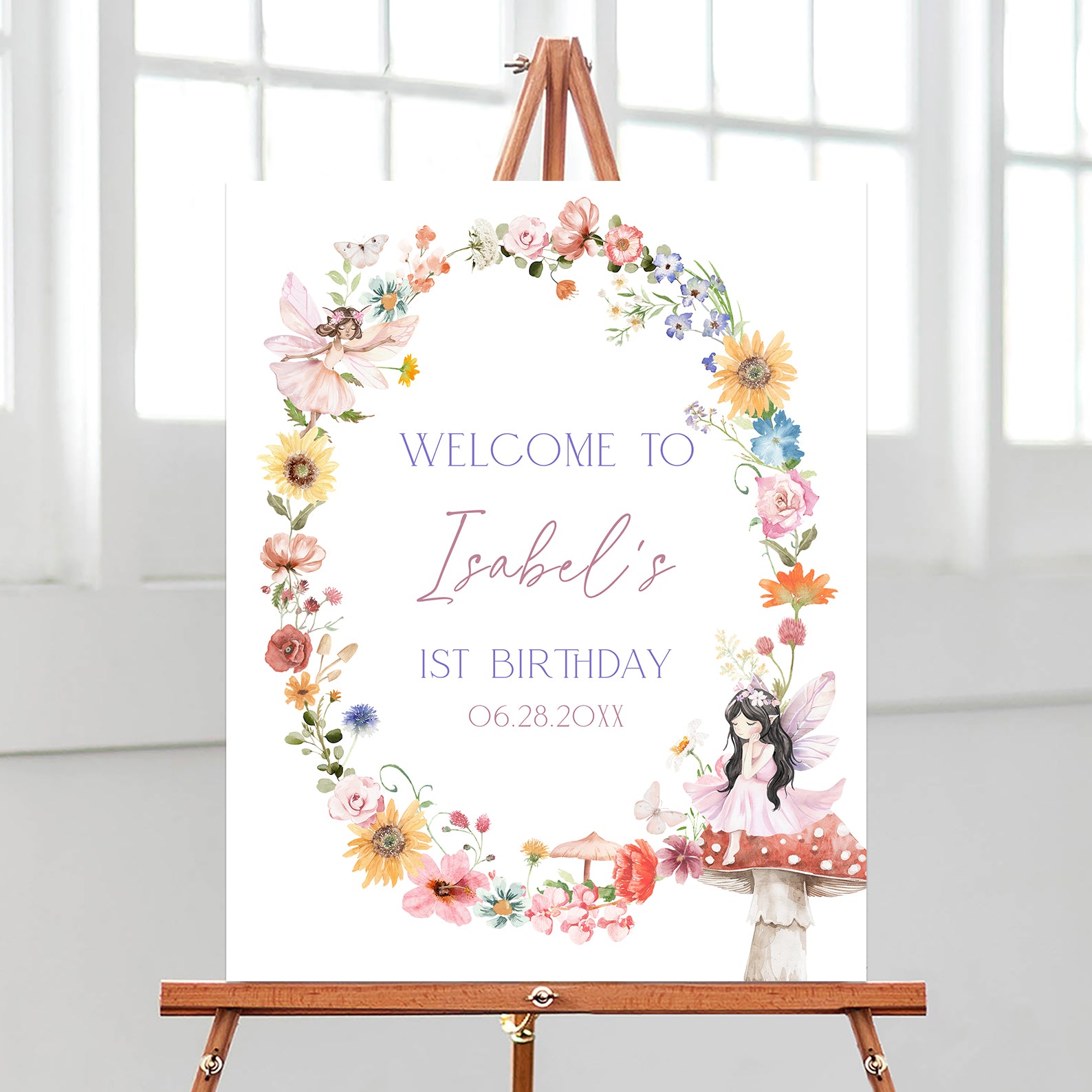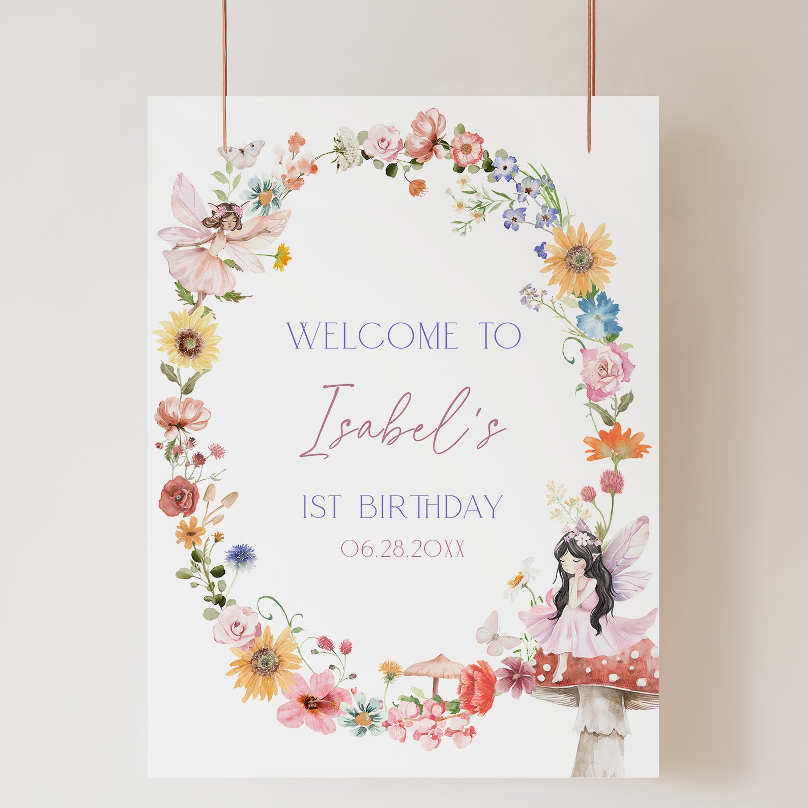 - Purchase this Fairy Garden Birthday Welcome Sign with Flowers & Mushrooms template