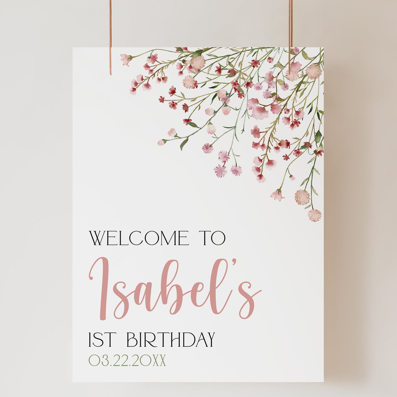 Minimalist Spring Birthday Garden Party Welcome Sign with Wildflowers