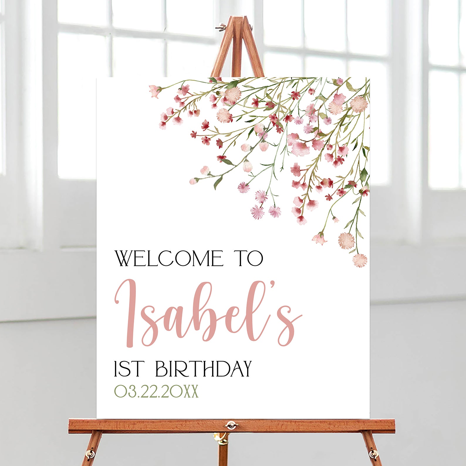 1. Purchase this Minimalist Spring Birthday Garden Party Welcome Sign with Wildflowers template