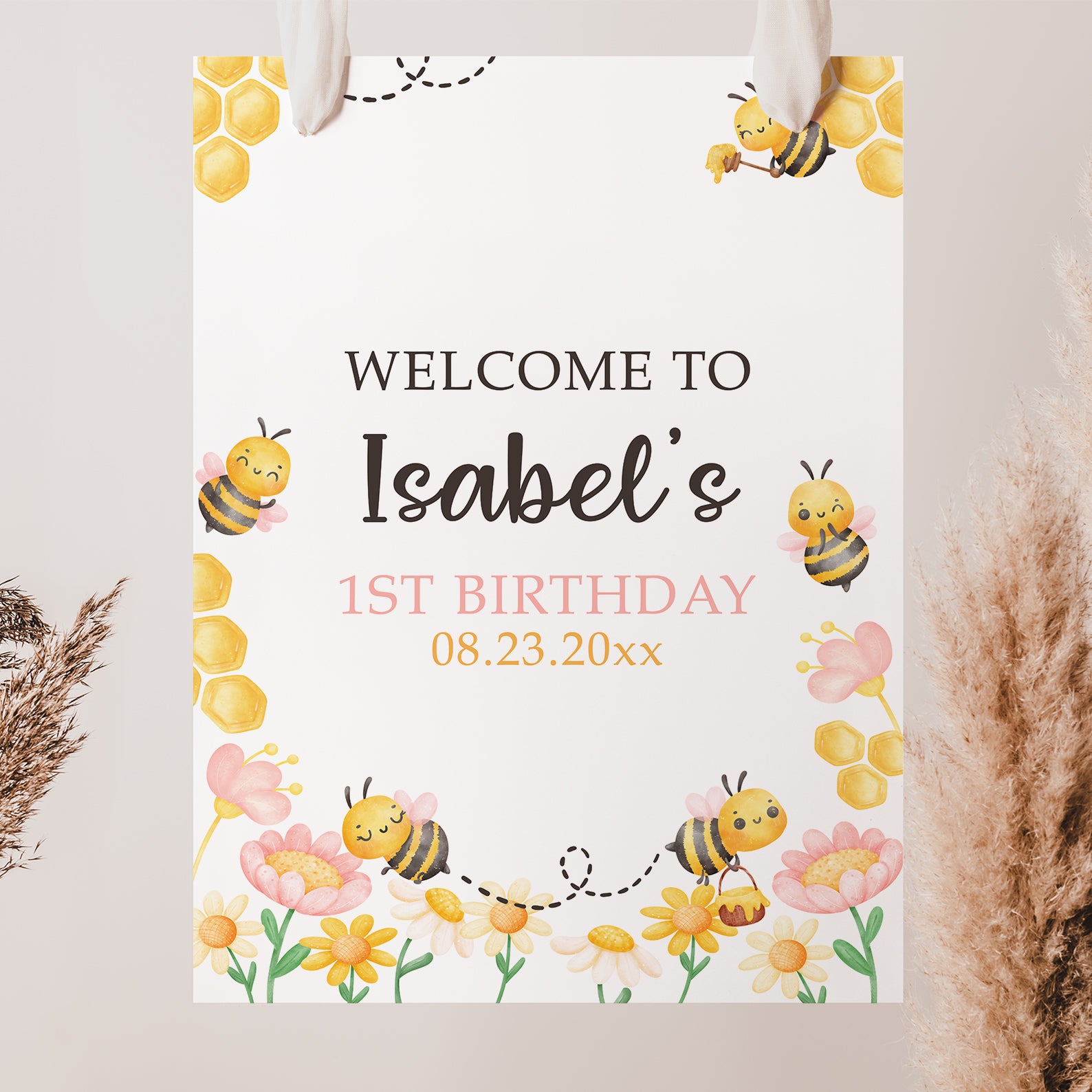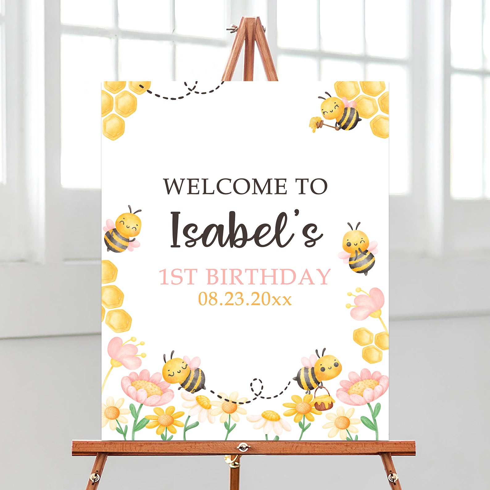 - Purchase this So Sweet to Bee Digital Welcome Sign with Bees, Flowers & Hive template