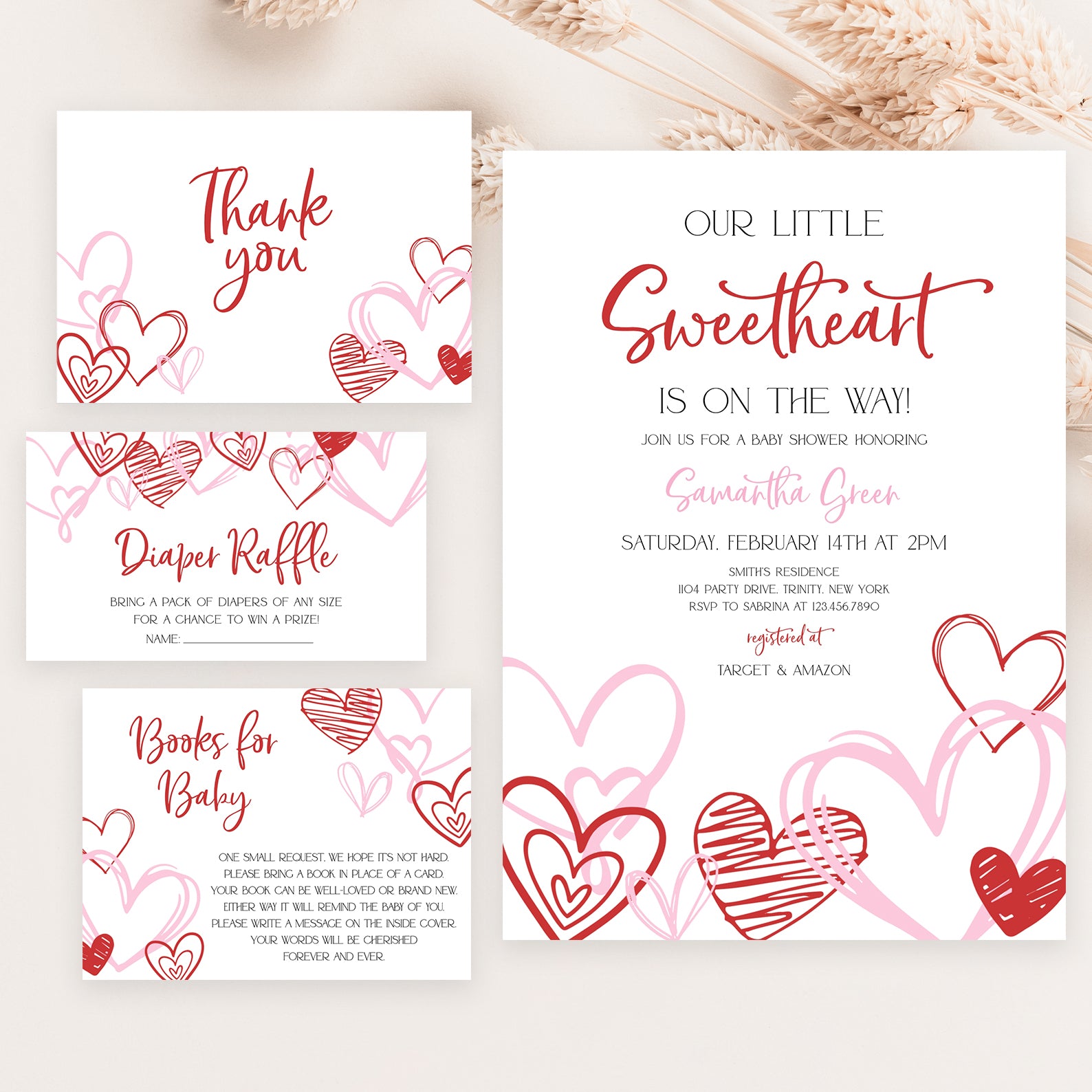 Little Sweetheart Baby Shower Invitation Bundle with Heart Accents
