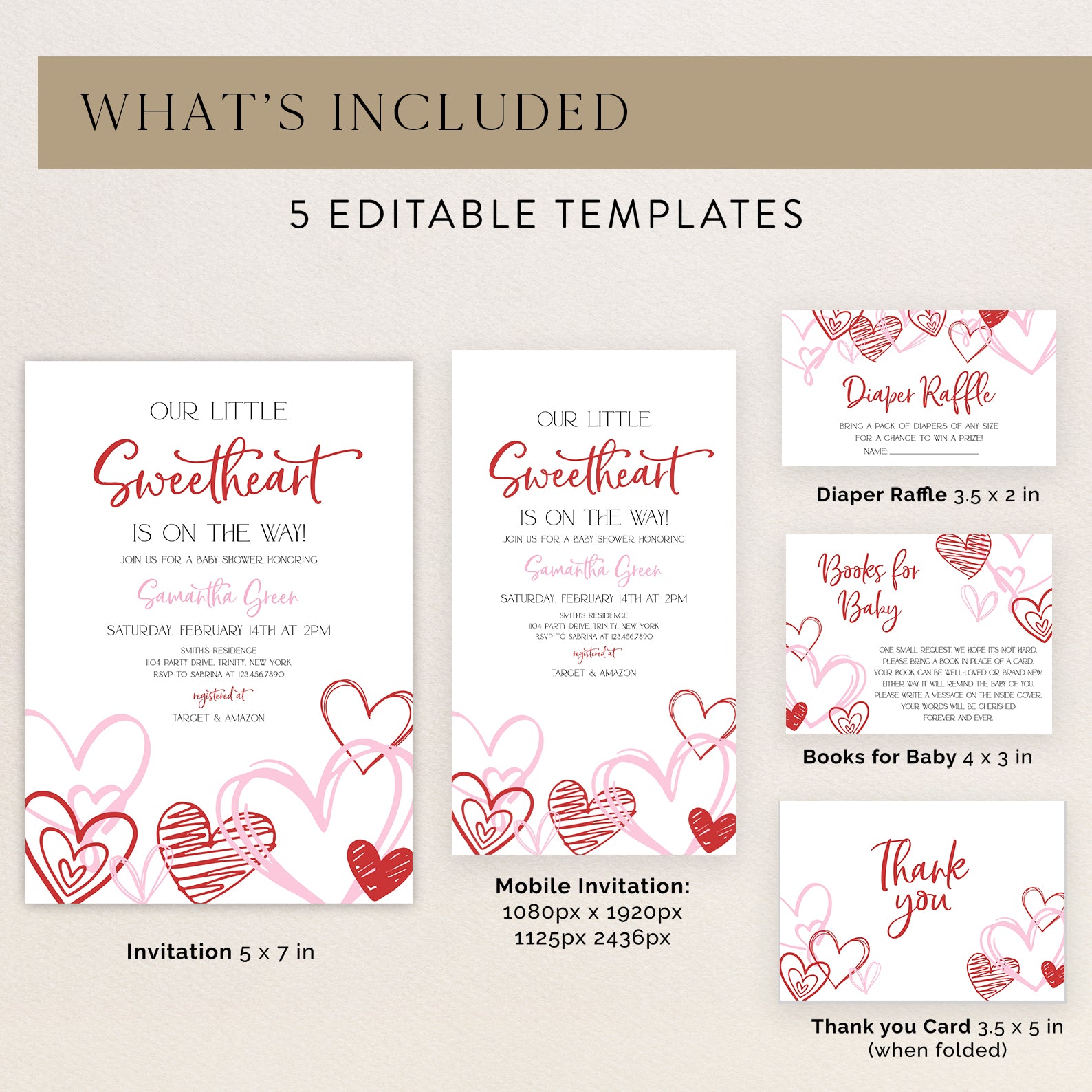 1. Purchase this Little Sweetheart Baby Shower Invitation Bundle with Heart Accents template